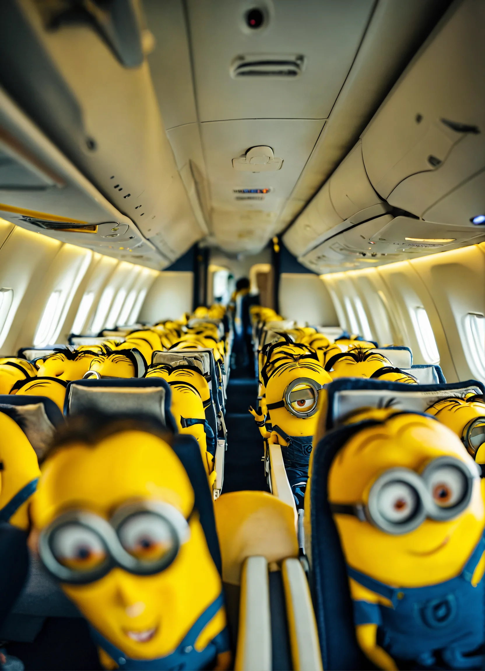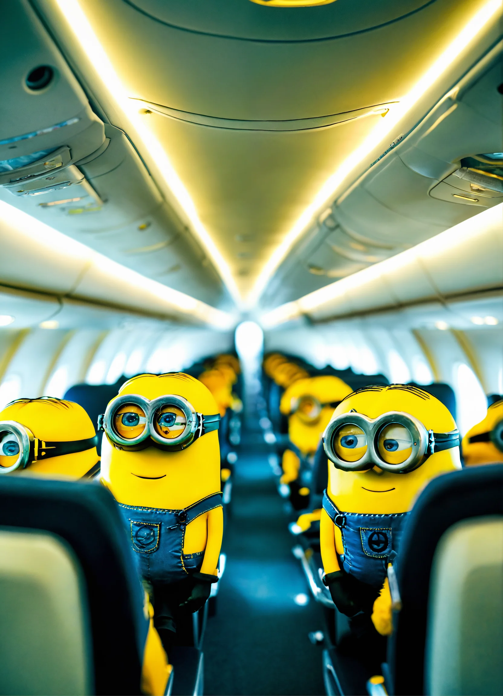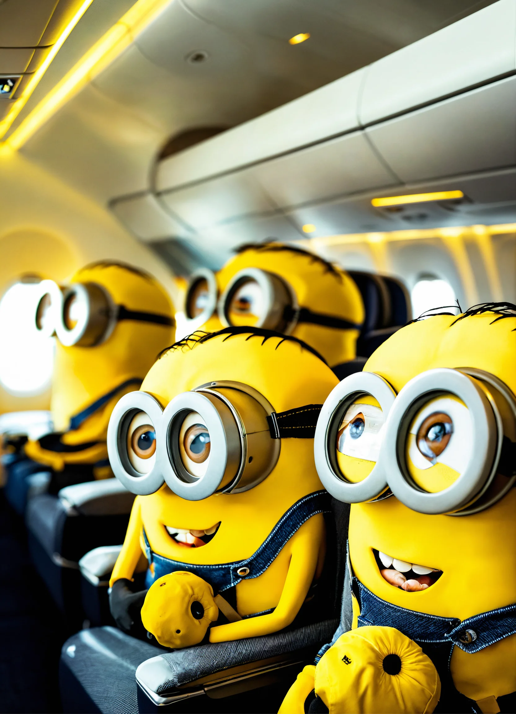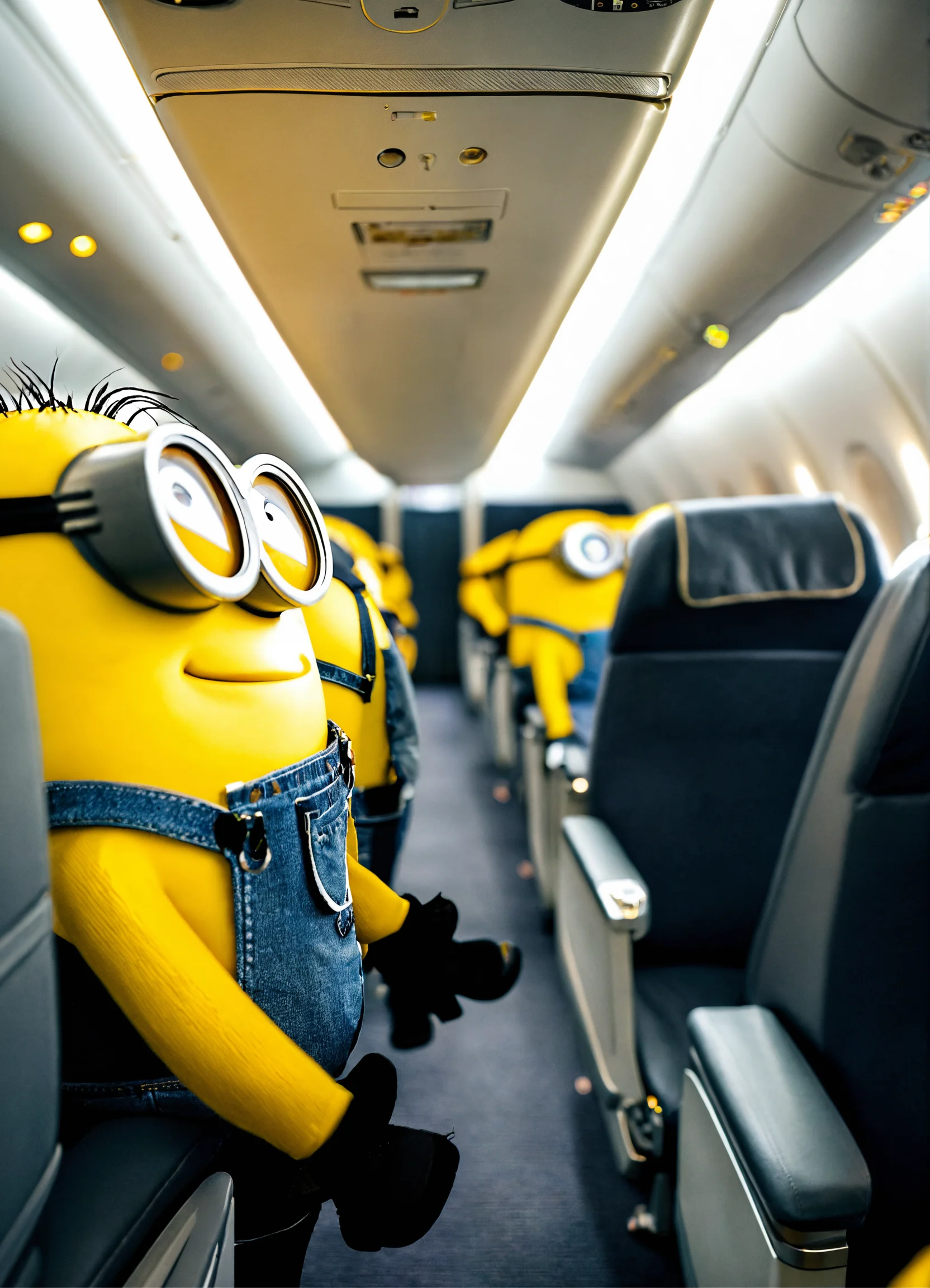 Yellow minions in the business class cabin of a lufthansa aircraft