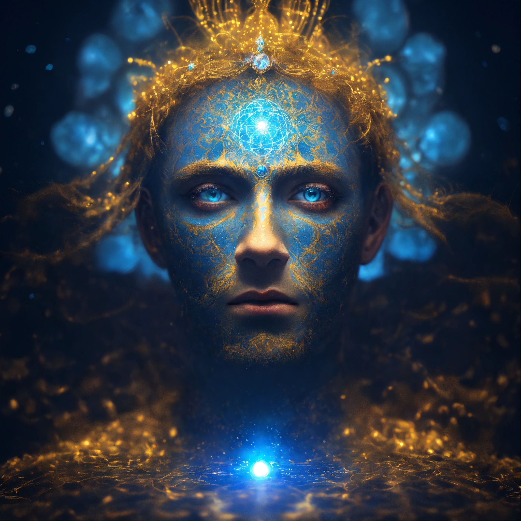 Underwater portrait photography, long exposure, graceful elegant angelic cartoon smiley cosmic mystic man face portrait facing front, blue eyes. front view. front portrait, no angle. cartoon style. backlit. sacred geometry patterns on the face, in the style of disney, pixar, tim burton, beauty and the beast, and peter pan. enchanting glowing orb aura. fractal, volumetric lighting, backlit. the power of the god. god-like, spirit-like. no gender. all genders. white background, no background, zero background, 0 background. nothing around the face.