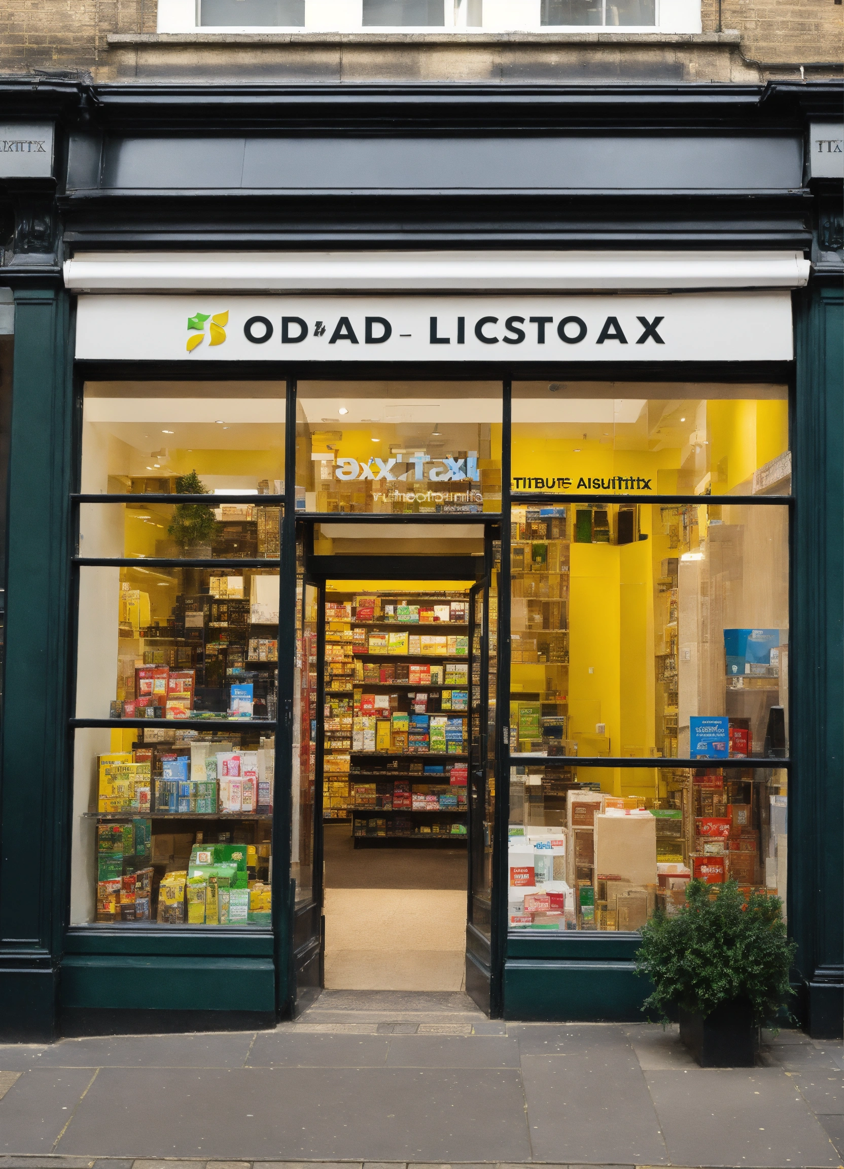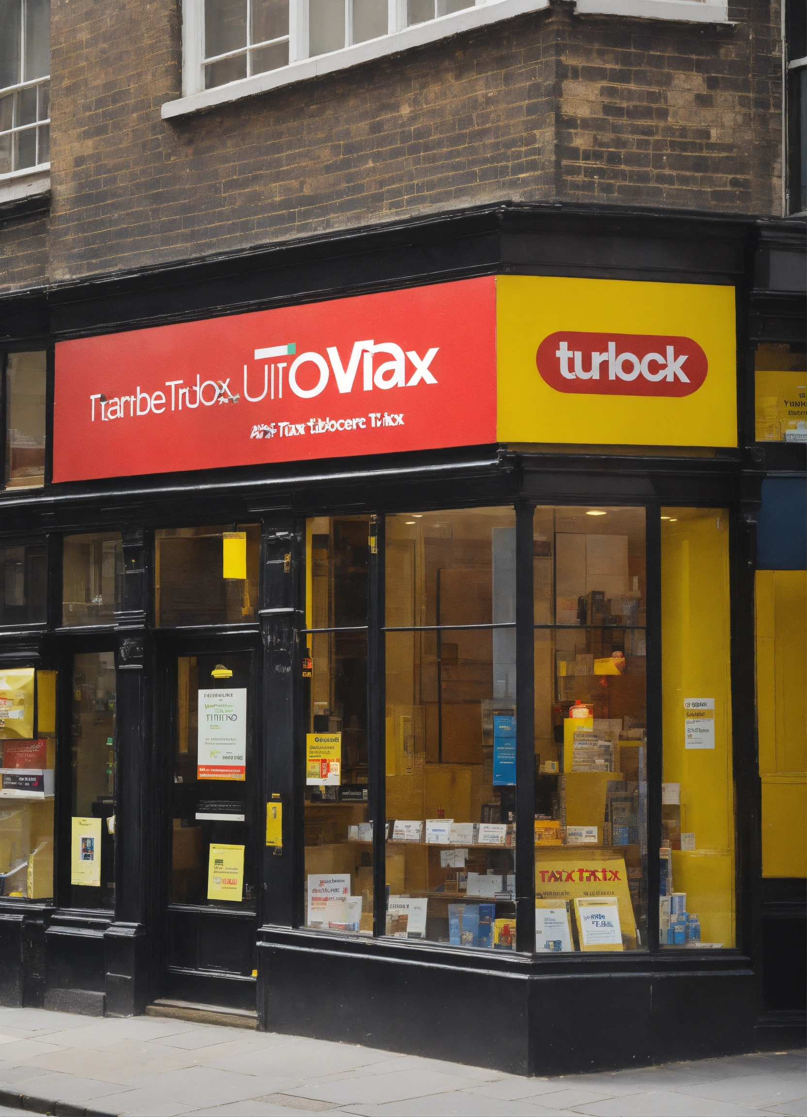 The store is name tax refund, the logo is white and yellow, the store address is 27 old gloucester st, london wc1n 3ax, united kingdom .inside sells items such as turbotax, h&r block
