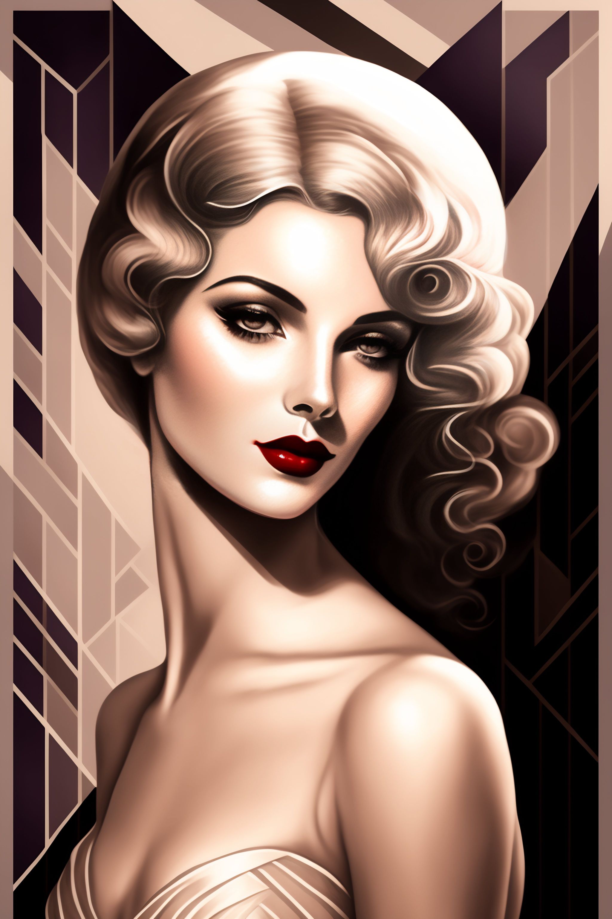 Drawing of a stunning feminine 1920s woman, muted and subtle pastel art deco colors, cubism style, melbourne city background, dark ambient, art noveau line art style