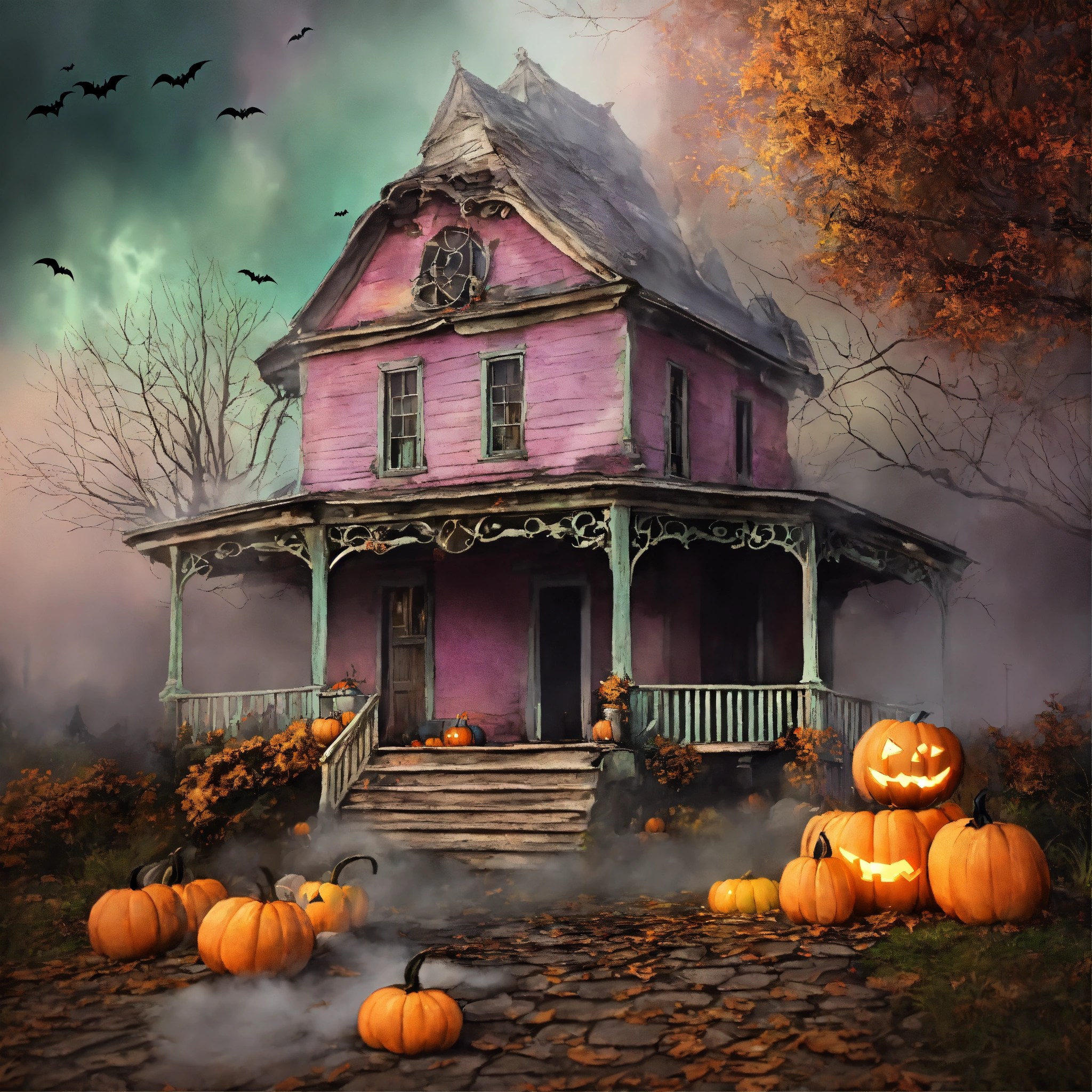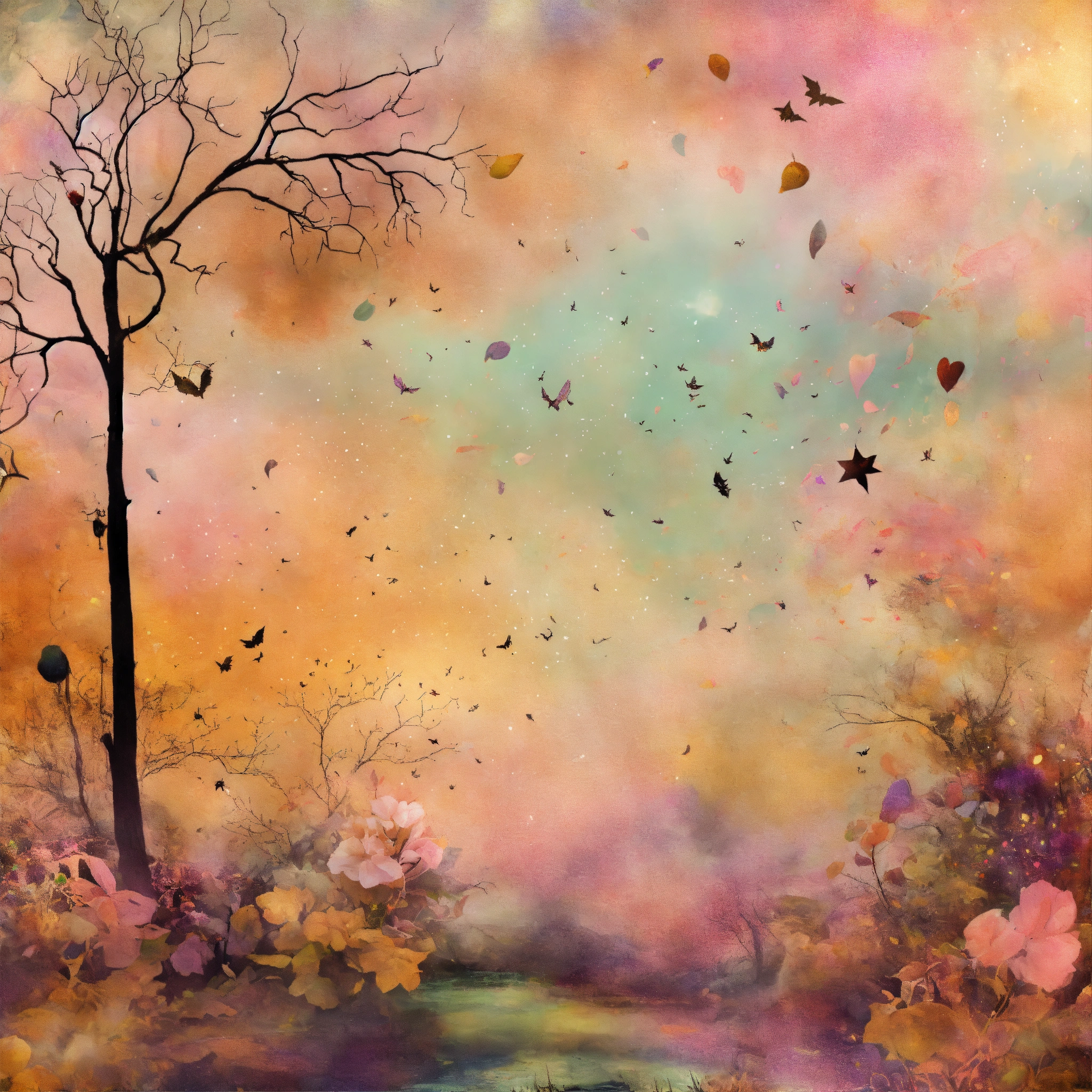Shabby chic dreamy mist pastel junk journals spooky halloween trick-or-treat swirling magical fairytale abstract art style