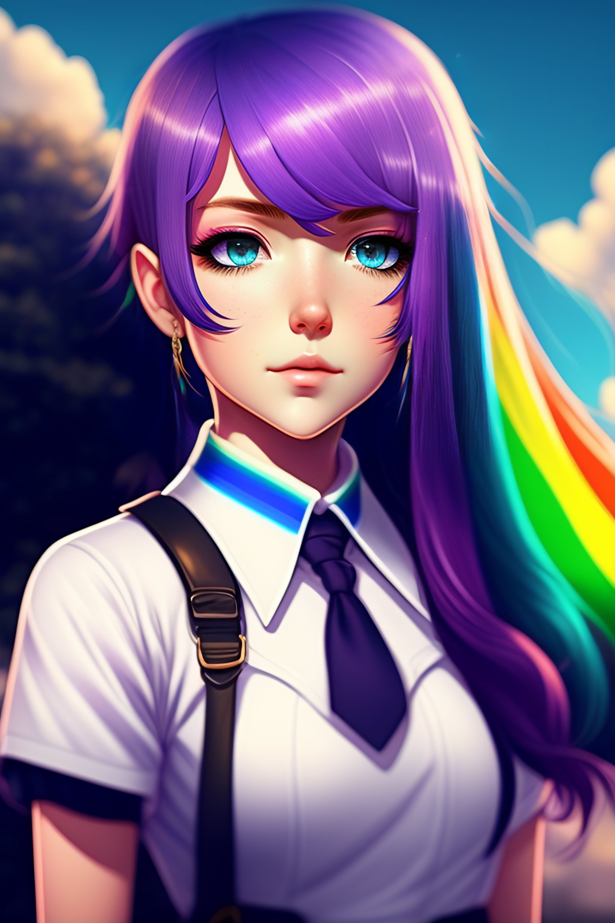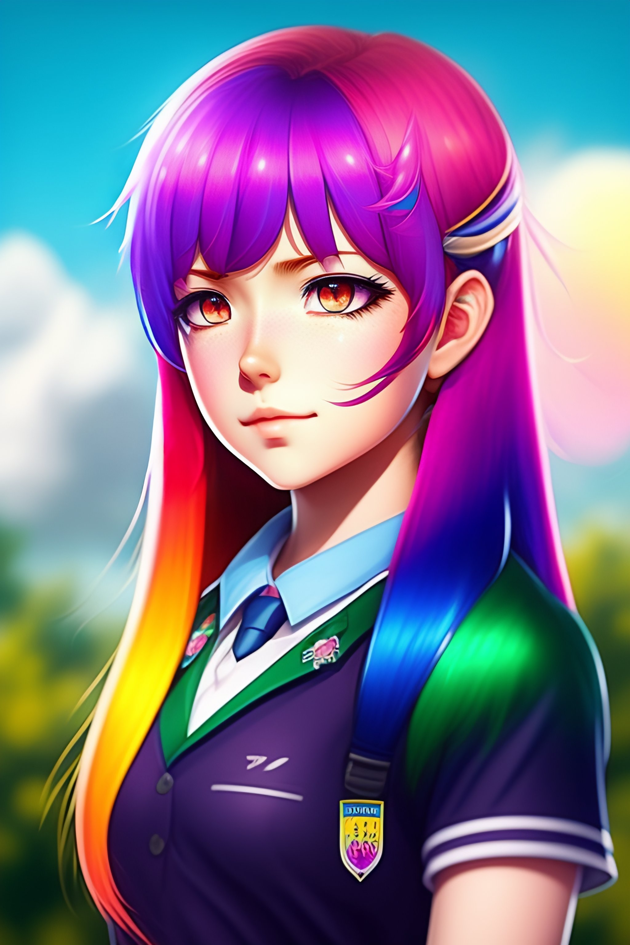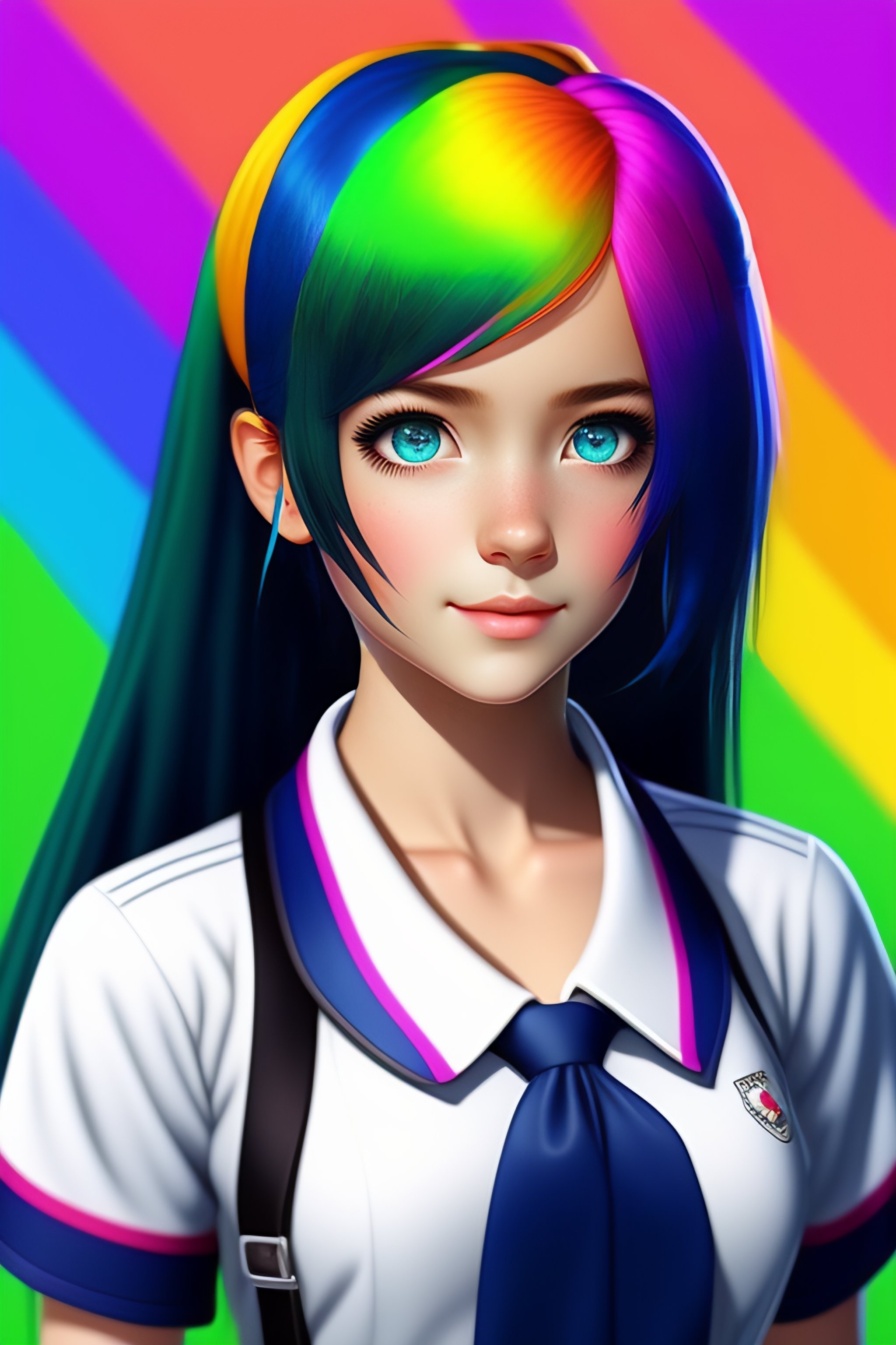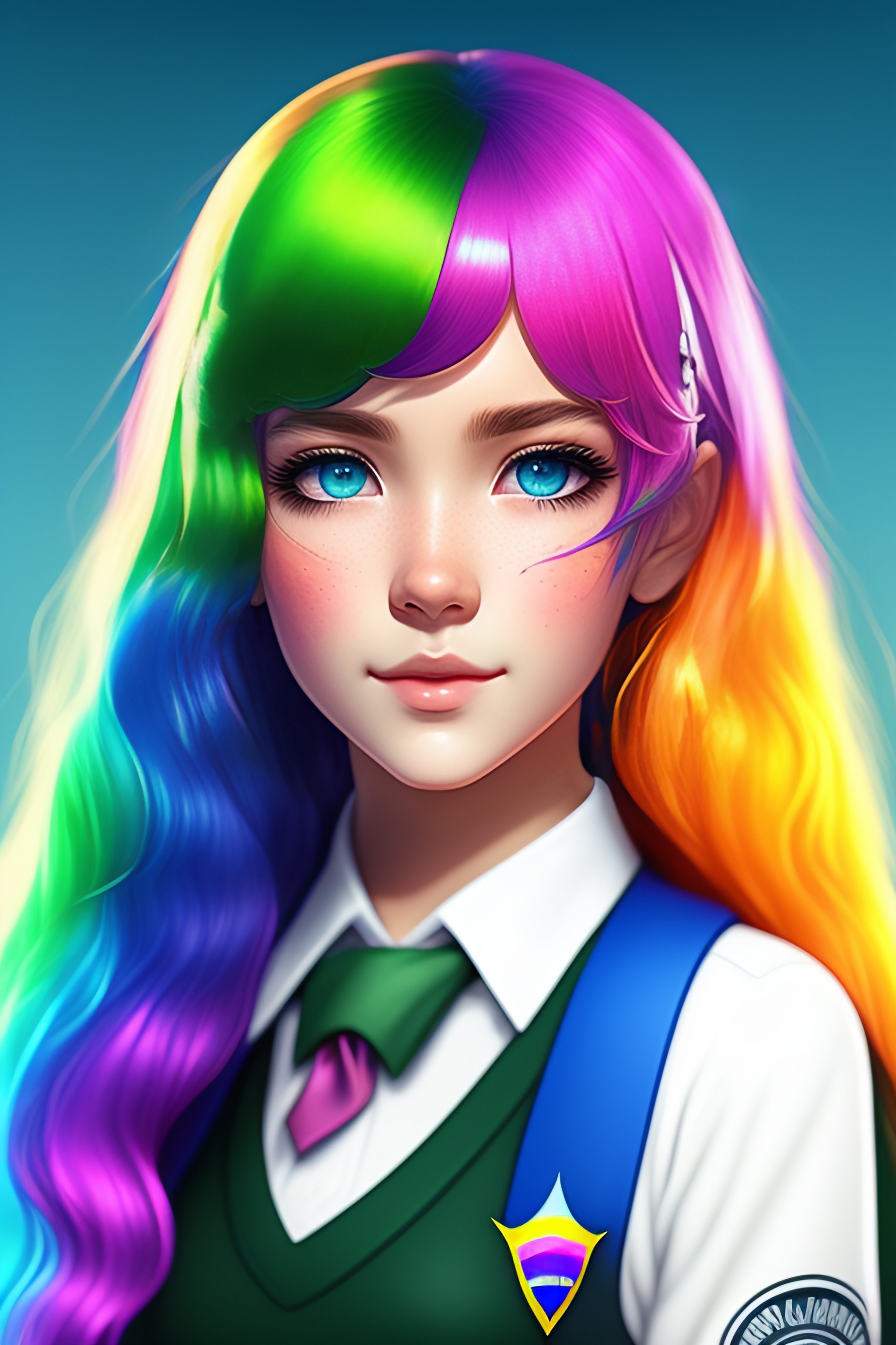 Schoolgirl with rainbow colored hair