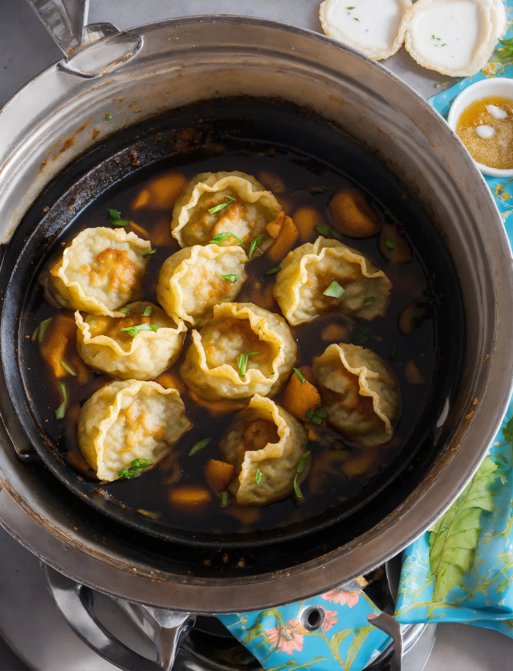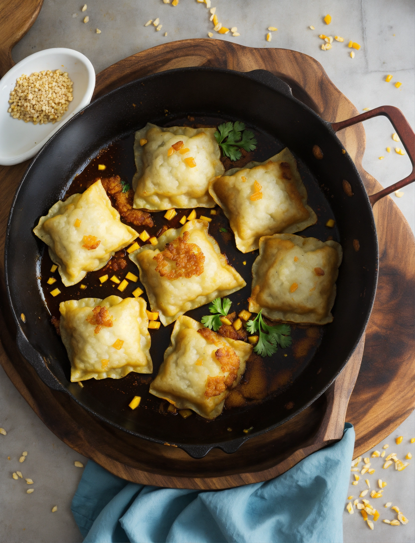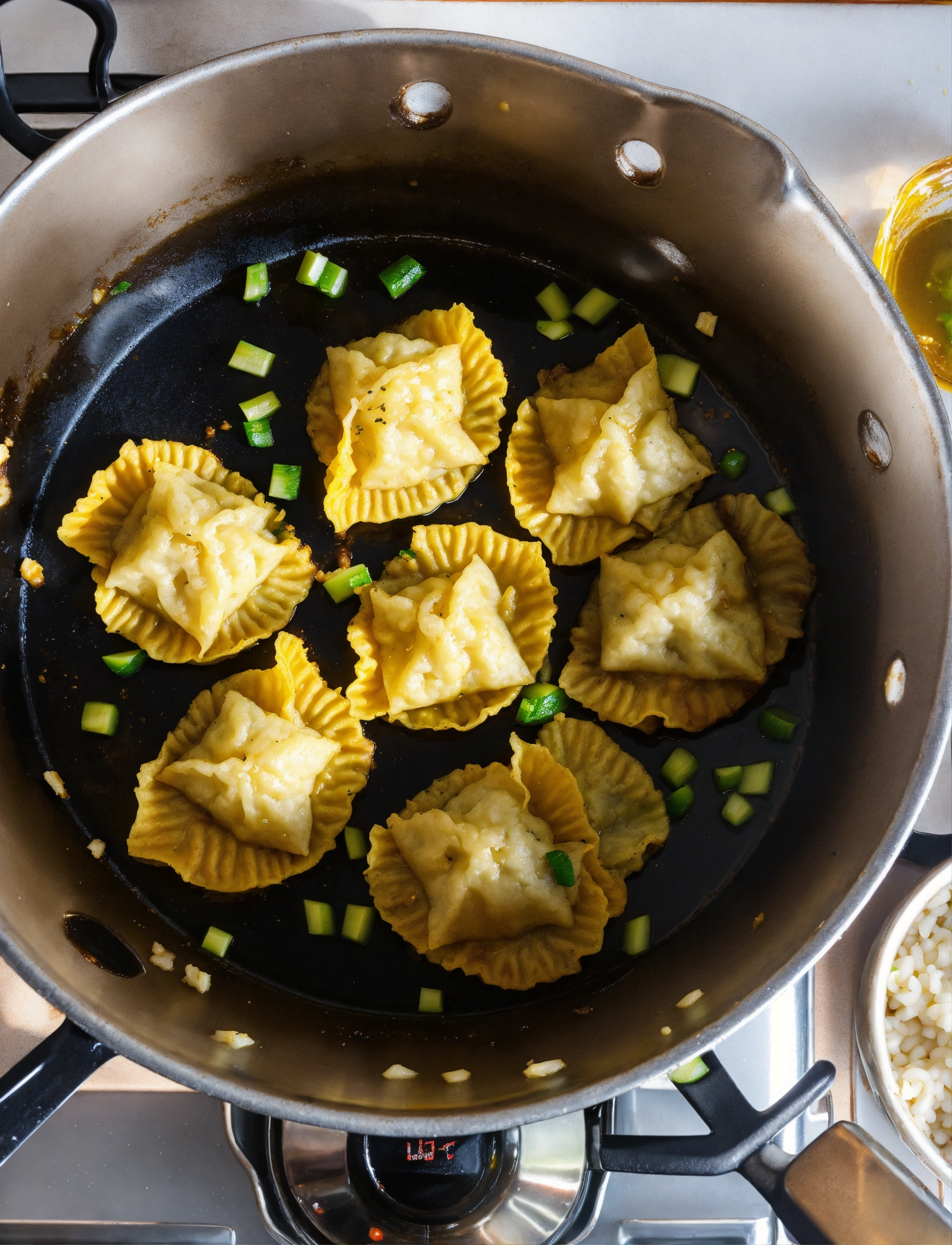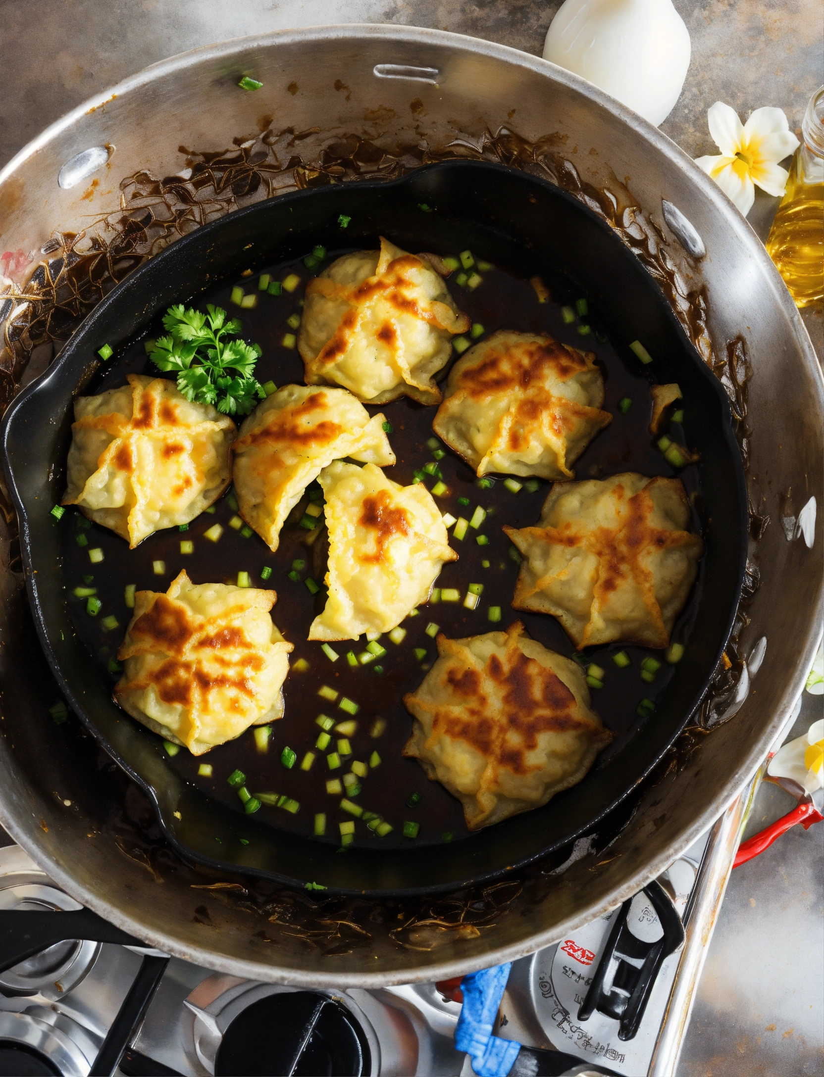 Cartoon carribean crispy fried dumplings cooking in hot sunflower oil