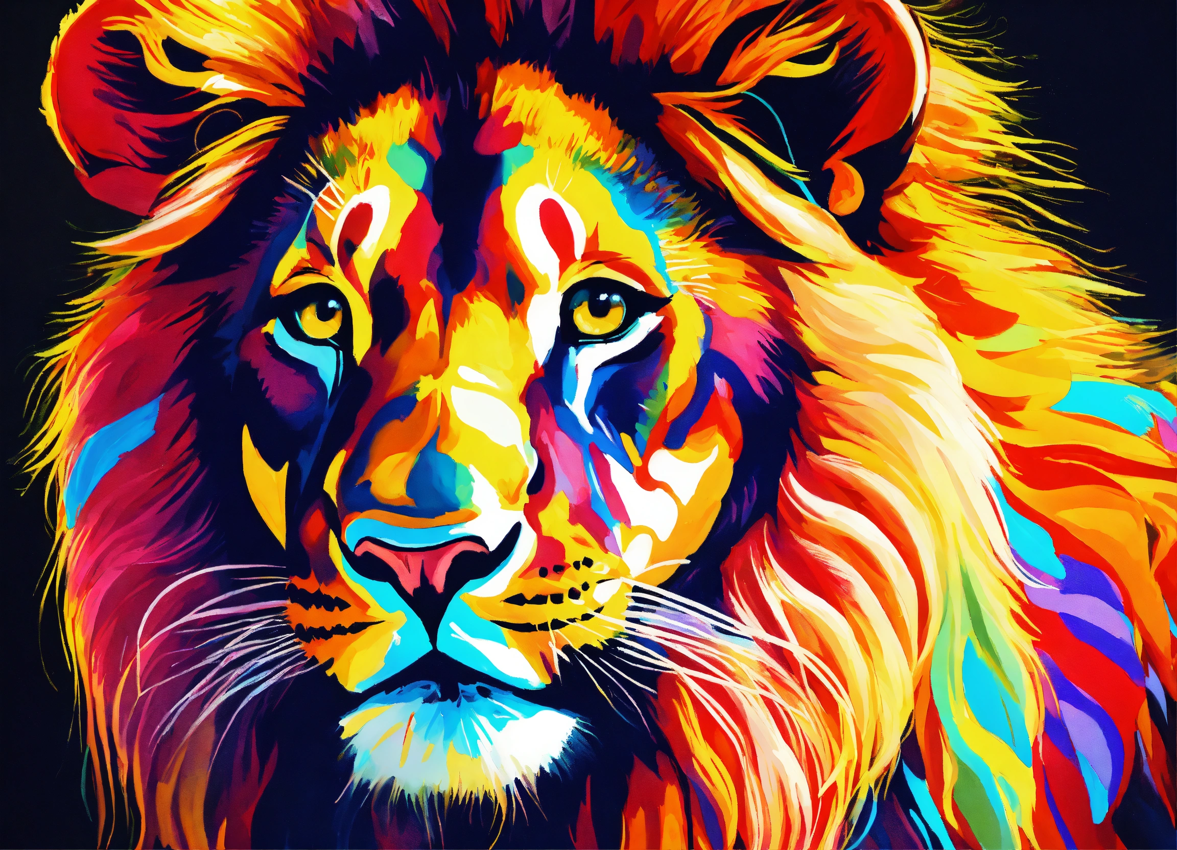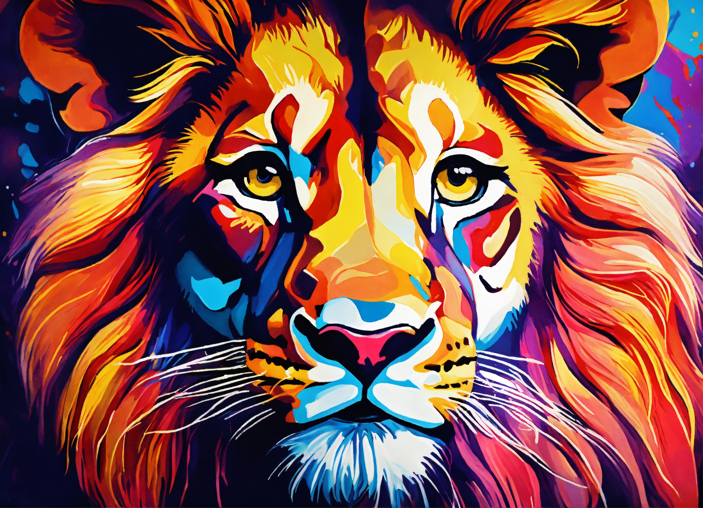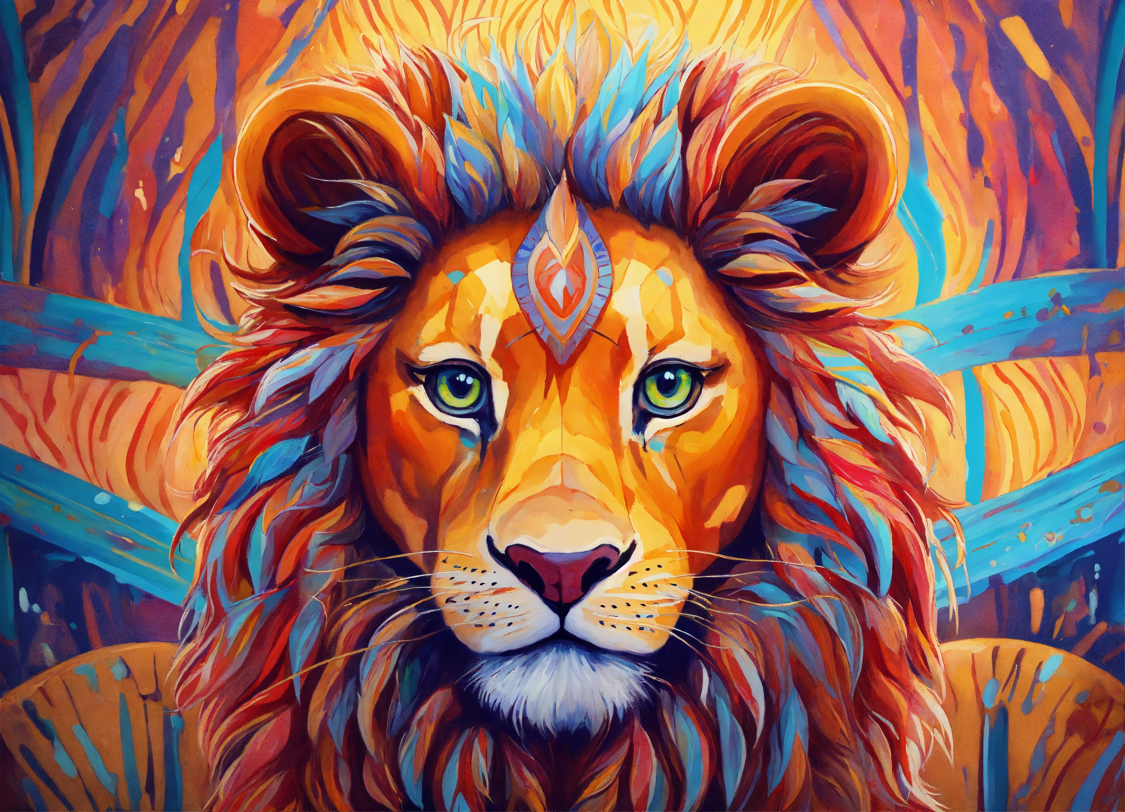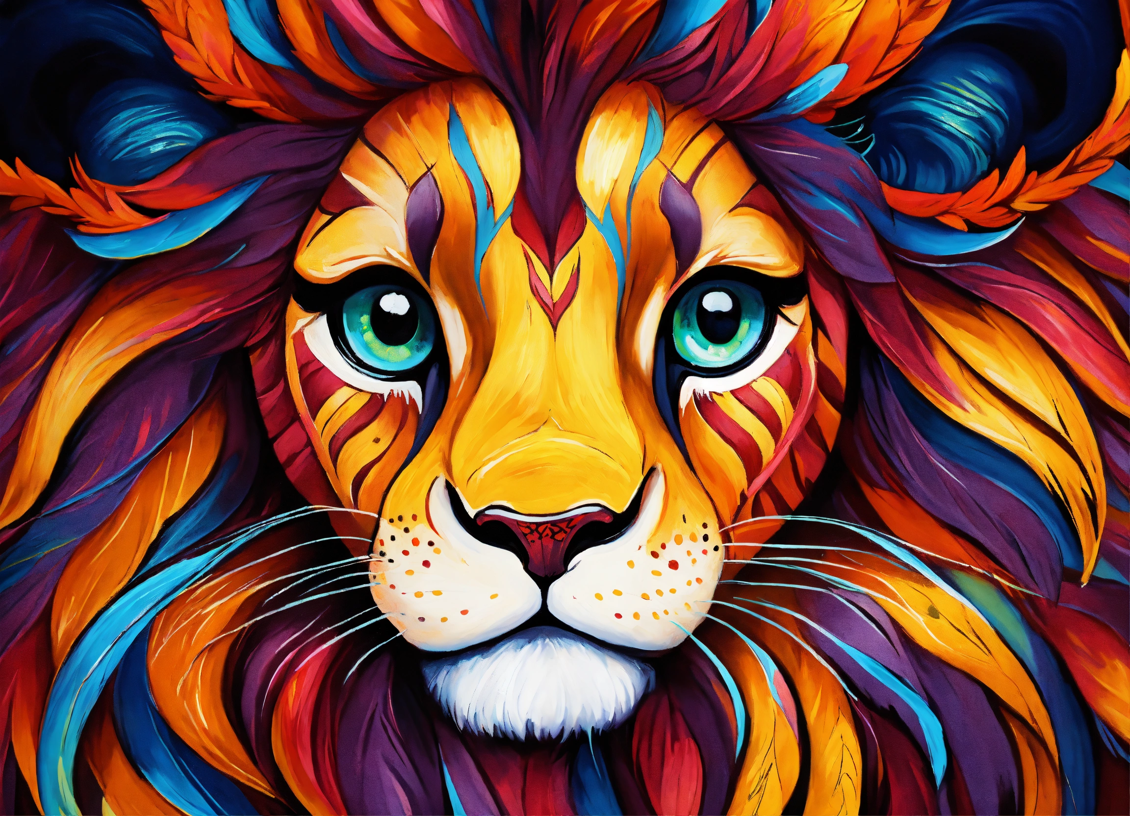 Vibrant neo-traditional, a painting of a cute baby lion with striped patterns soulful eyes and bright colors, highly detailed 4k painting