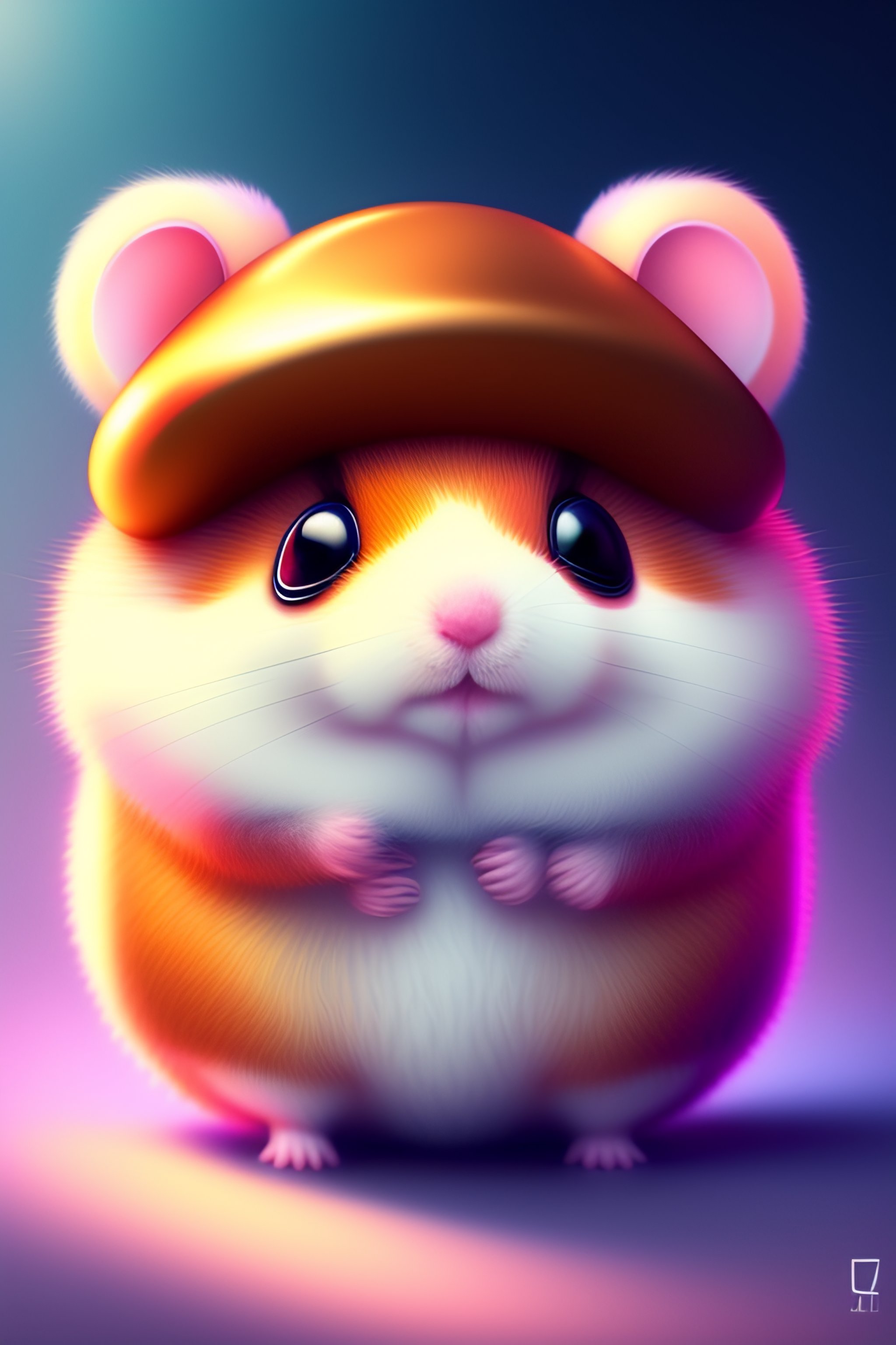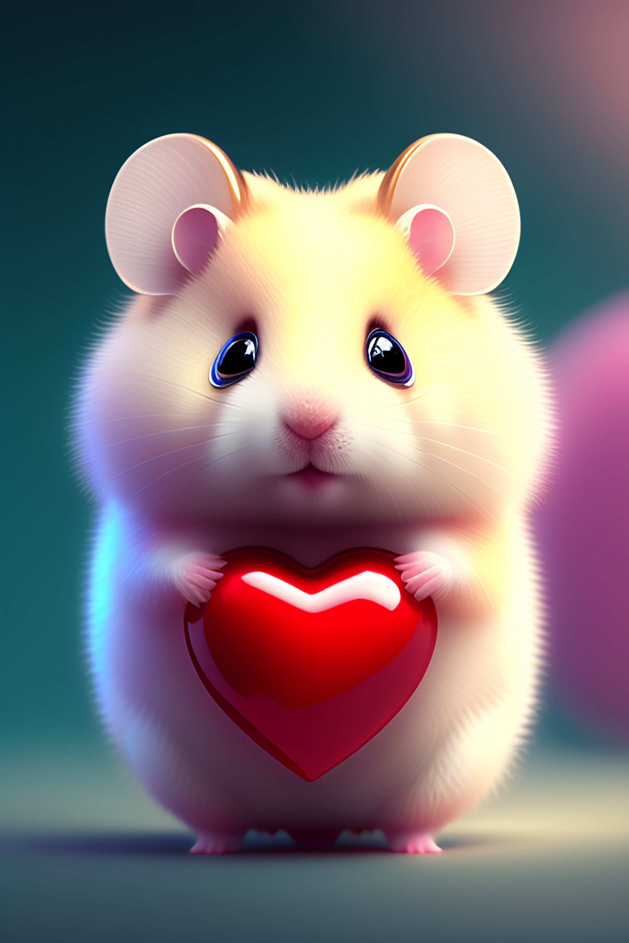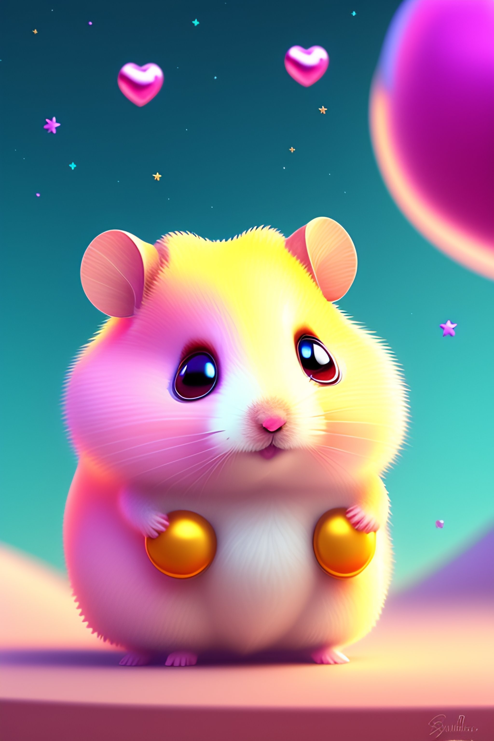 Cute and adorable cartoon fluffy hamster, heart, candy, space, fantasy, glitter, party, dreamlike, surrealism, super cute, trending on artstation