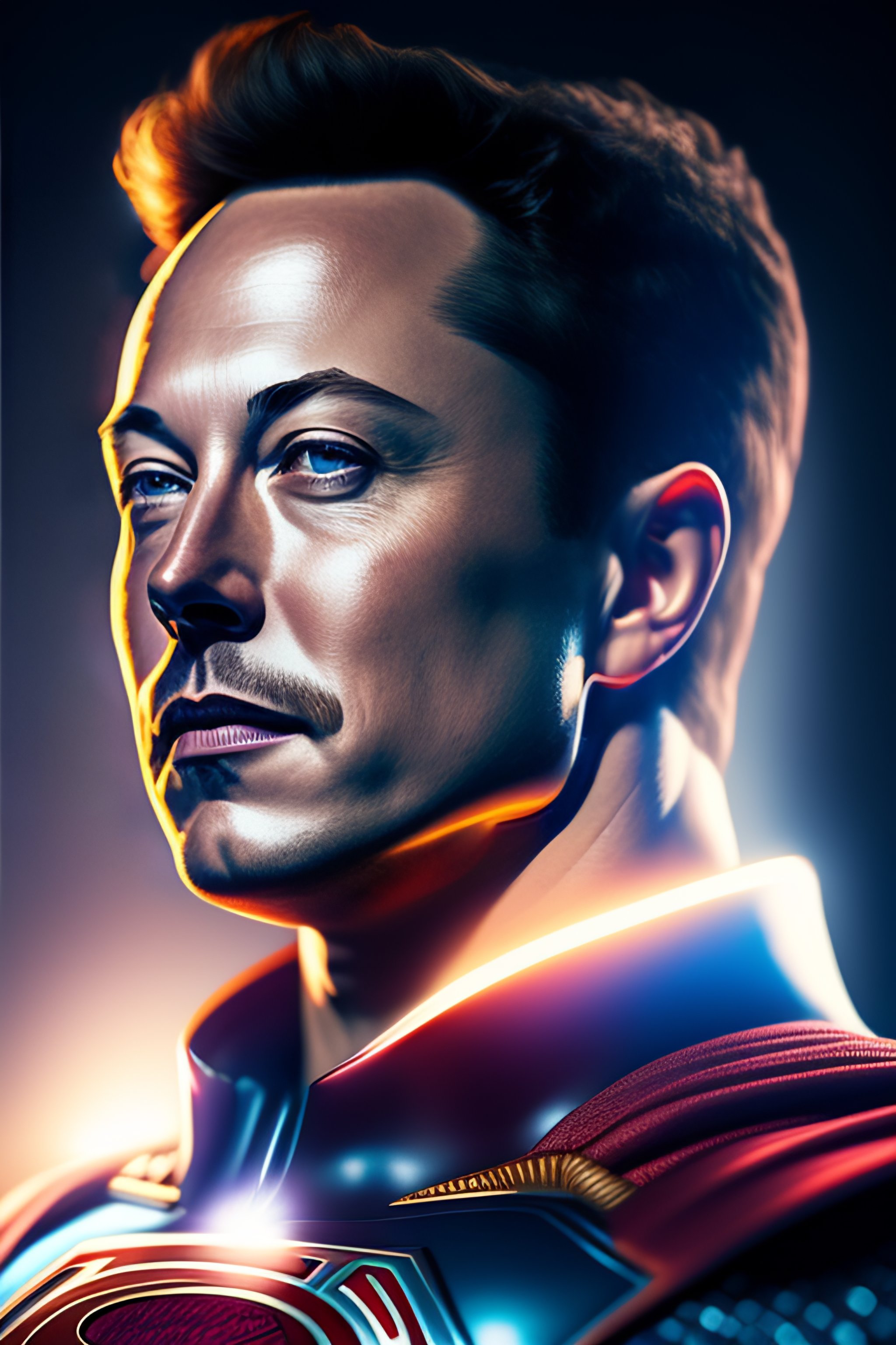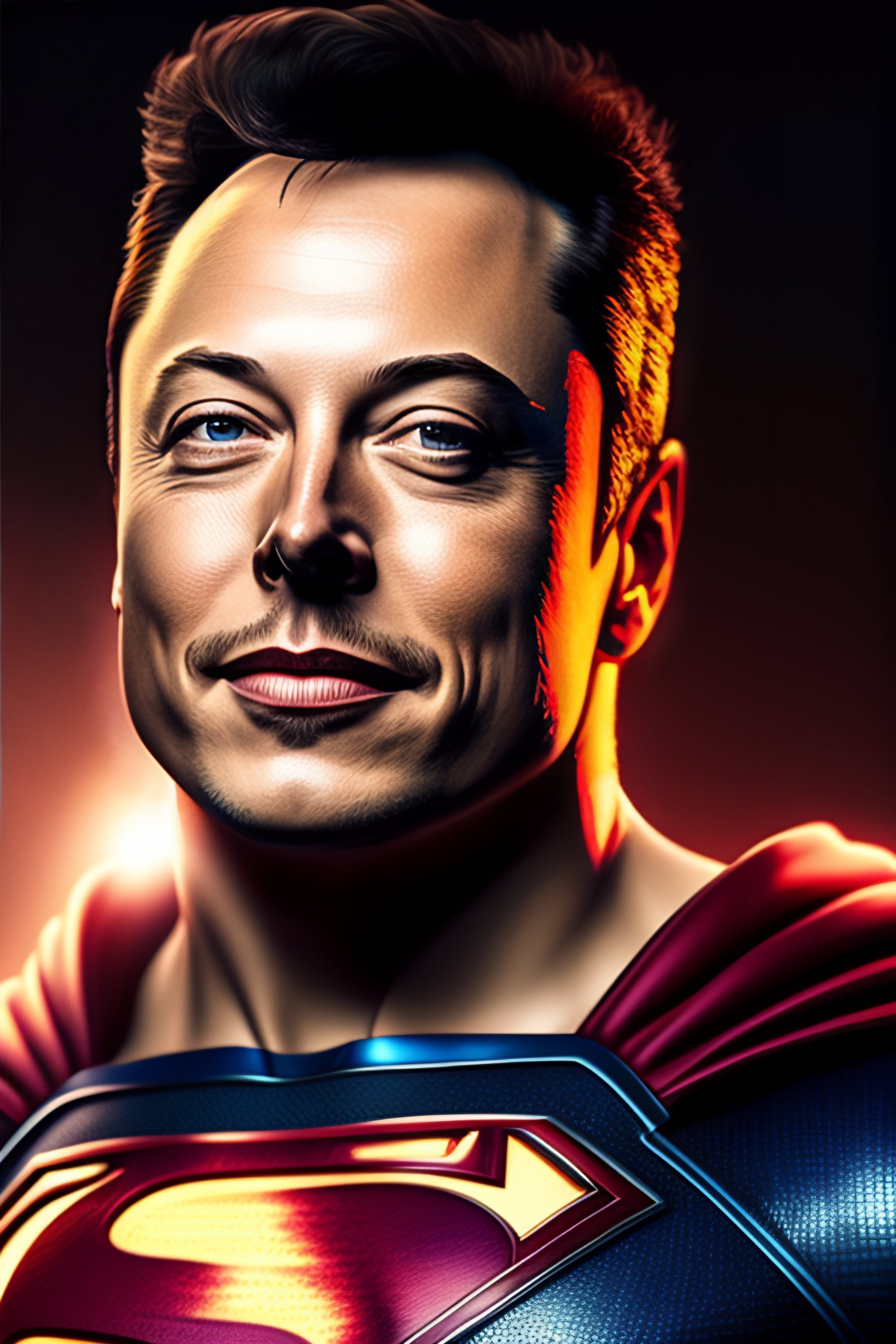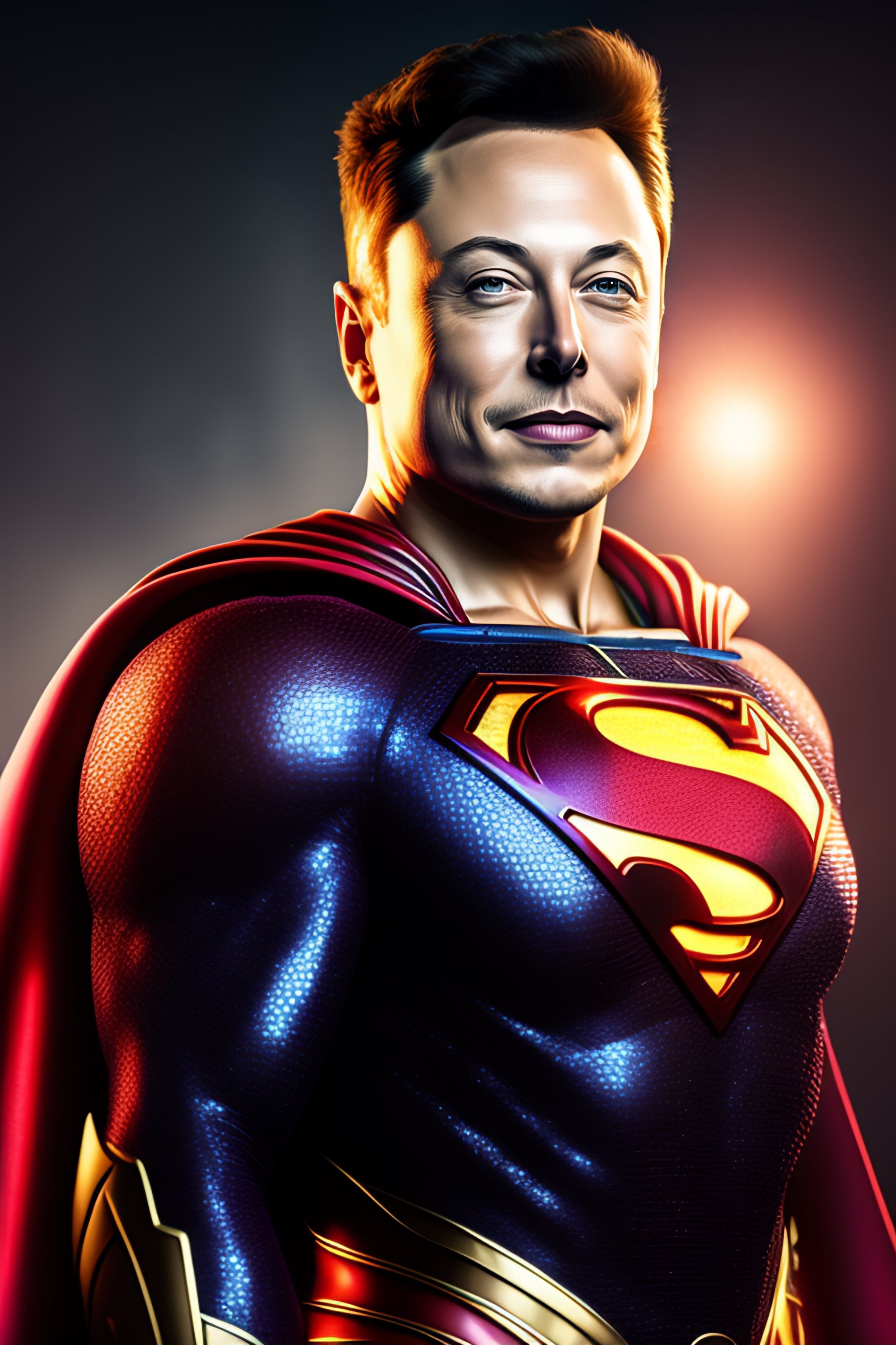 Highly detailed portrait of elon musk, dressed as superman, global illumination, radiant light, detailed and intricate environment