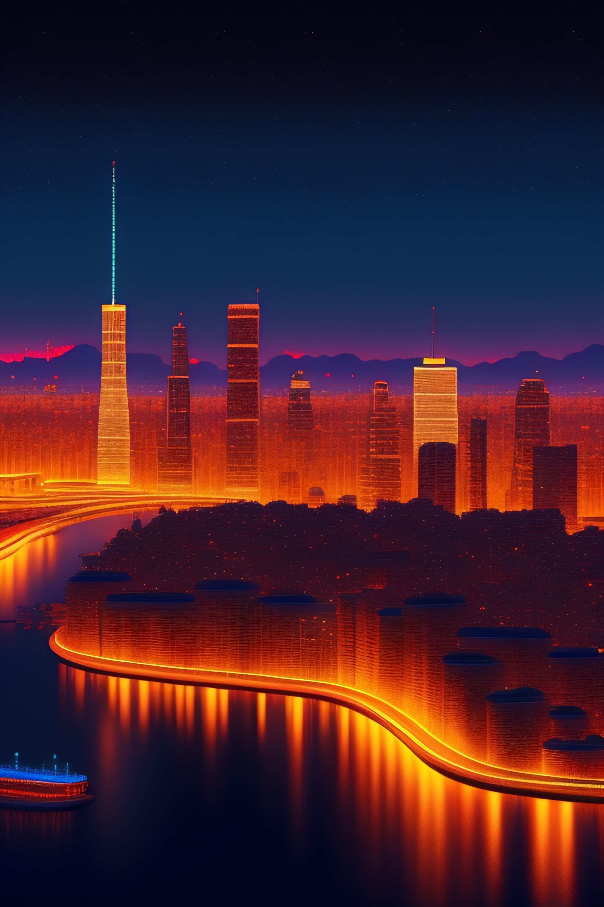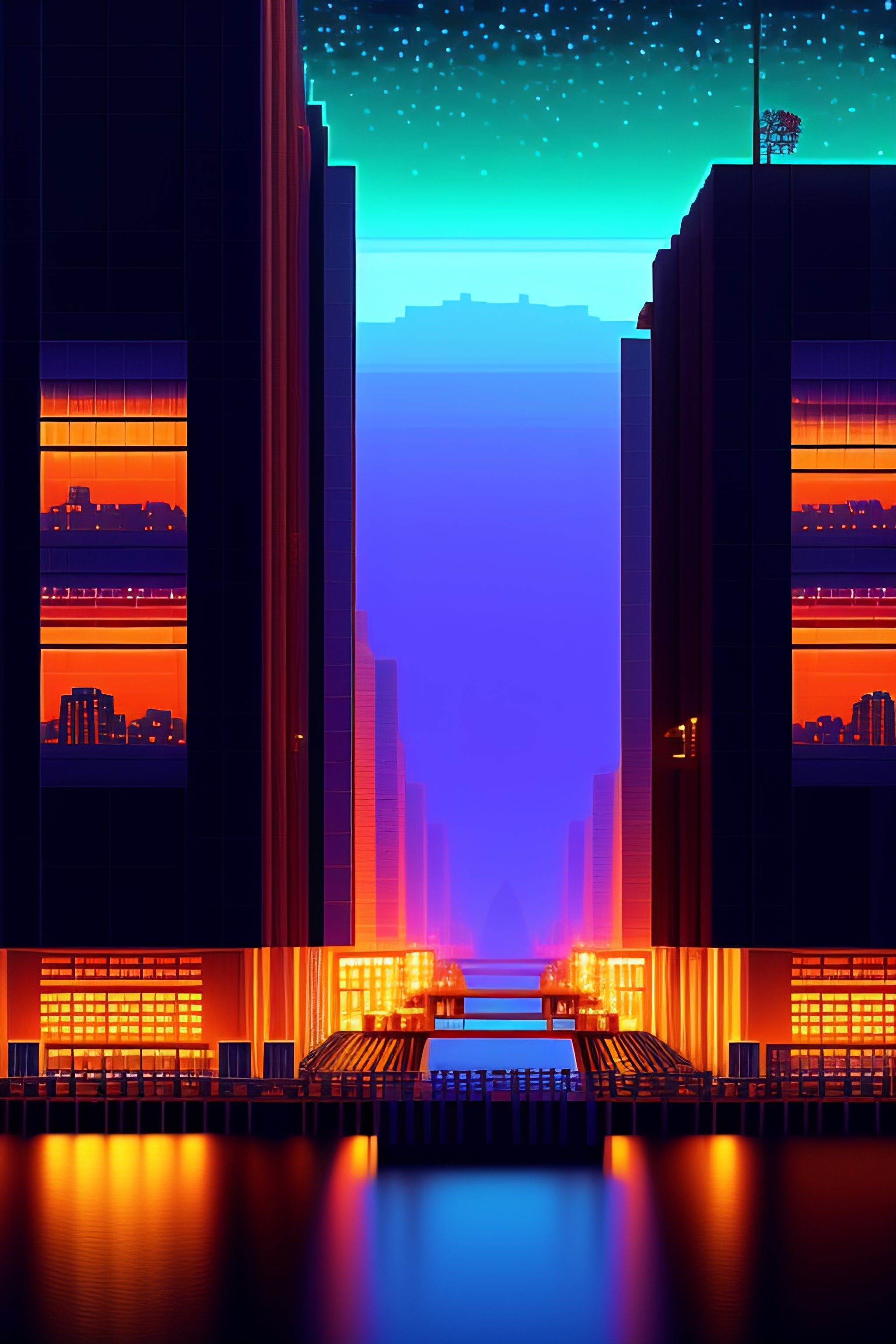 3d. 8k. city at night. 3d pixel art wallpaper.