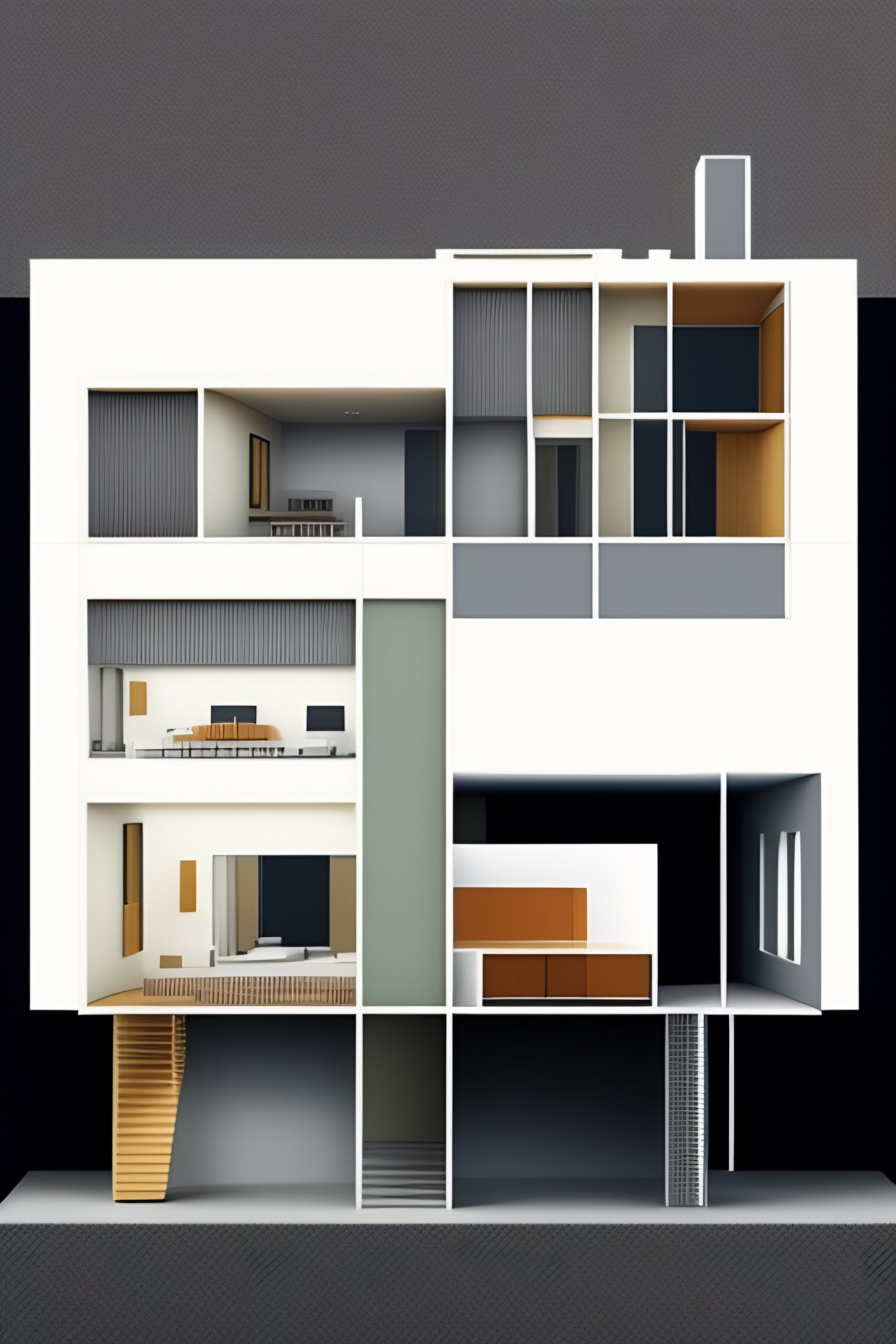 Architecture cross-section of a house designed by dieter rams, diagram, technical drawing, stunning design