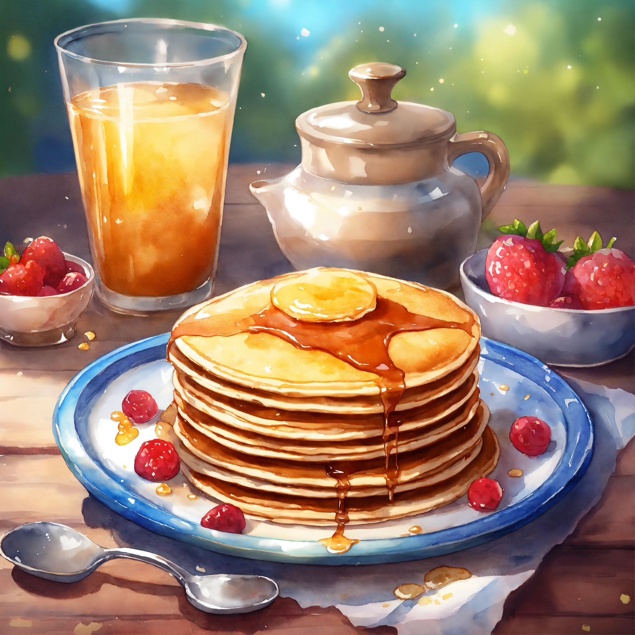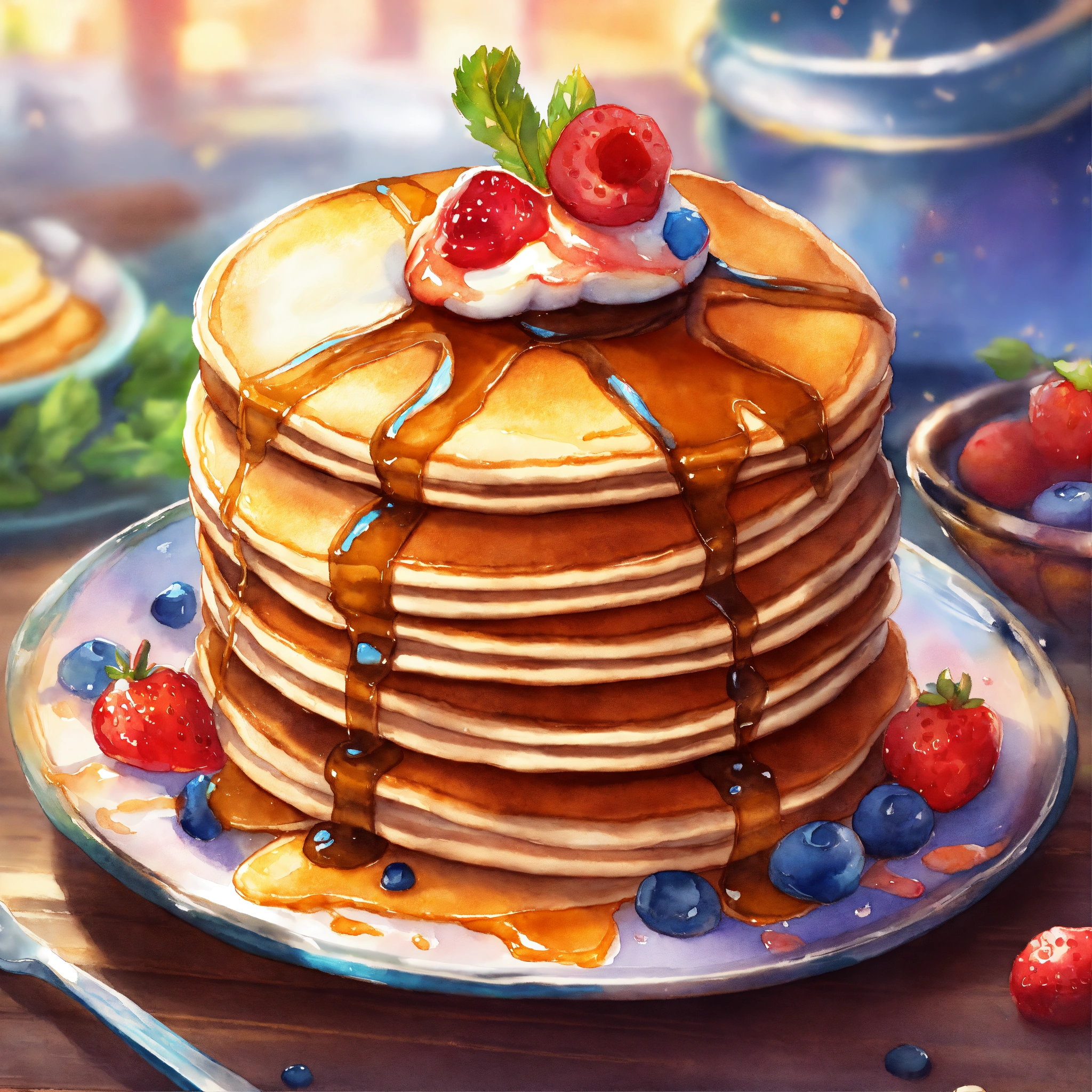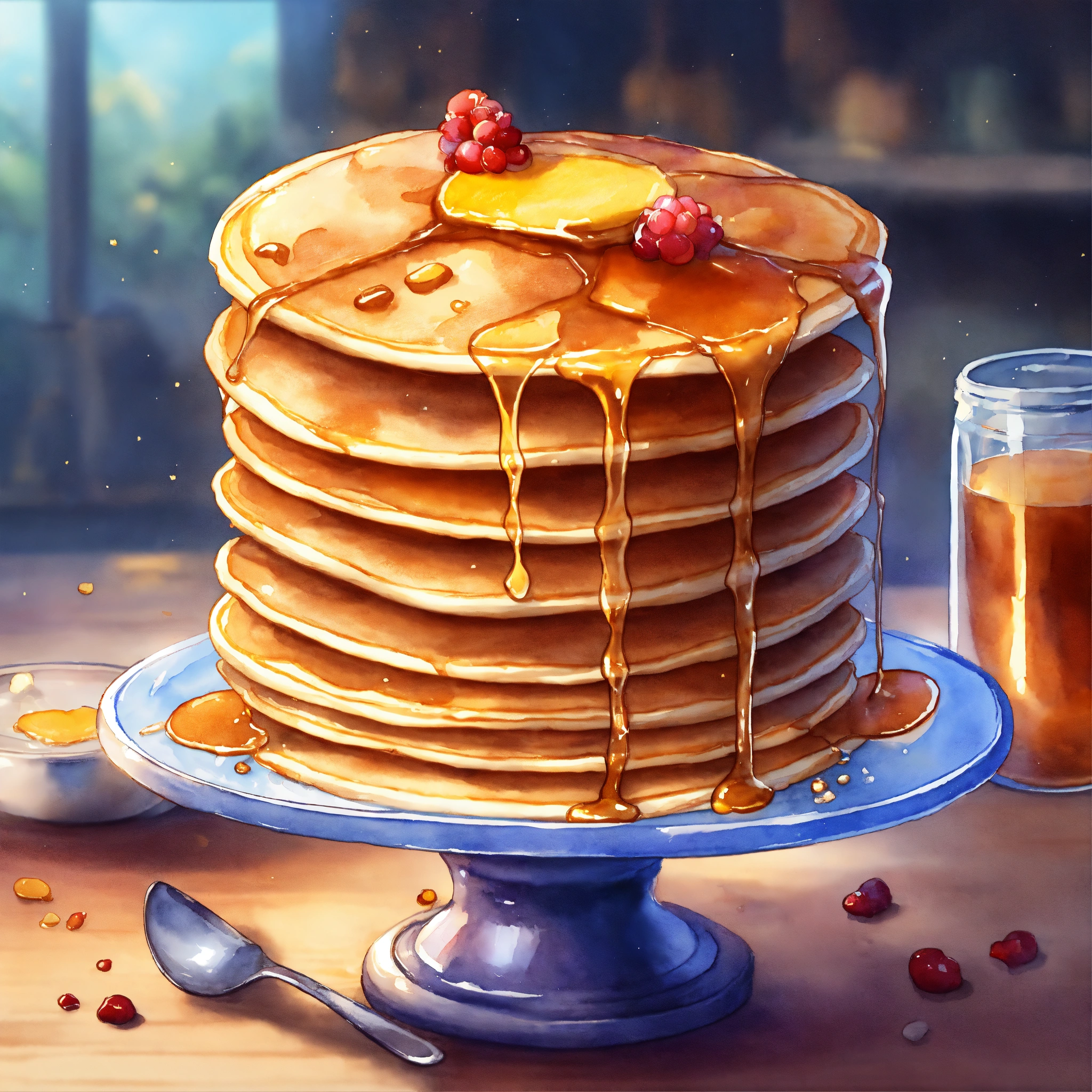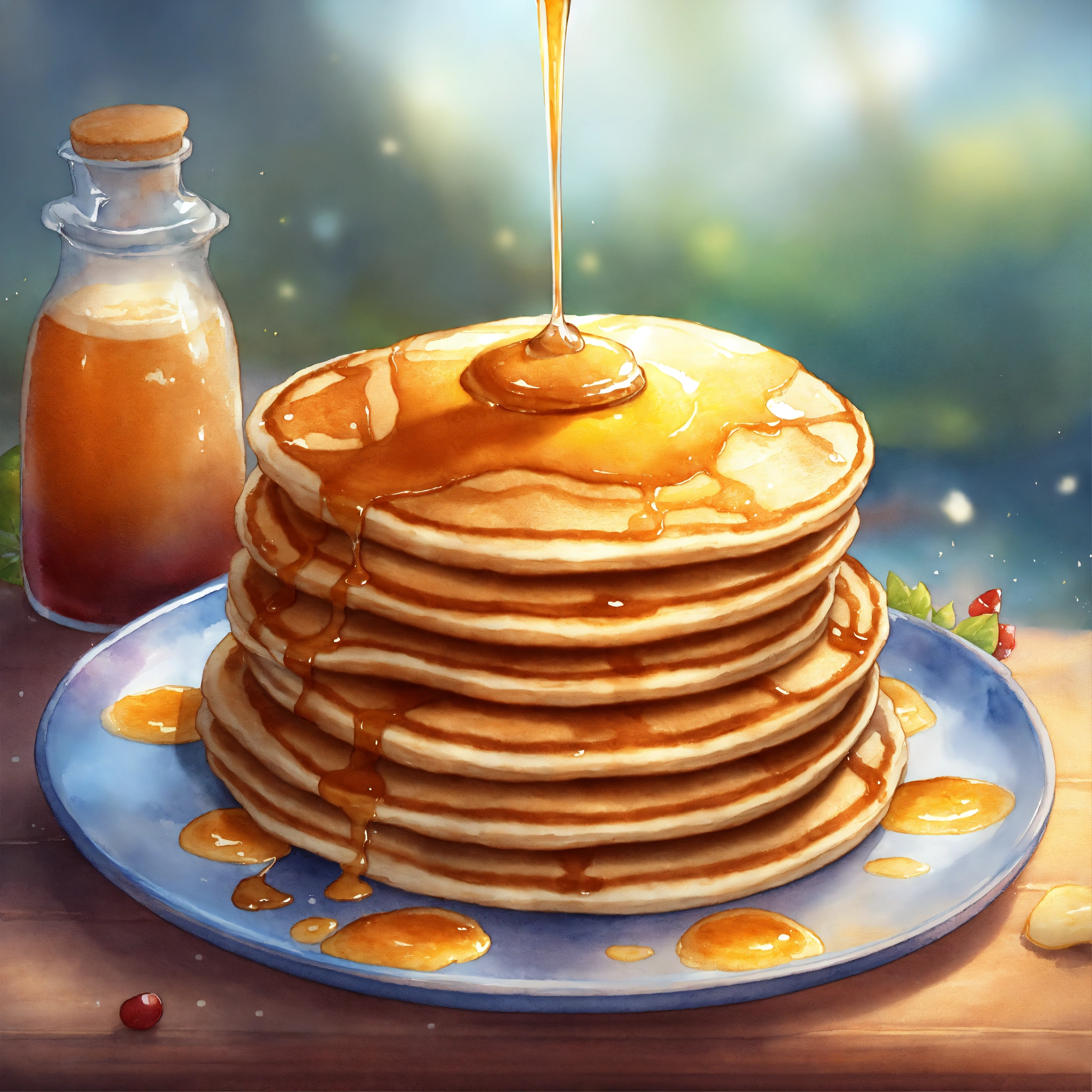 Glass with pancake mix, game icon, fantasy style, digital drawing, artstation, watercolor illustration