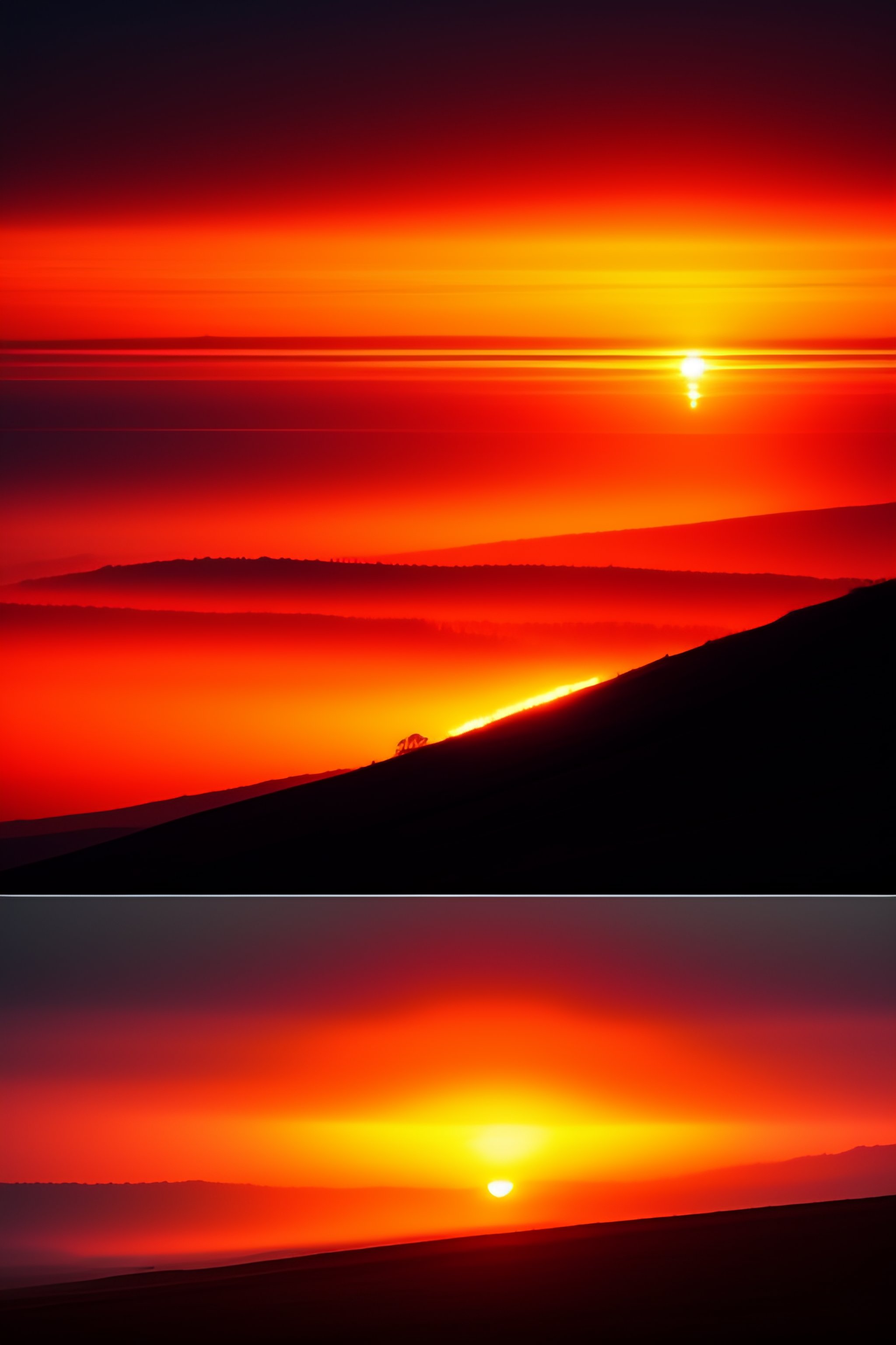 The last sunrise: the sky bathes the world in a dull orange glow as the last rays of sun reflect off the burning earth. nothing is left but the ashes of what was once a living, vibrant world.