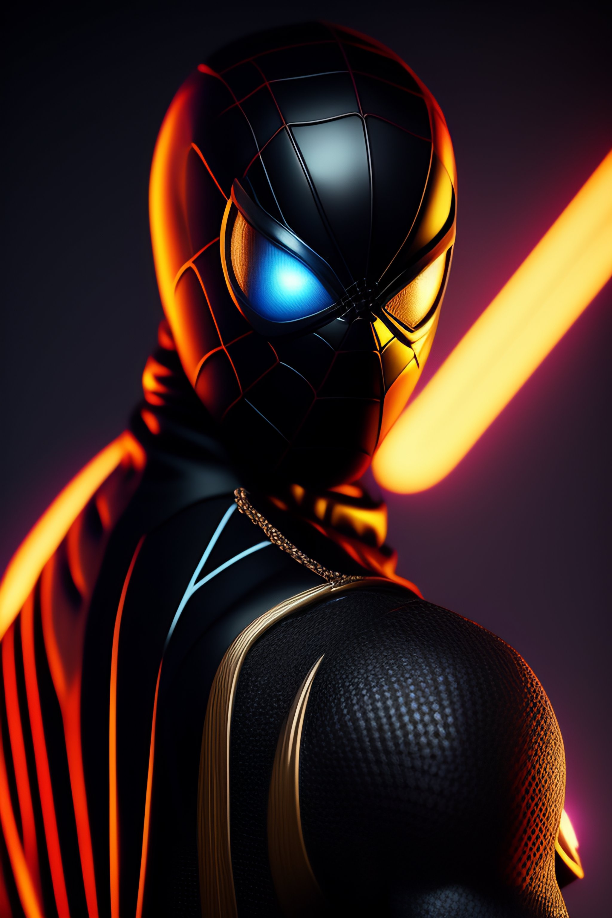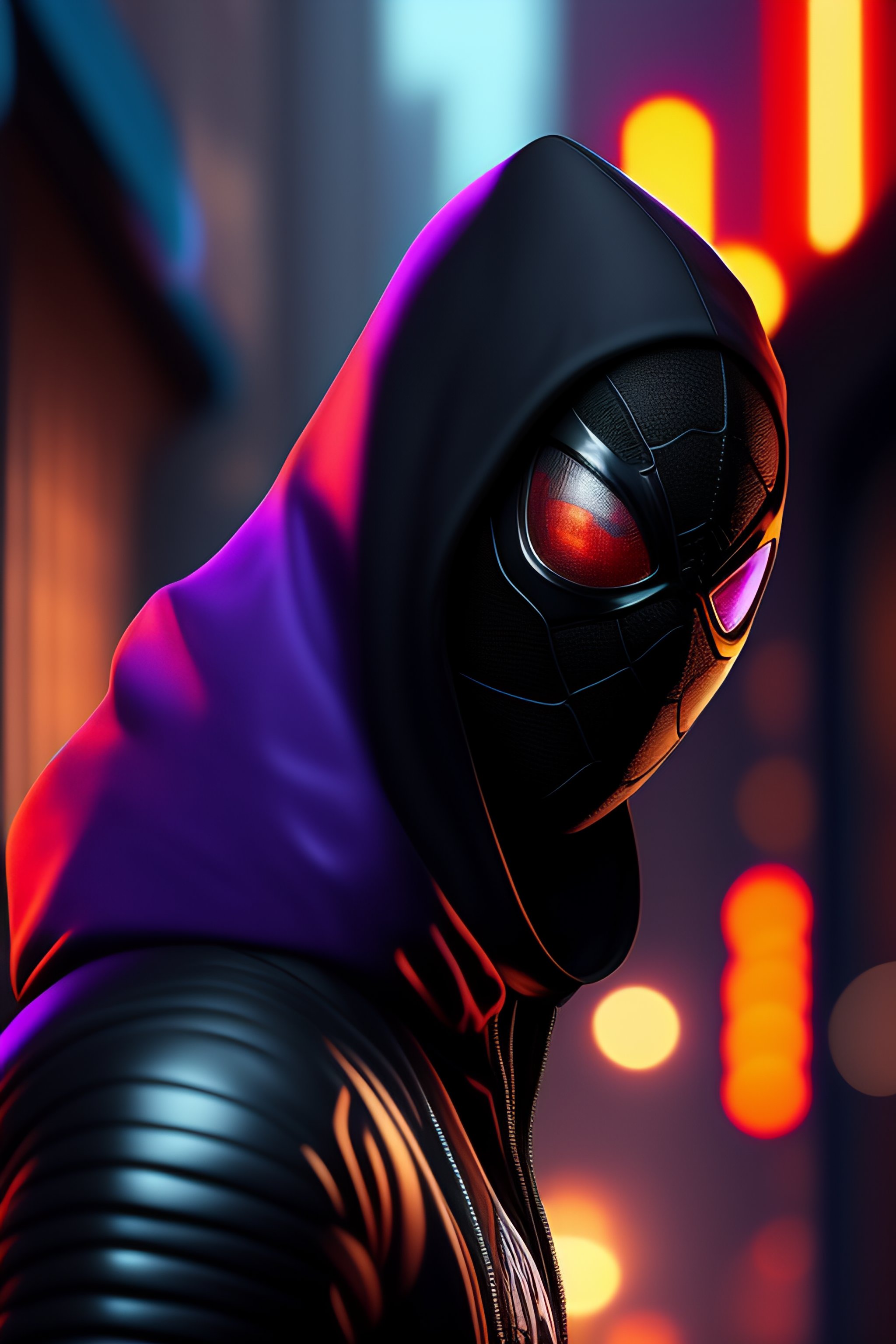 Black spiderman miles moralies, wear black hoddies, black sreen background, fortnite charrcter, with powerful colors, beautiful, colorful, powerful, intricate, detailed, massive, octane render, unreal engine, ray tracing