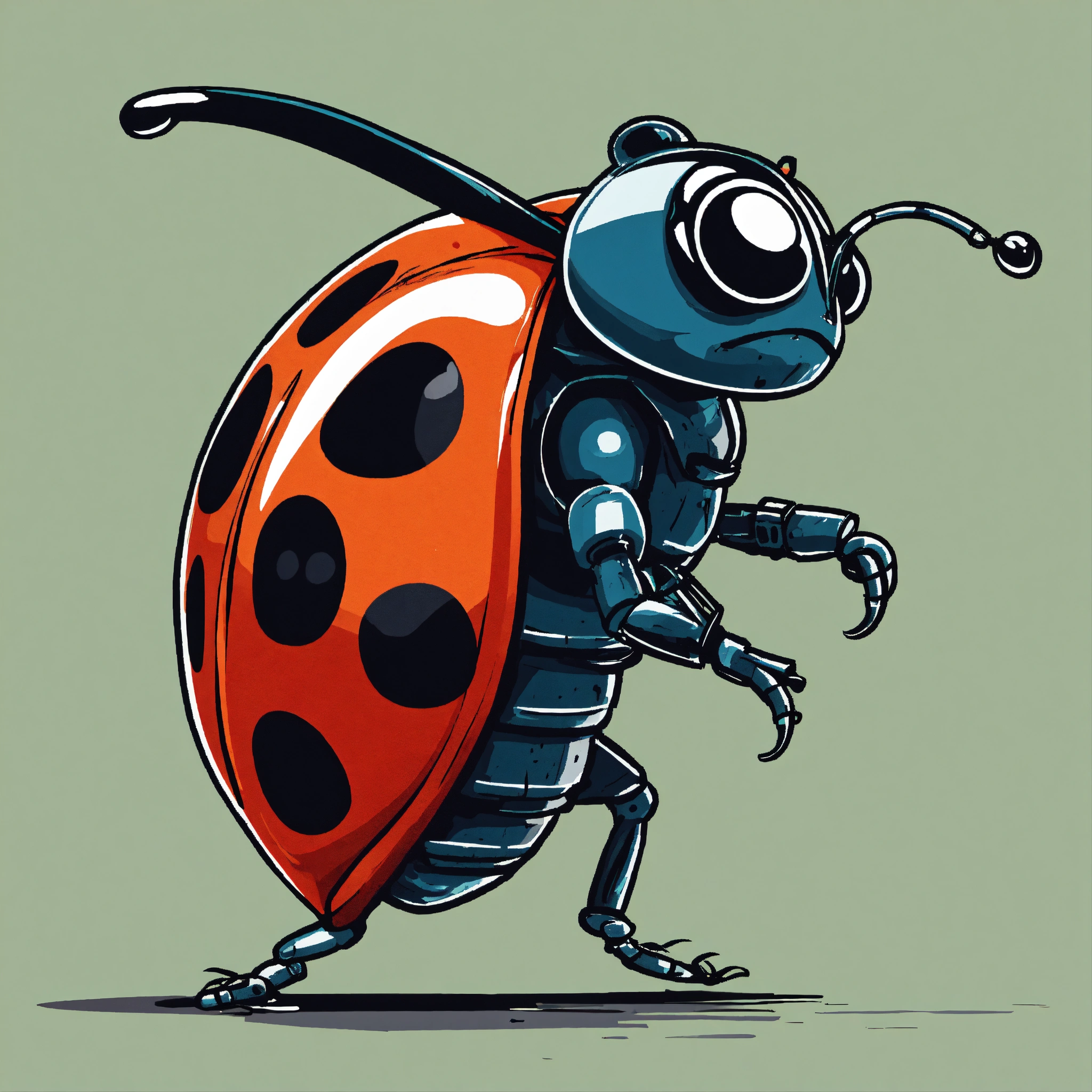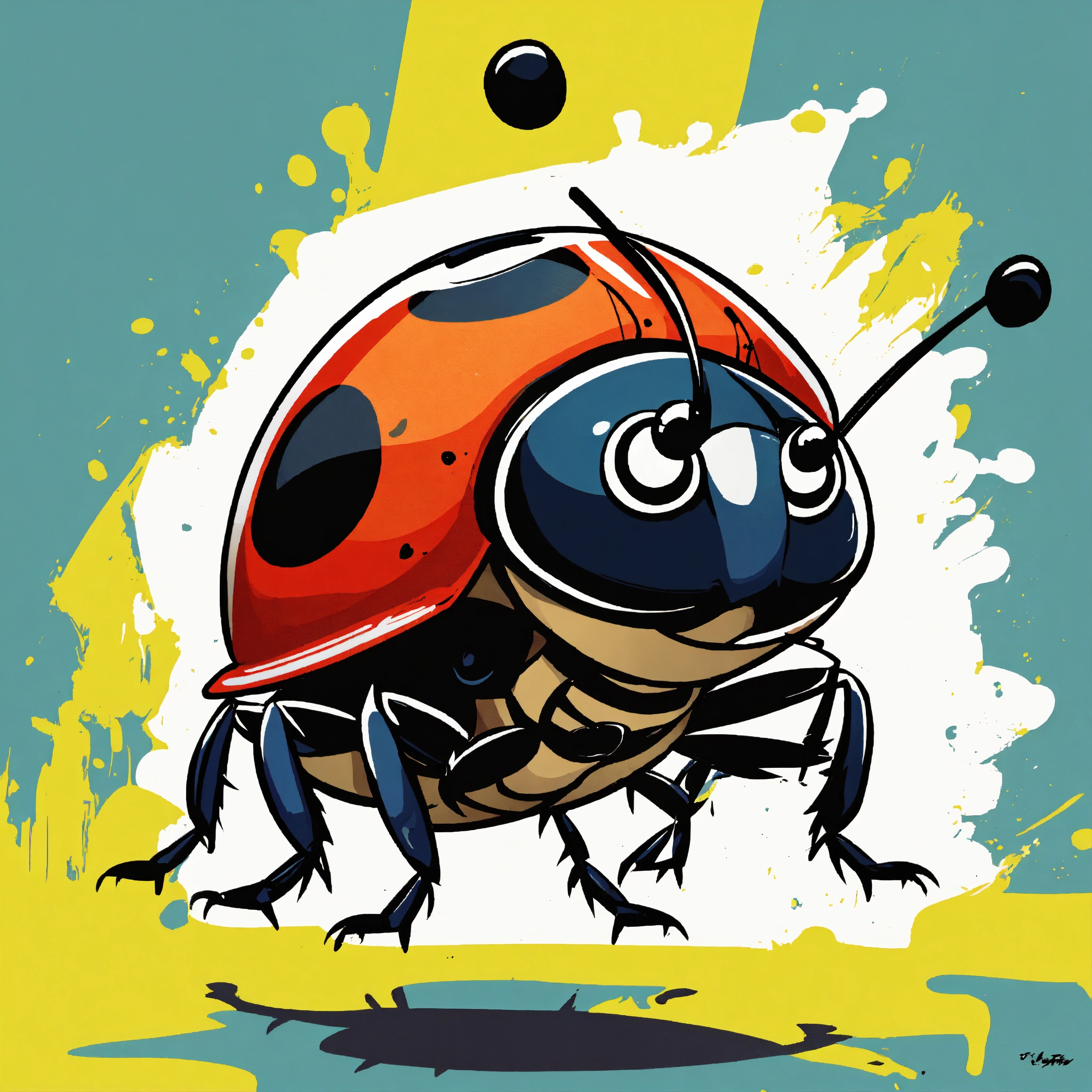 Vector illustration of a ladybug in the style by chris phu and bill watterson, isolated on a white background, graffiti art-influenced, t-pose, dynamic angle, sharp, cartoonish humor.