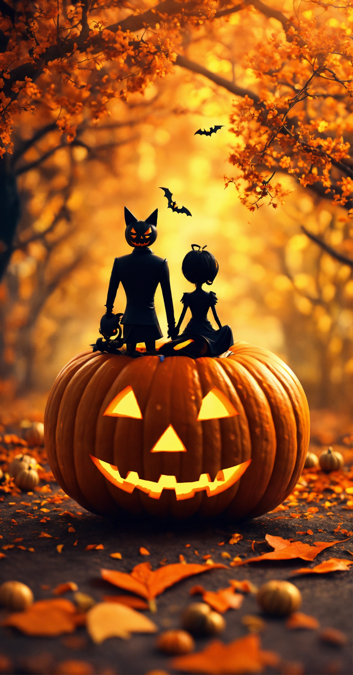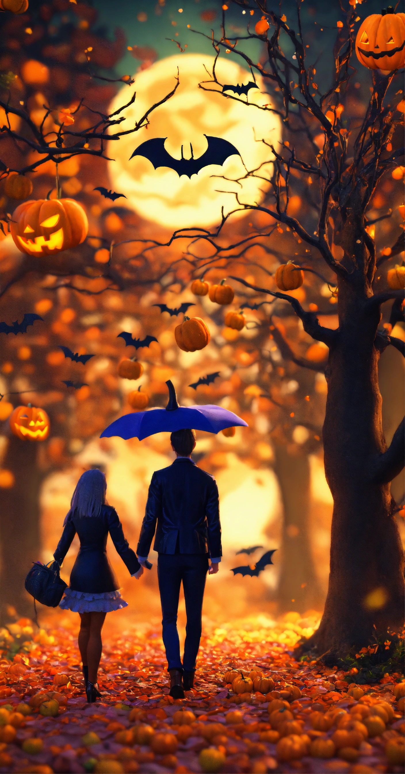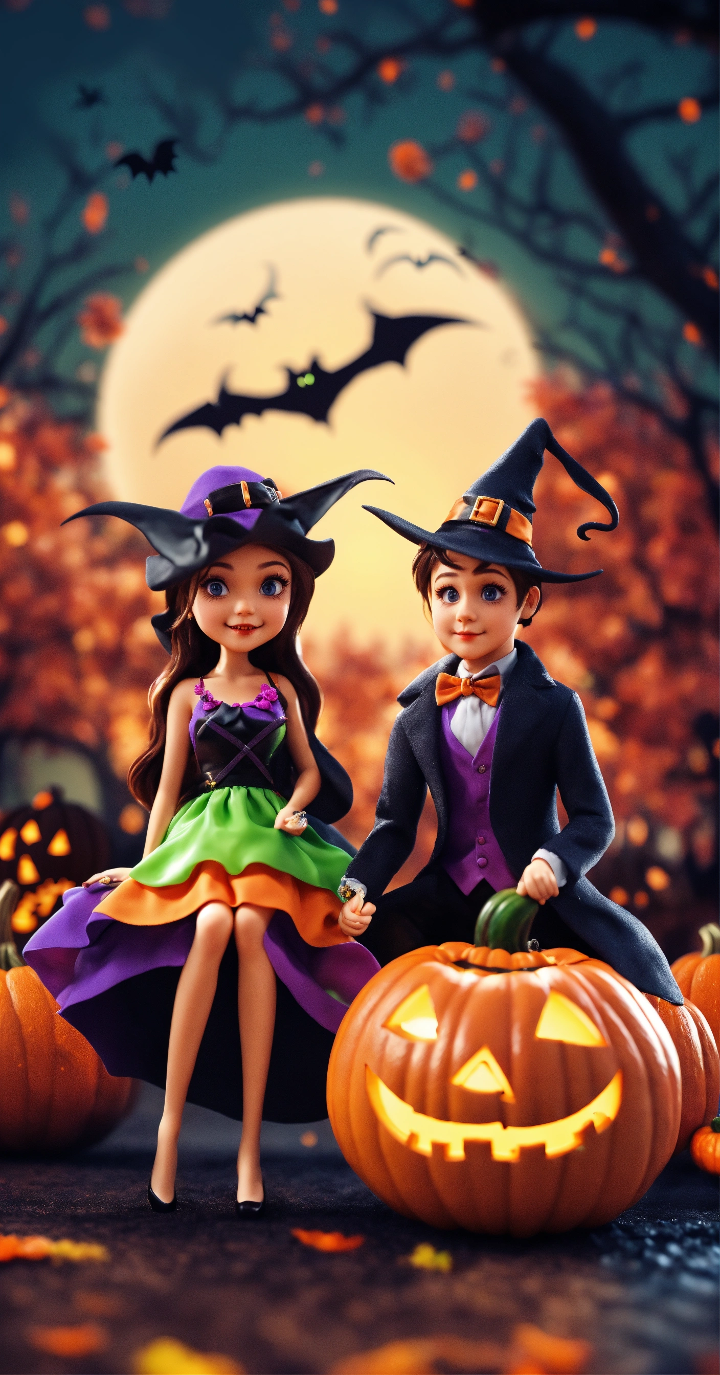 Halloween, wallpaper, highly detailed, sharp focus, halloween day, special, cool, 8k, colorful, cute couples 3d