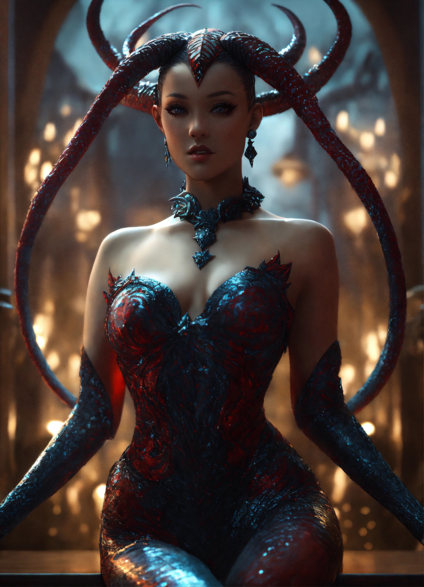 Demon goddess, venom, blender, spectral vision, wide shot, goddess, elegant, full body, smooth, highly detailed, beautiful, smooth skin