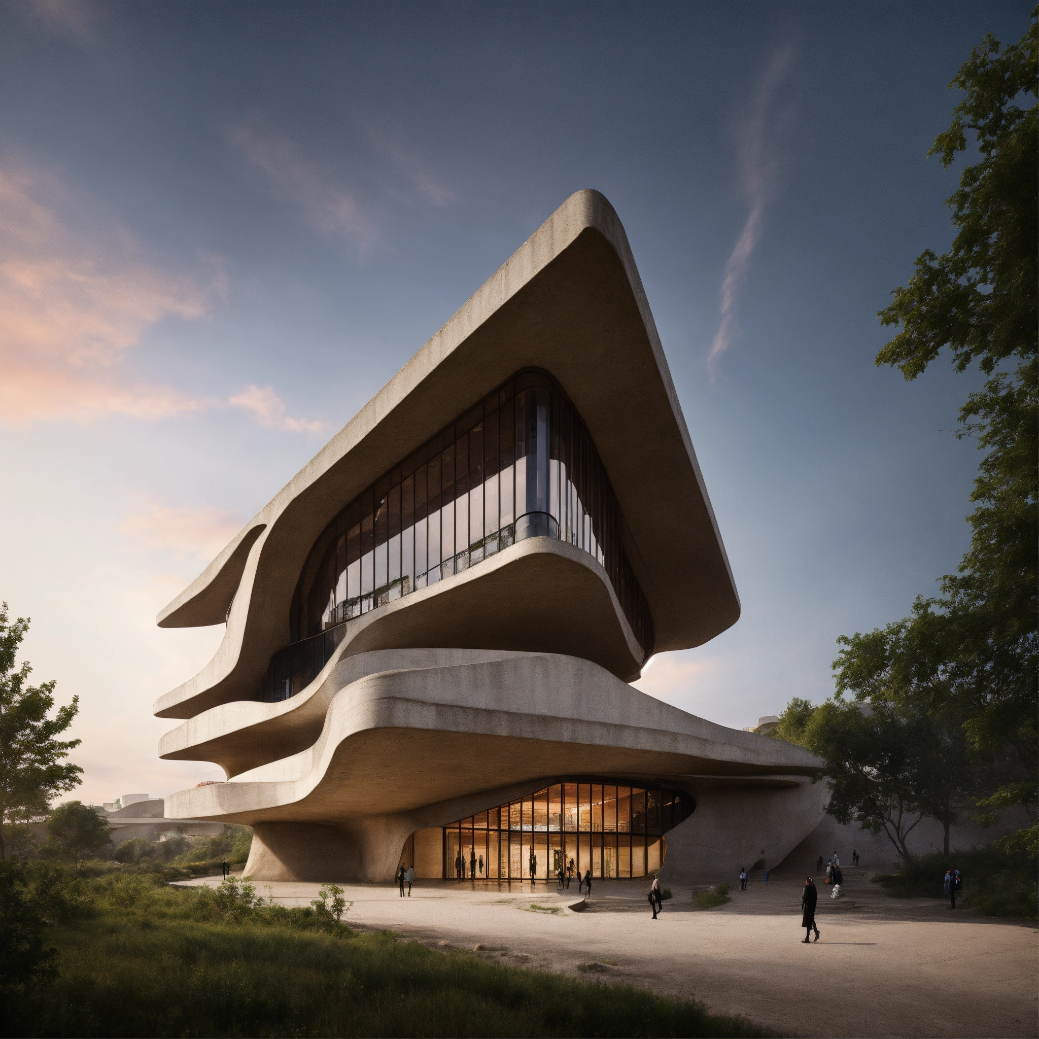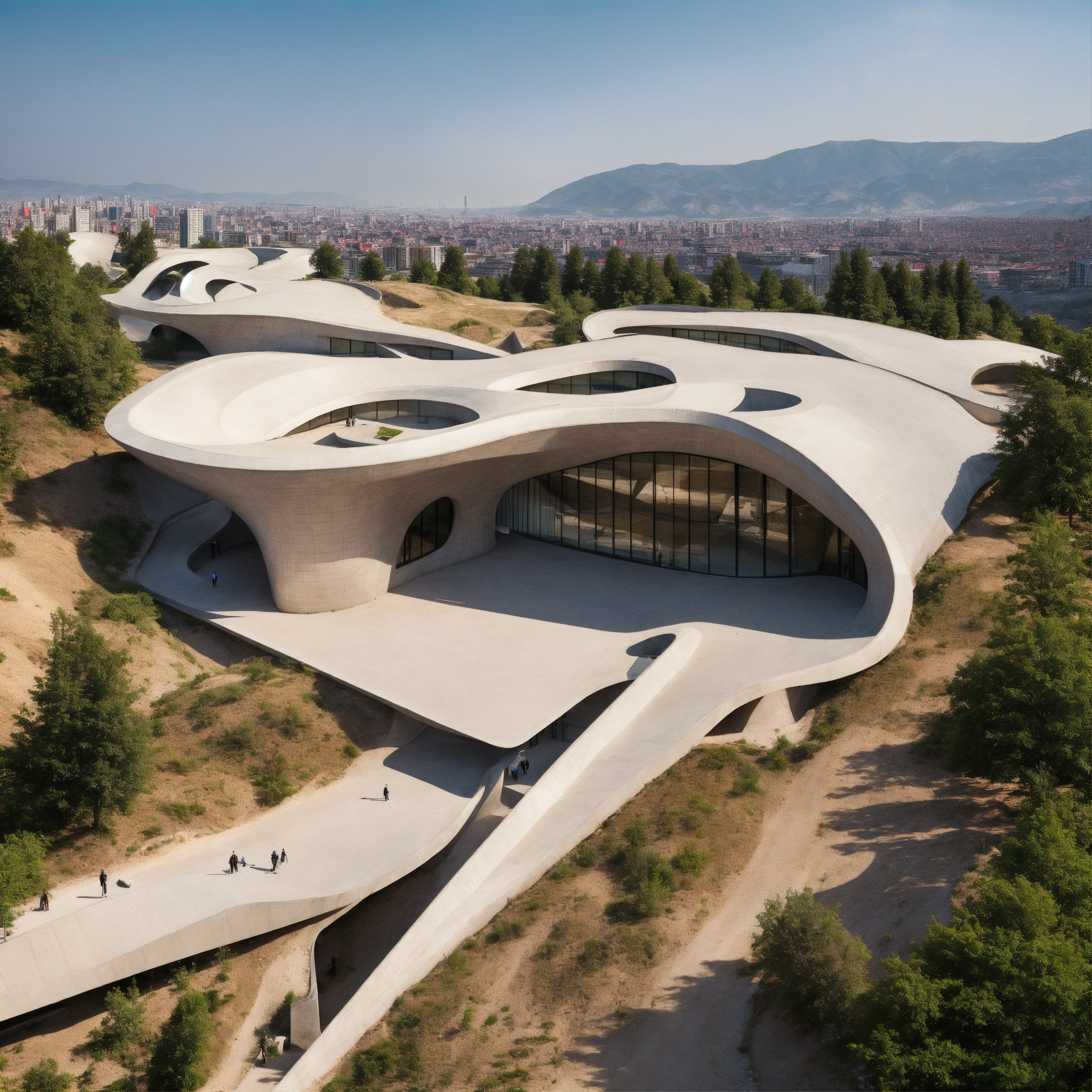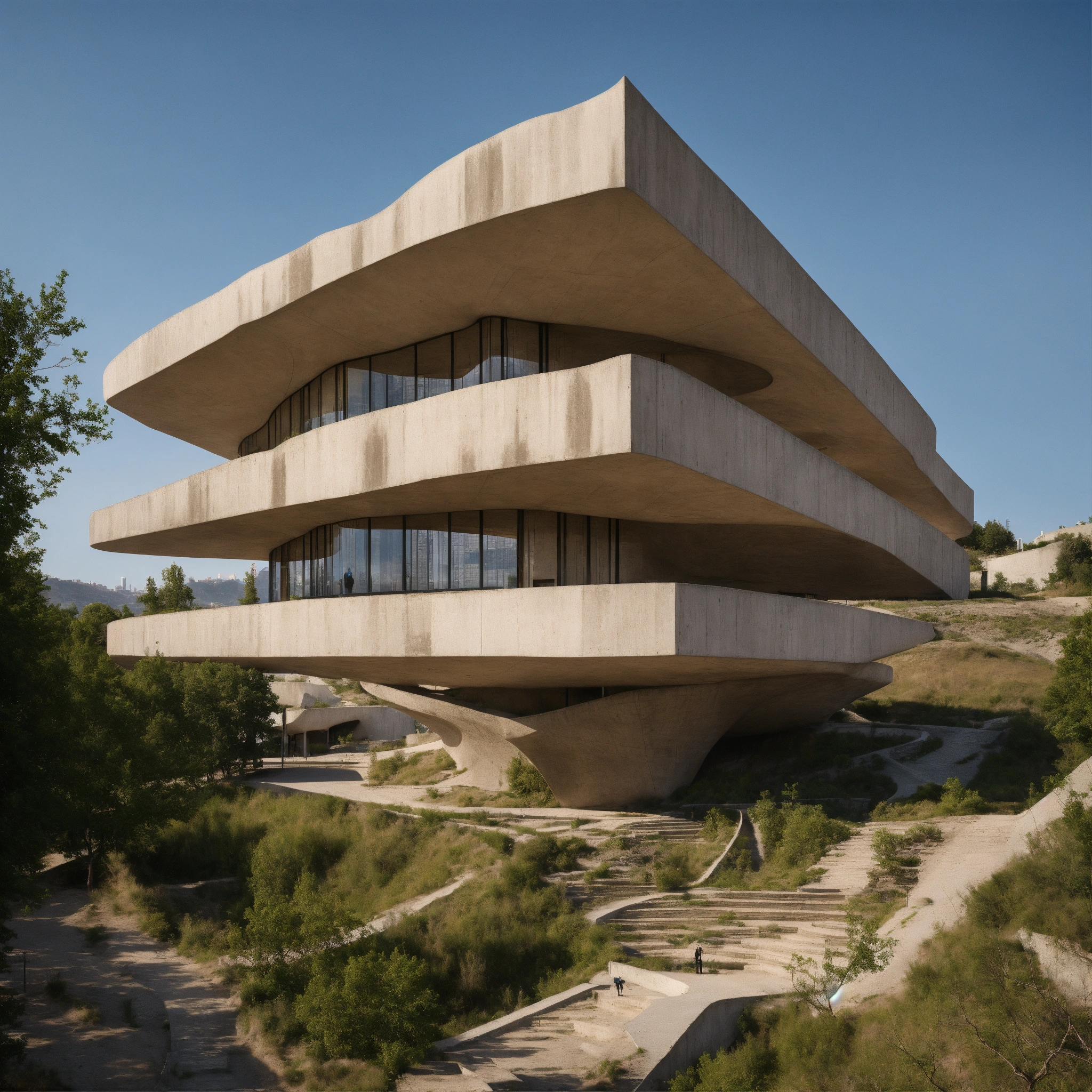 Zaha hadid brutalist historical site in the megalopolis made of chukum