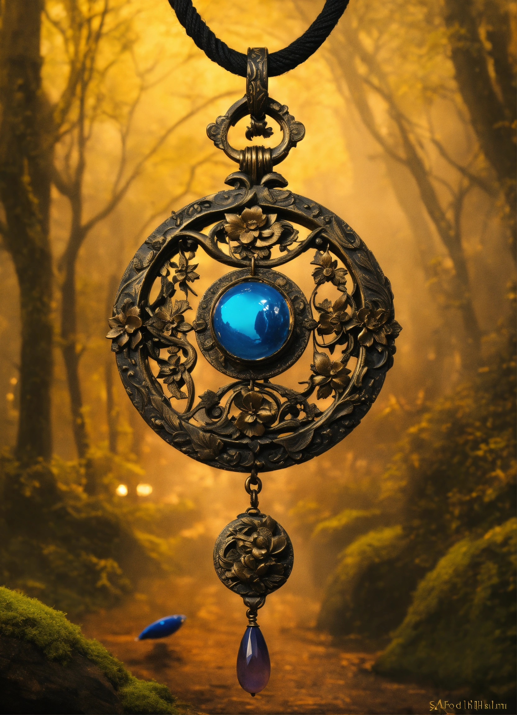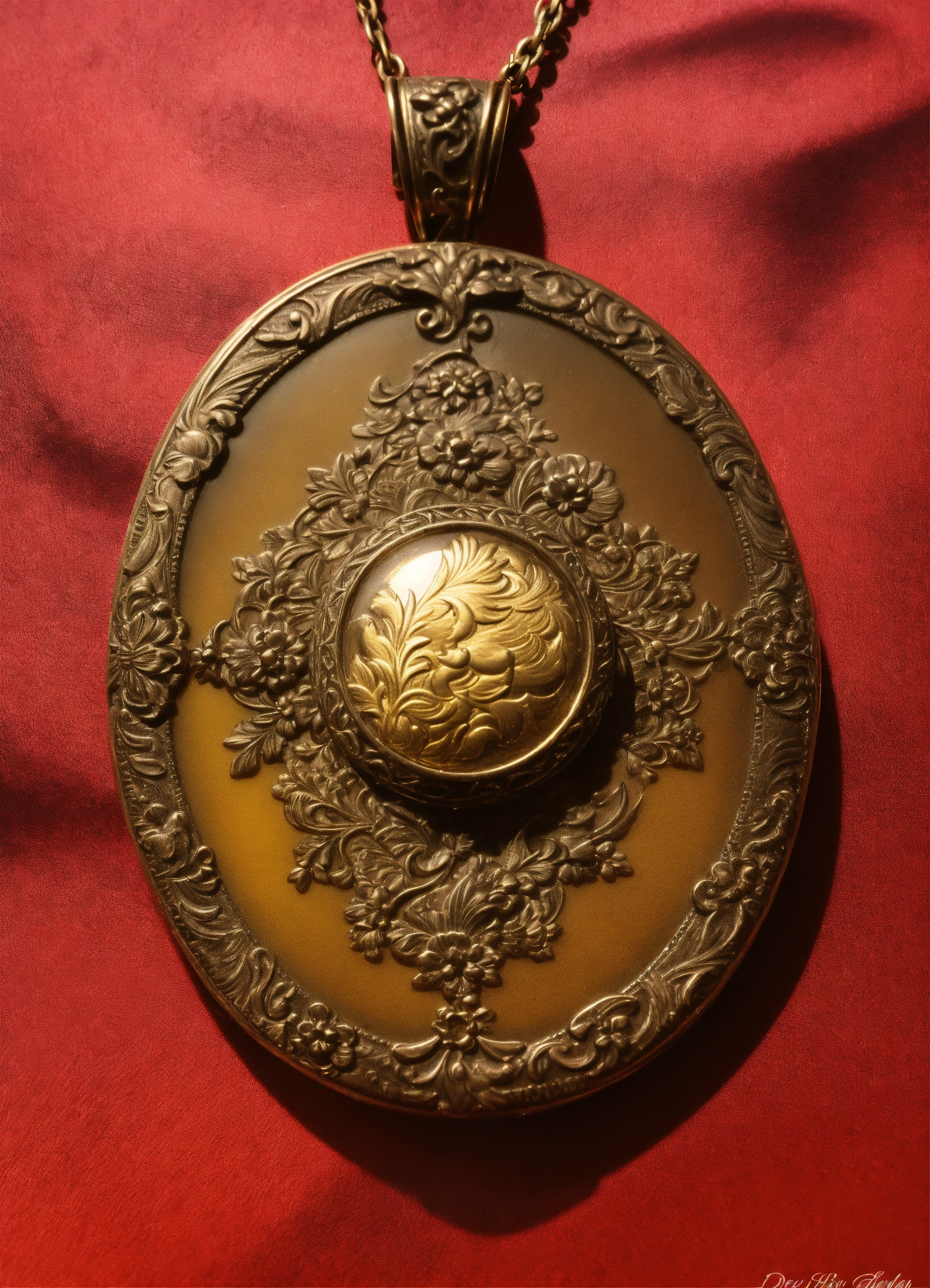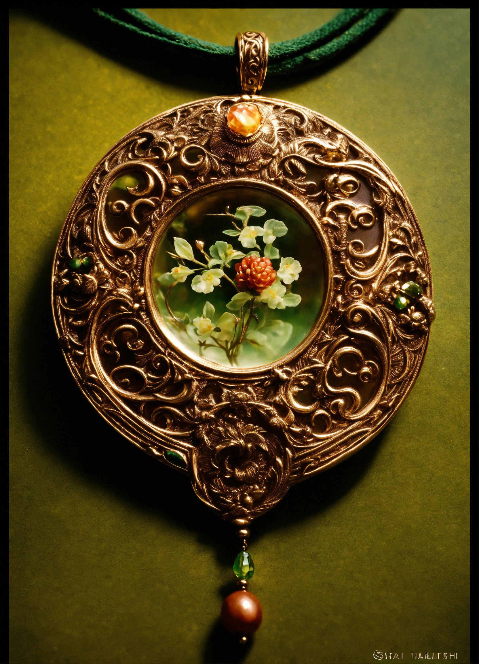Meiji period pendant, ford hallam style, material shibuichi, detailed, deviant art, surreal art, concept art, matte, sharp focus