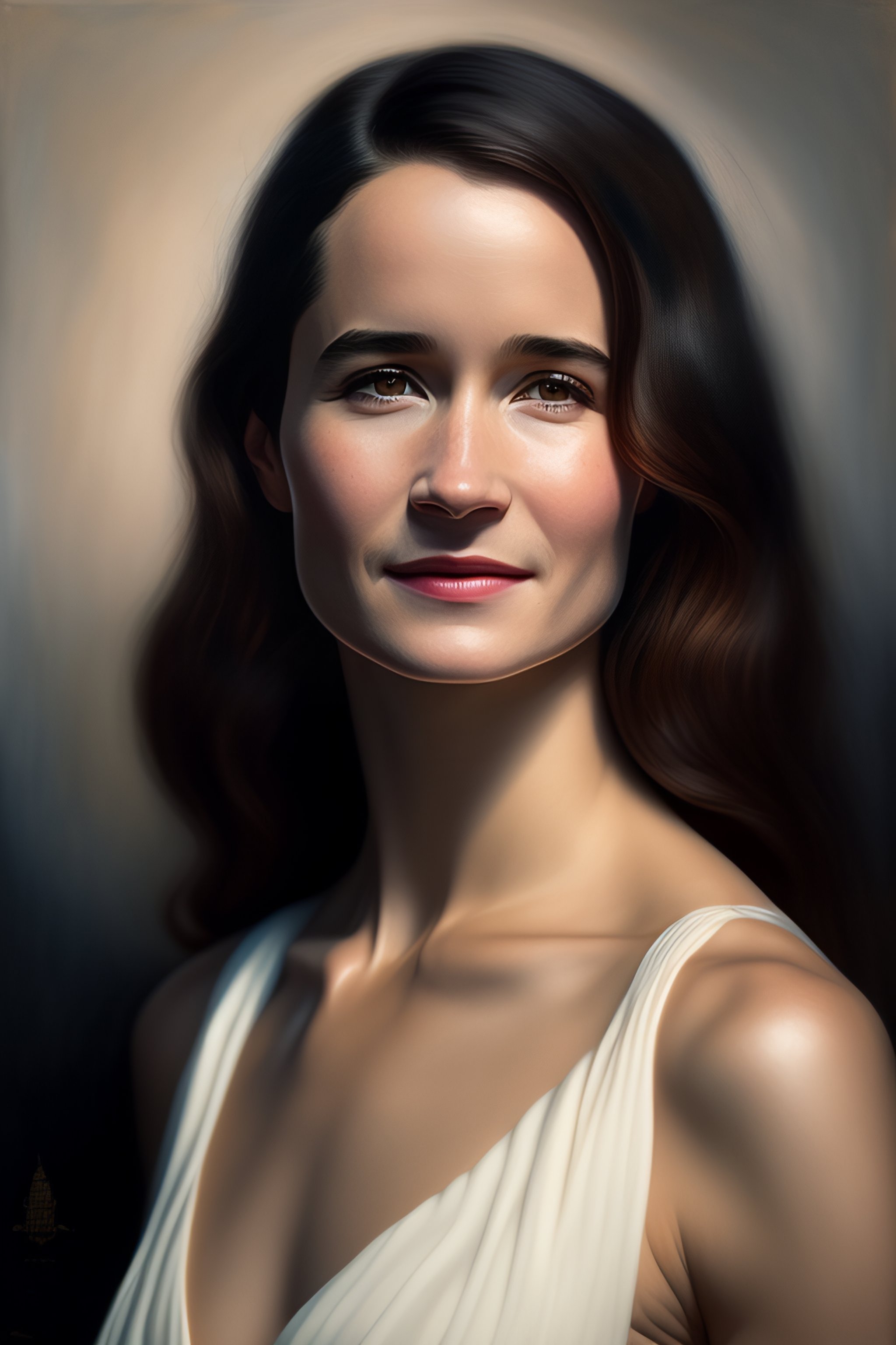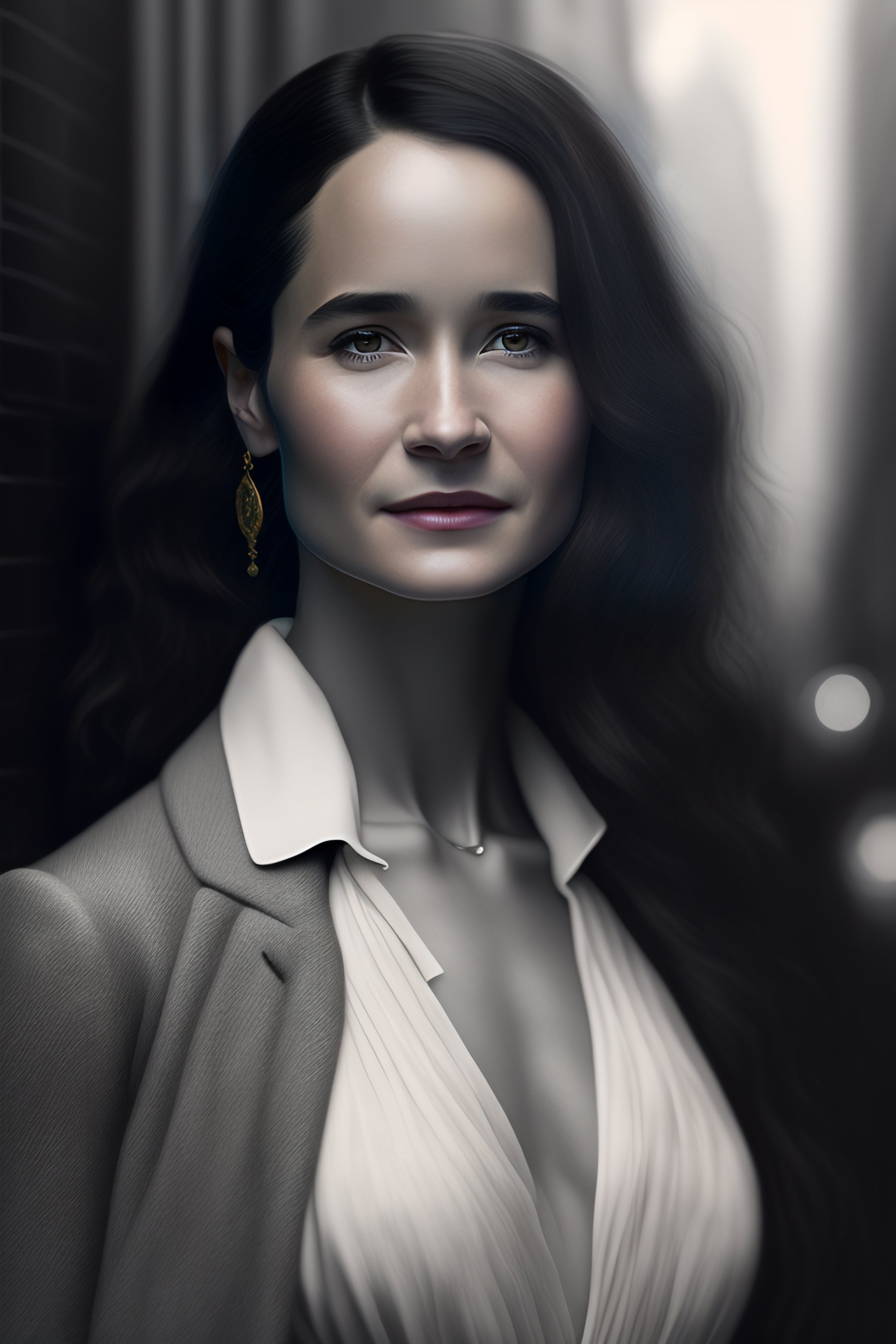 Katherine waterston as tina goldstein from "fantastic beasts: the crimes of grindelwald", portrait, by paul cadden. traditional pencil masterpiece on canvas. dry media. private collection. retouched face, restored