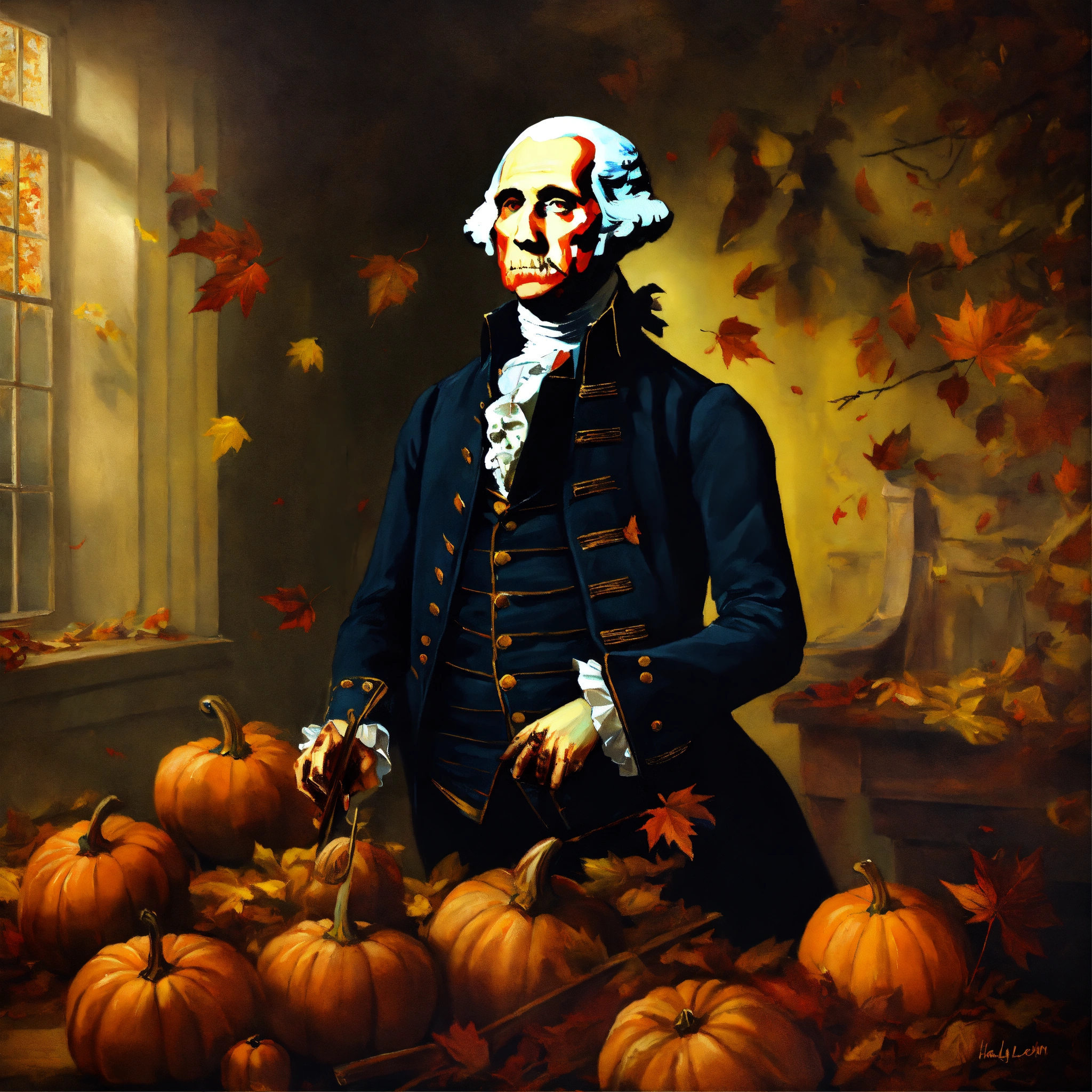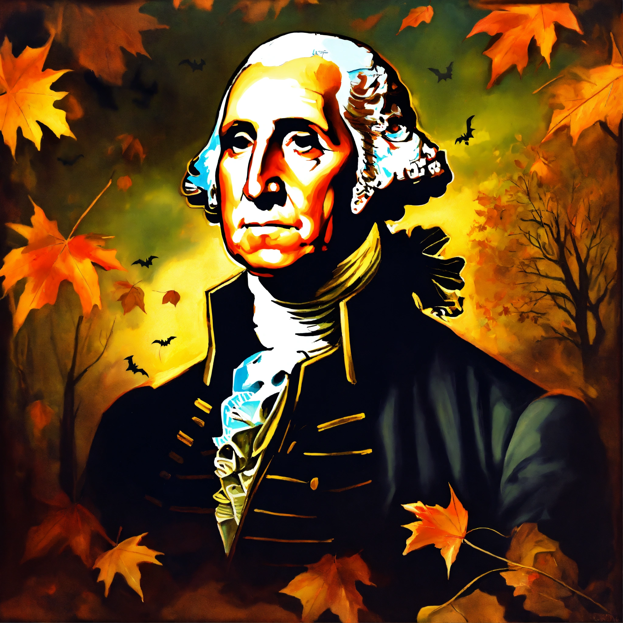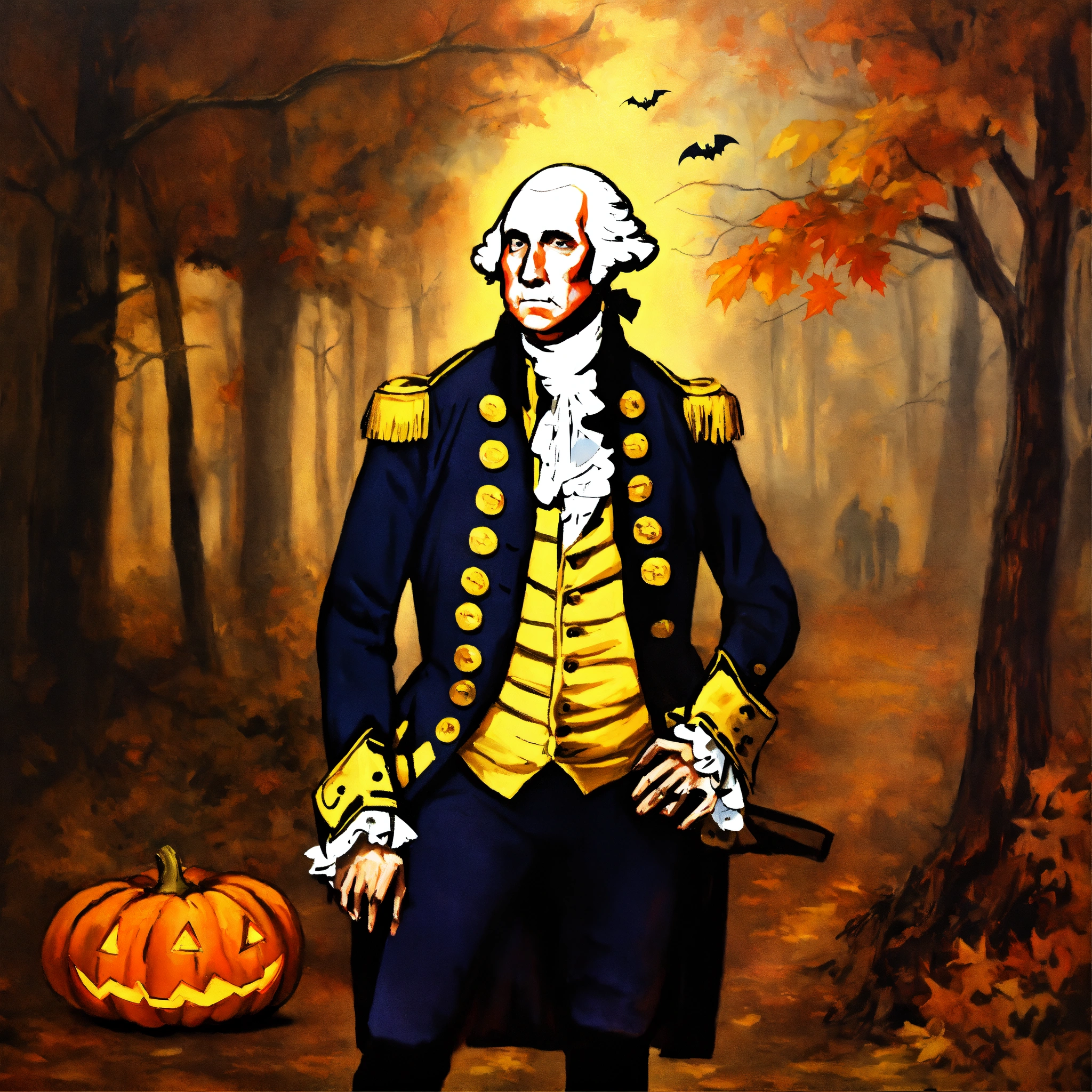 A painting of zombie george washington. halloween, spooky, scary, haunted, dark room, skeleton autumn, eerie