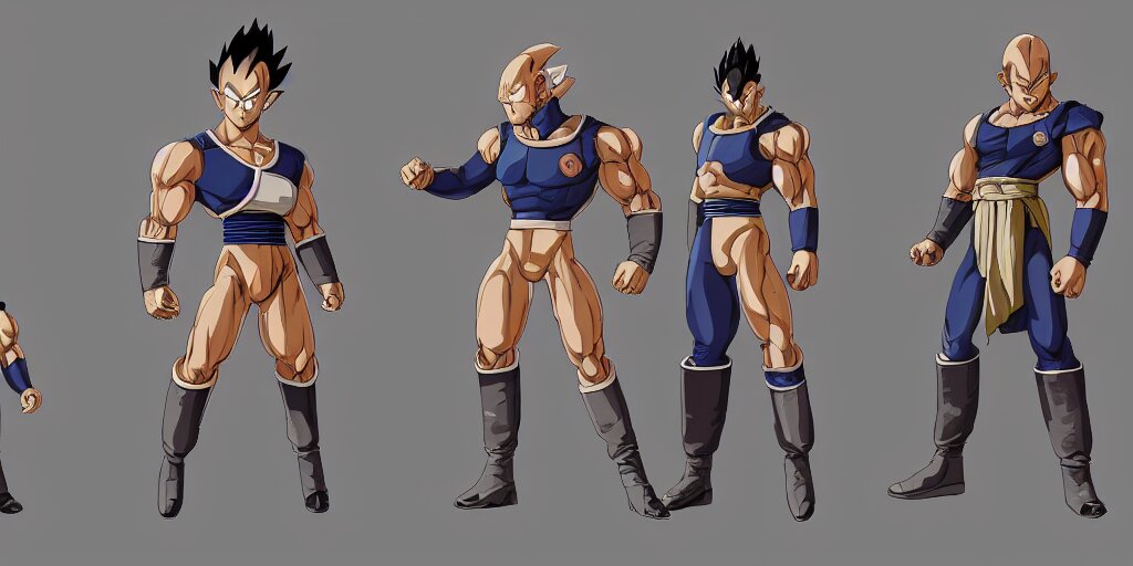 Vegeta, character sheet, concept design, contrast, kim jung gi, greg rutkowski, zabrocki, karlkka, jayison devadas, trending on artstation, 8 k, ultra wide angle, pincushion lens effect