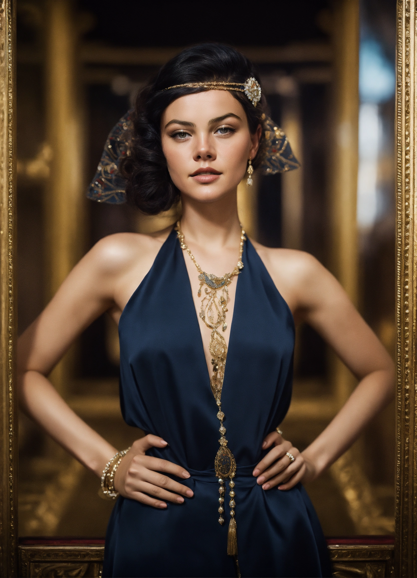 Iranian girl with lonardo dicaprio the theme of the great gatsby in the ship, innovative avant-garde art, deco fashion, fashion editorial, fashion photoshoot, elegant, luxury, clean, smooth, elegant, beautiful, highly detailed, sharp focus, studio photography, xf iq 4, 1 5 0 mp, 5 0 mm, iso 2 0 0, 1 / 1 6 0 s, adobe lightroom, rule of thirds, symmetrical balance, depth layering, polarizing filter, sense of depth, ai enhanced