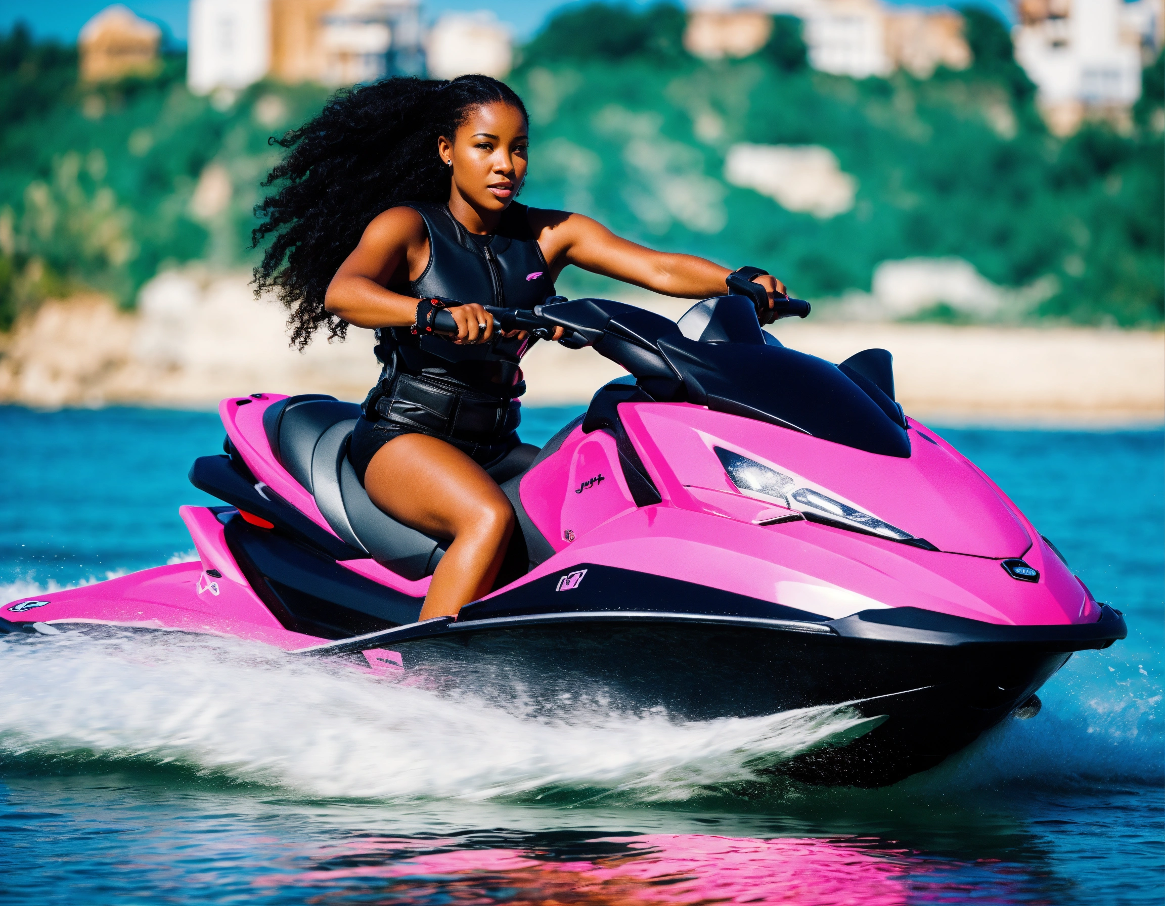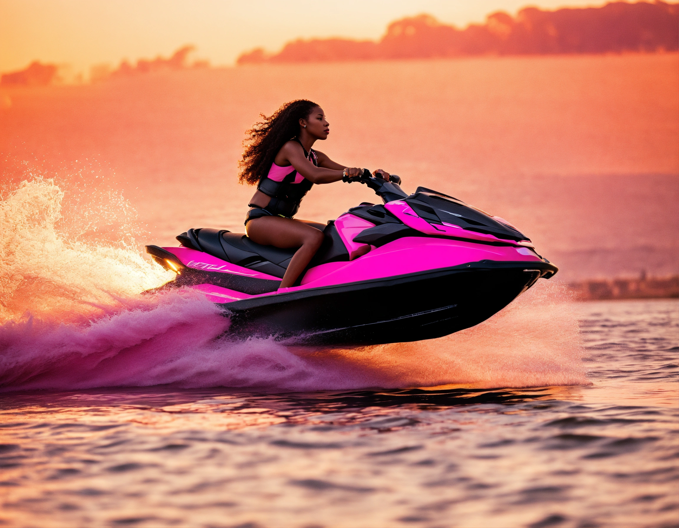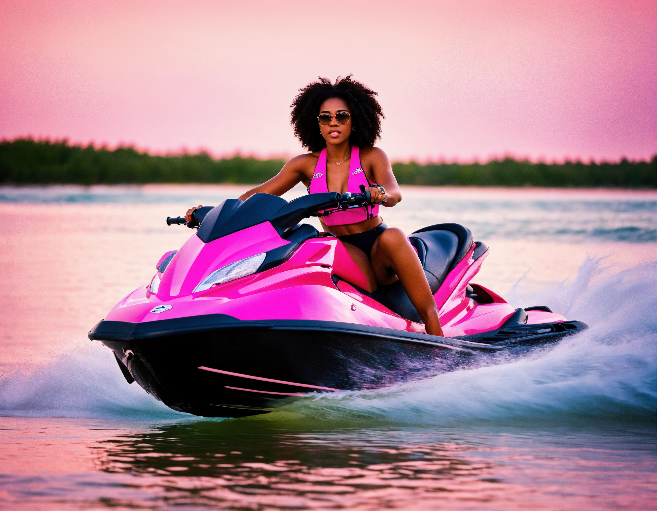 Black female on a pink jet ski