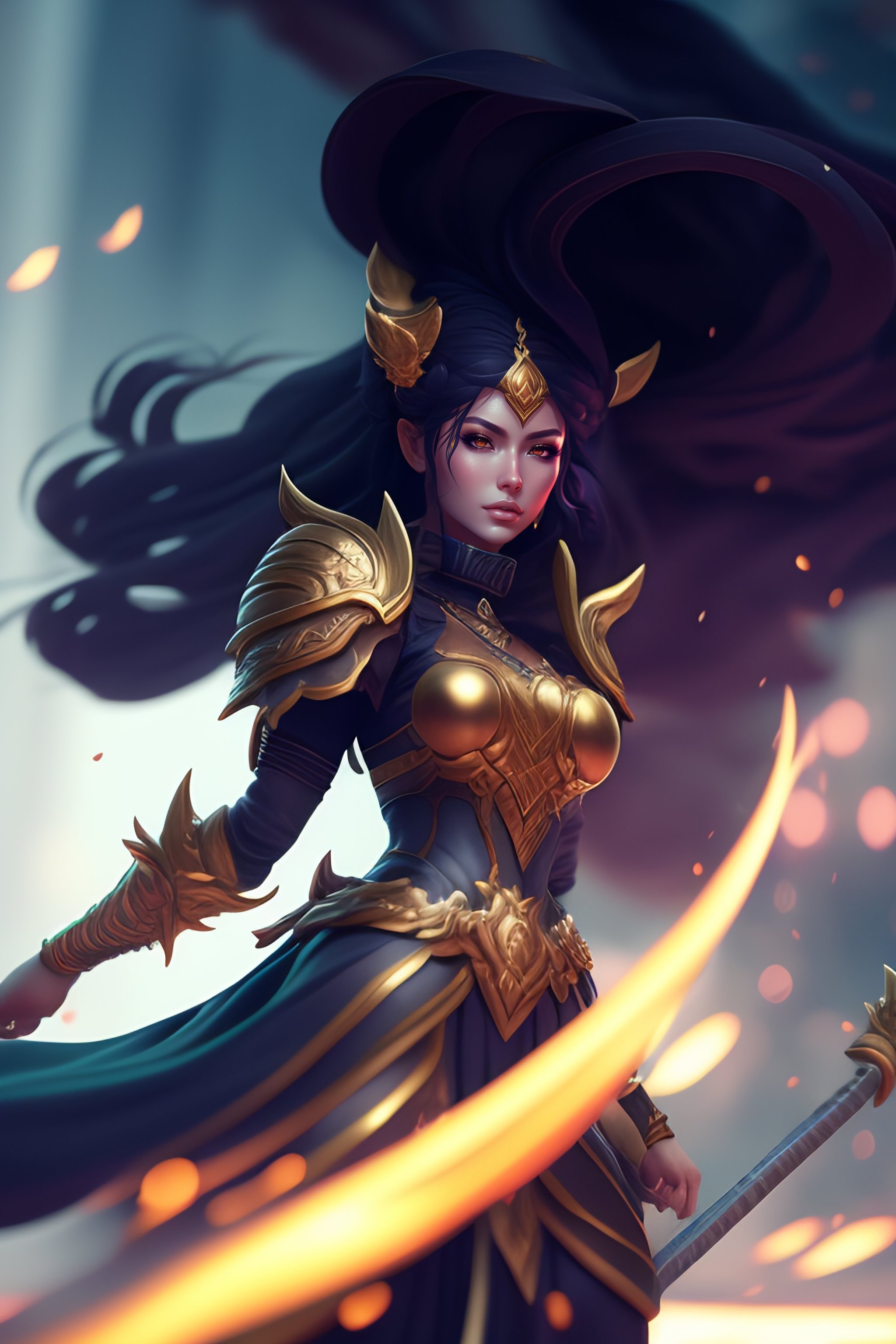 Mobile legends aurora, full body, fighting with enemies, battle scene, anime, surrealism, greg rutkowski style. detailed line art. fine details. 4k