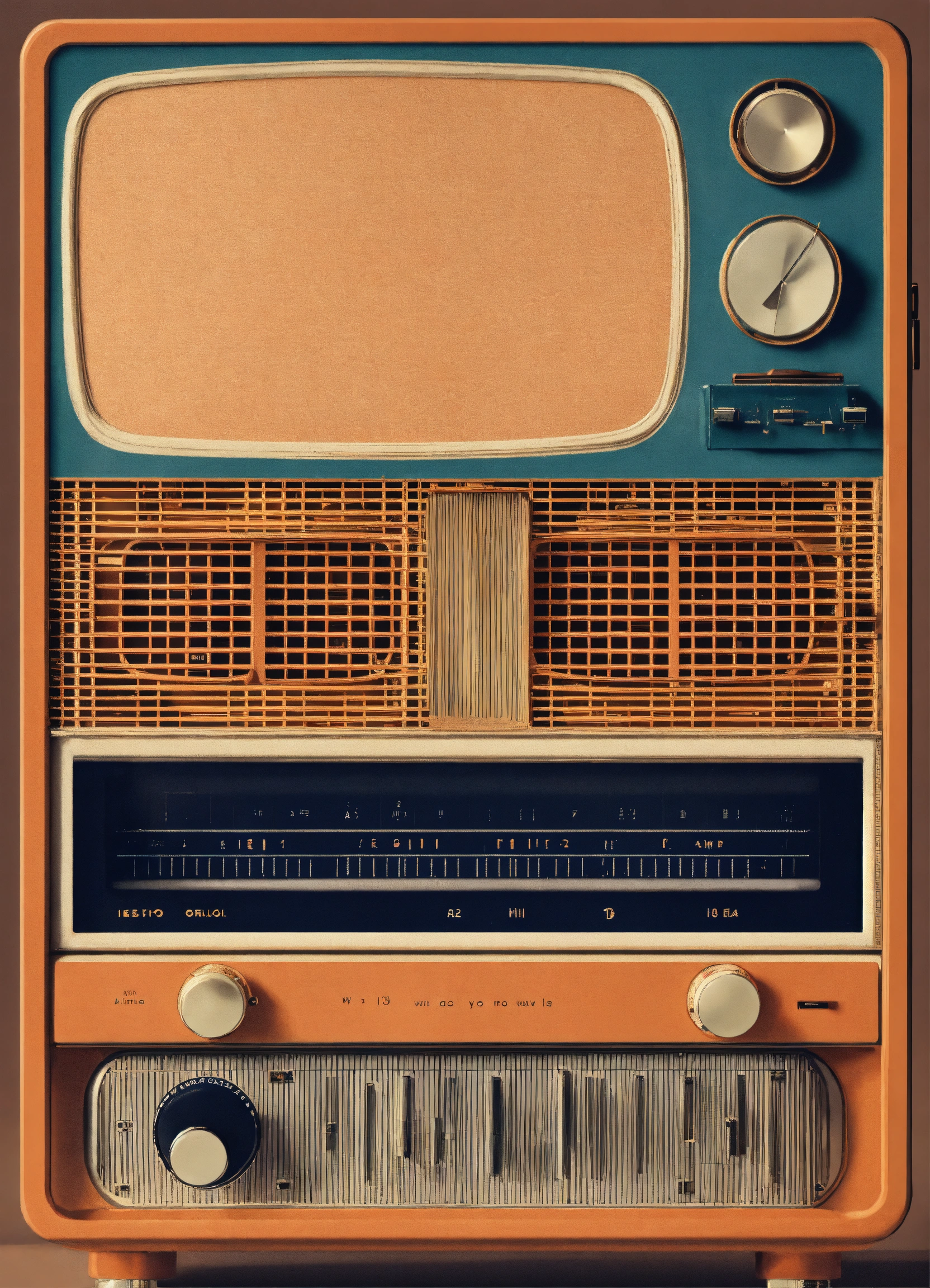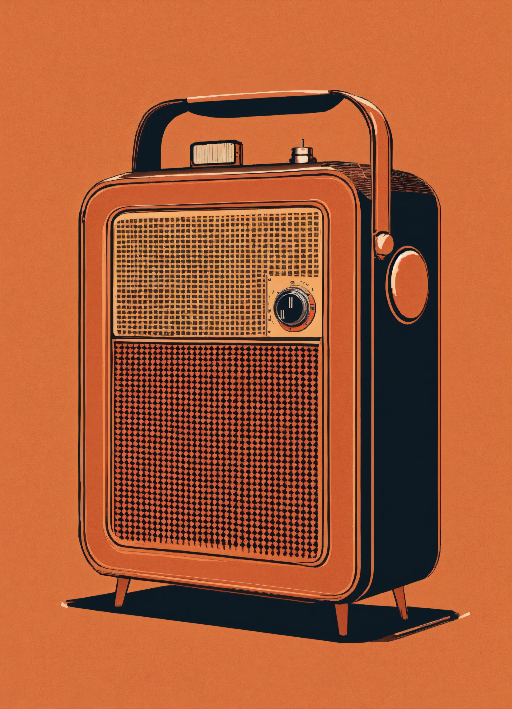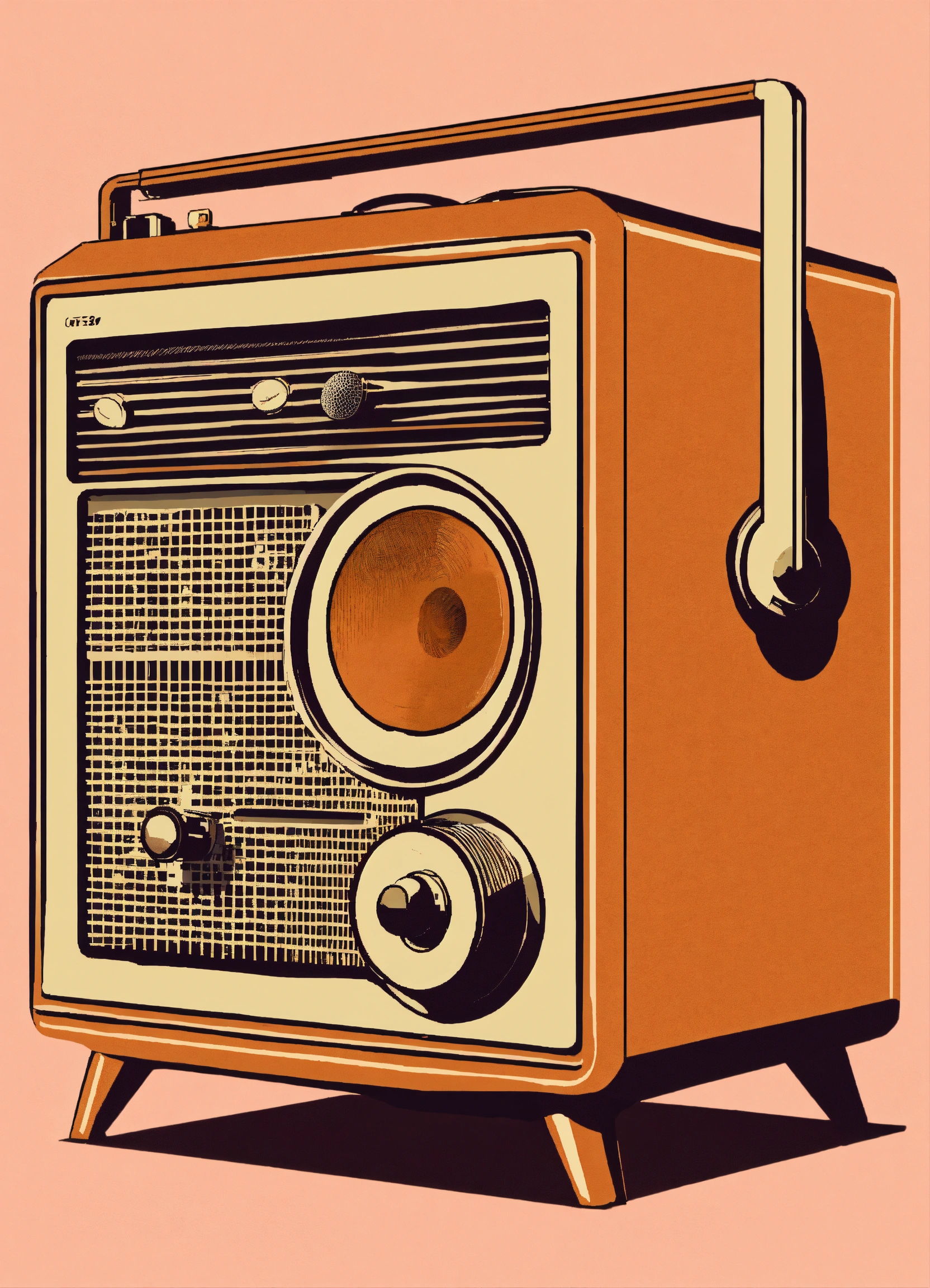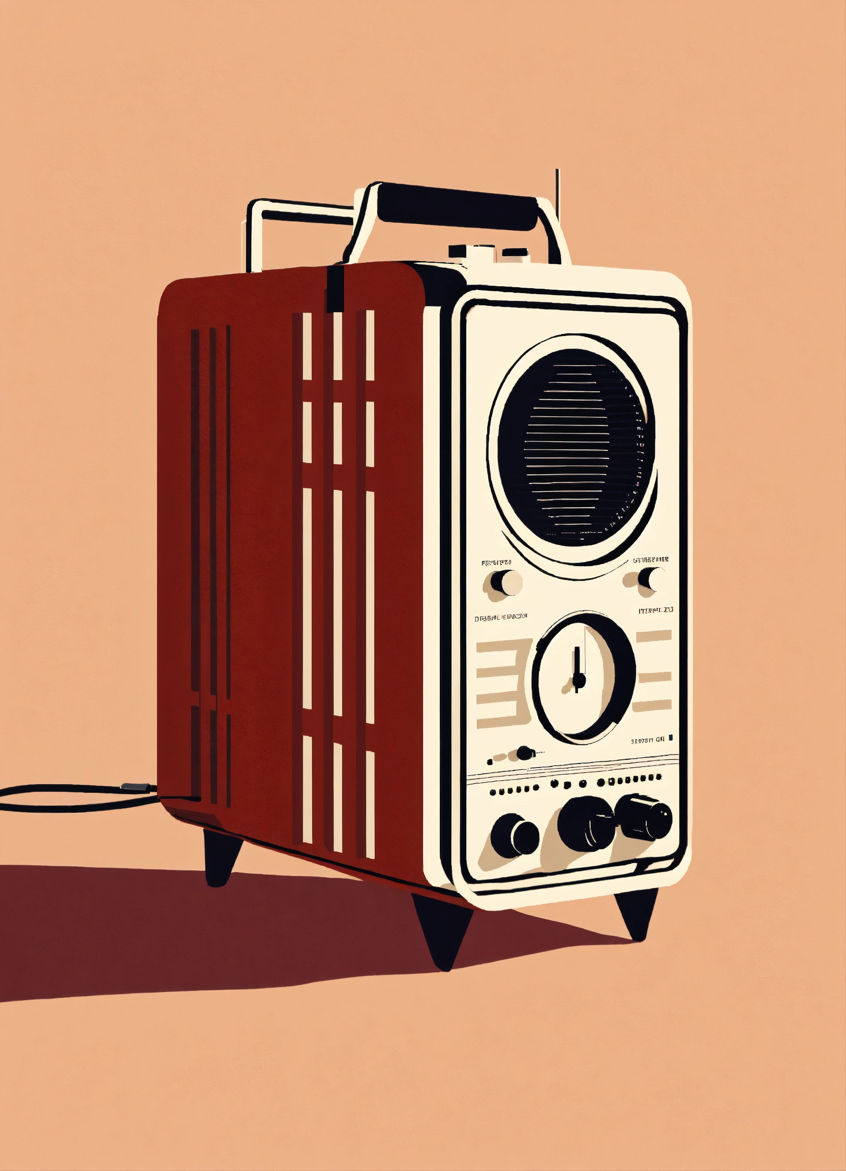 A minimalistic illustration of a vintage radio, capturing its essence with clean lines and simplified forms, perfect for printing on art prints and tote bags. --ar 23