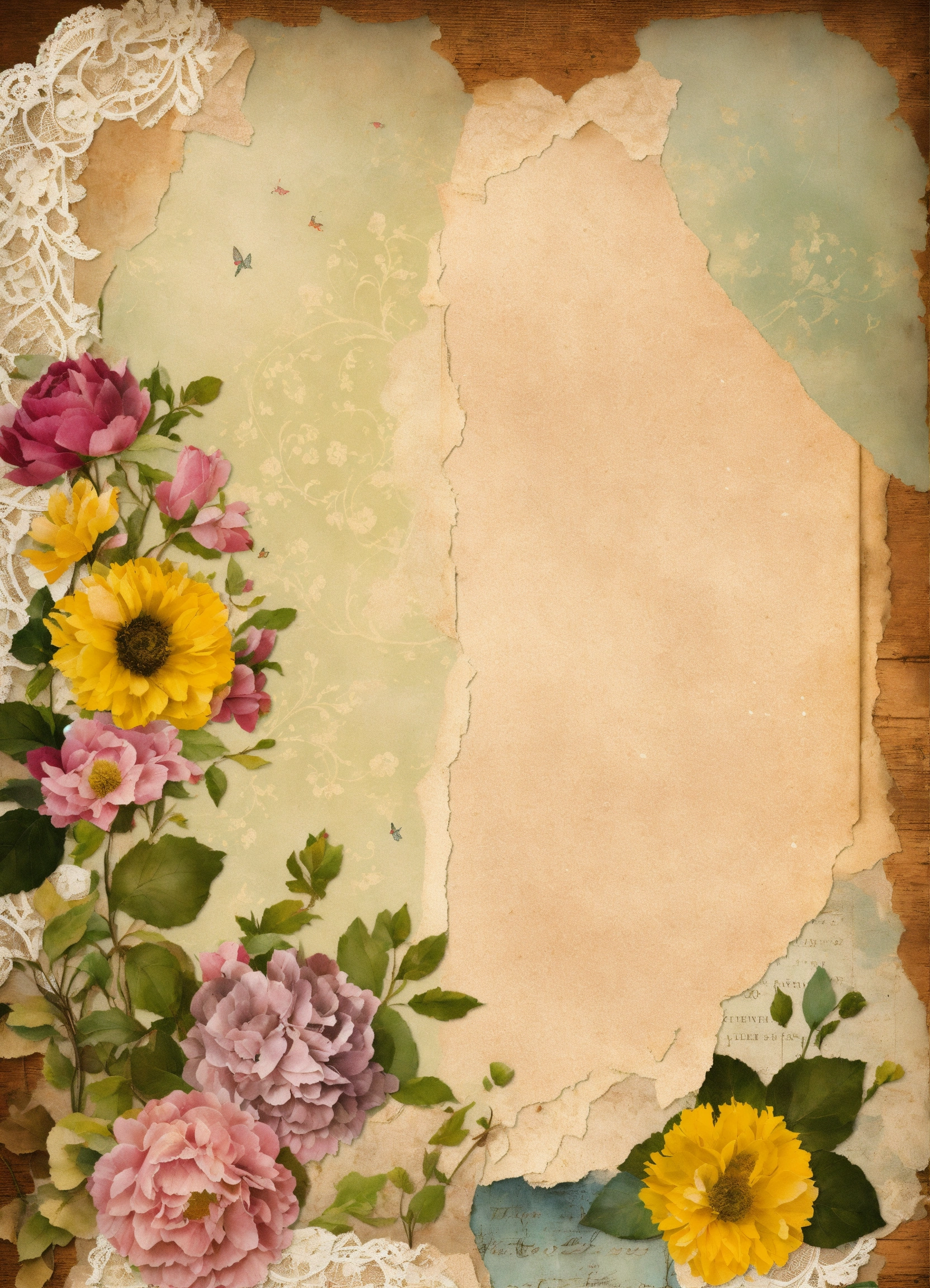 "enter the world of vintage elegance with 'torn paper & lace junk journal half papers, ' where nostalgia meets creativity. blank pages. these printable journal collage pages are adorned with torn paper and delicate lace, evoking a sense of timeless beauty. use them to craft your own journal pages, collages, or creative projects. explore the juxtaposition of textures and styles as you blend the rustic charm of torn paper with the grace of lace. let these printable pages become your canvas for artistic expression, capturing the essence of vintage allure in every creation."
