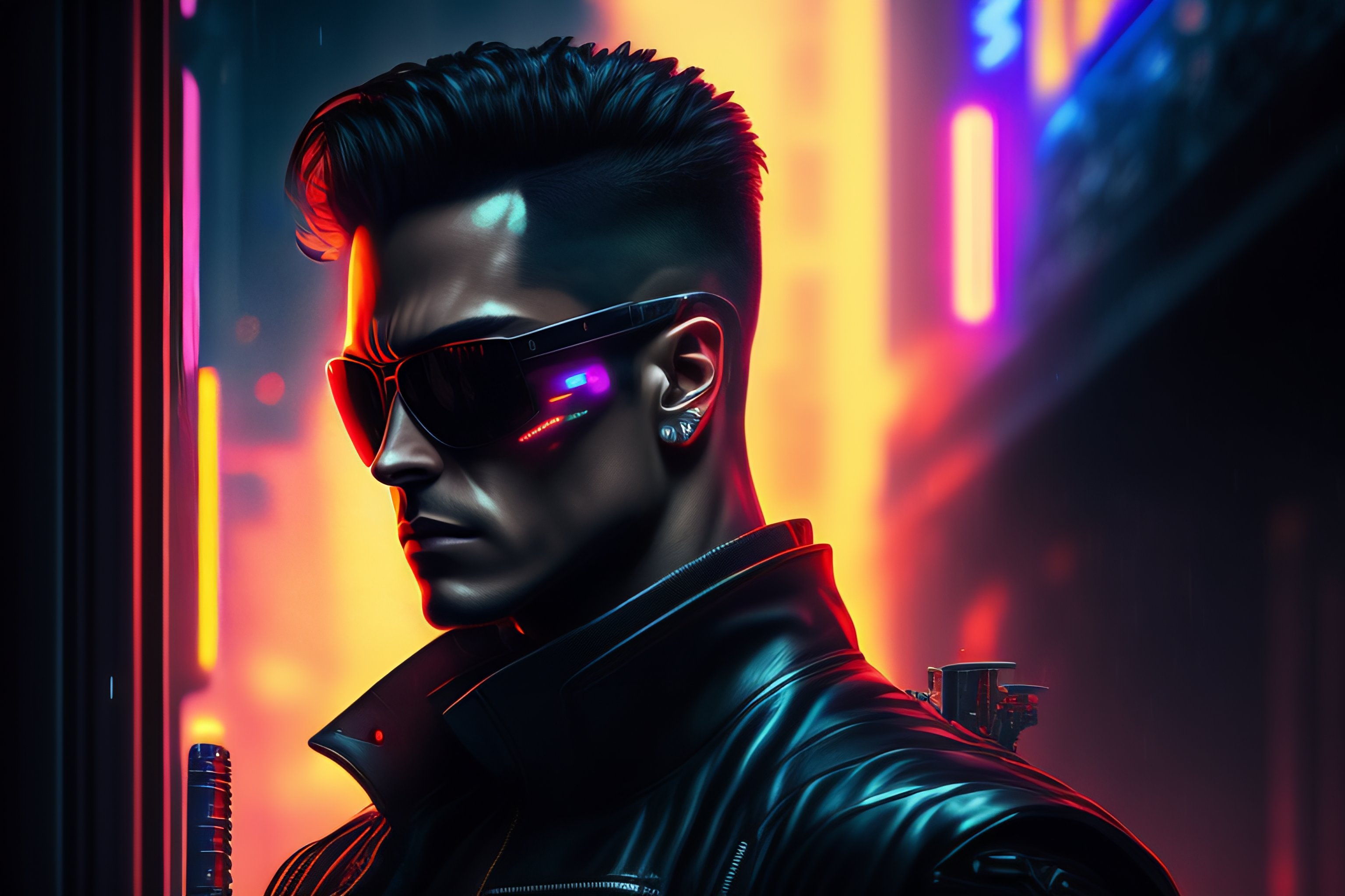 Terminator cyberpunk futurist dark style