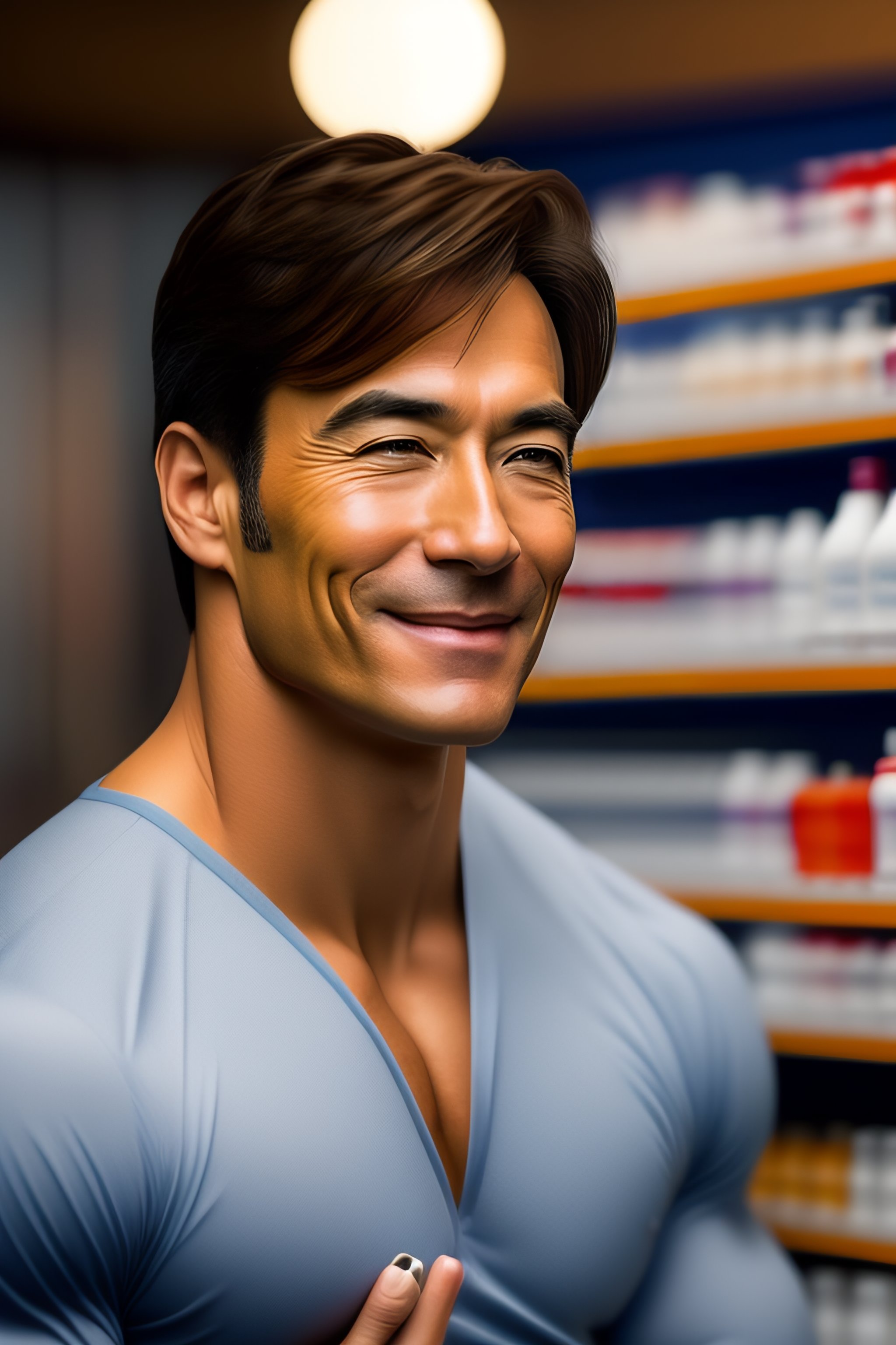 Forty-year-old pharmacist muscular short hair