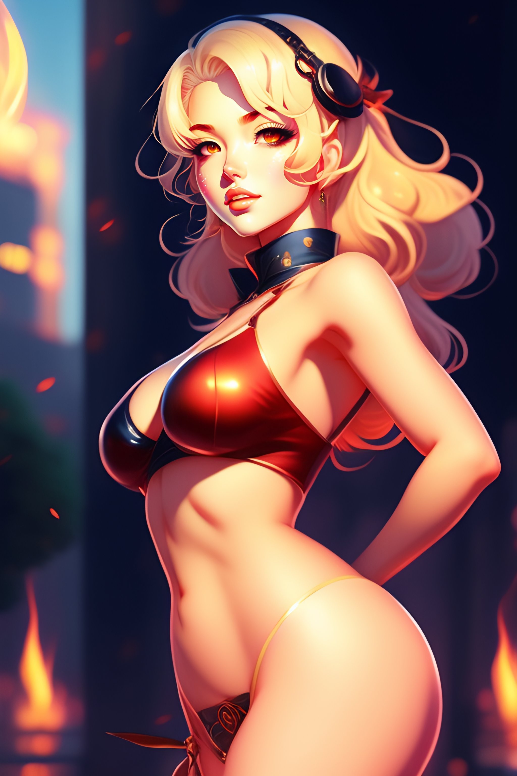 Full body, from behind under, anime club girl vanilla, marilyn monroe style, doe eyes, fire in the background, by shinkai makoto studio ghibli studio key hideaki anno sakimichan stanley artgerm lau rossdraws james jean marc simonetti elegant highly detailed digital painting artstation pixiv