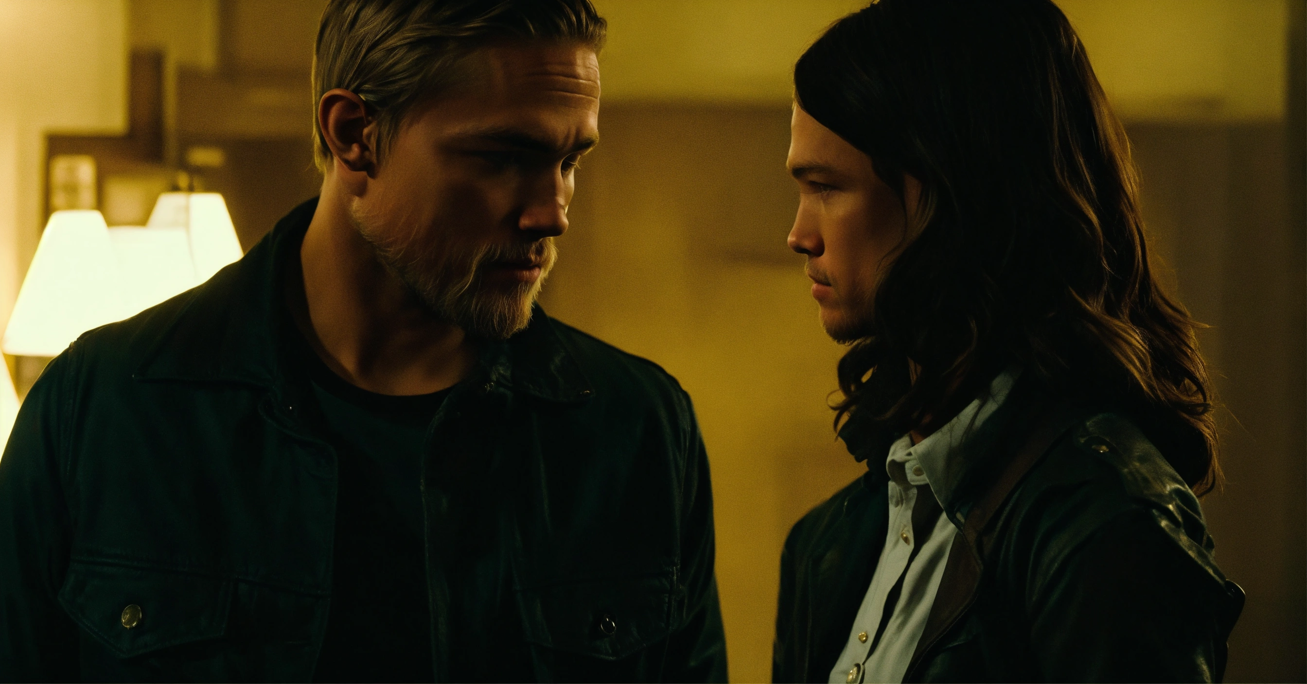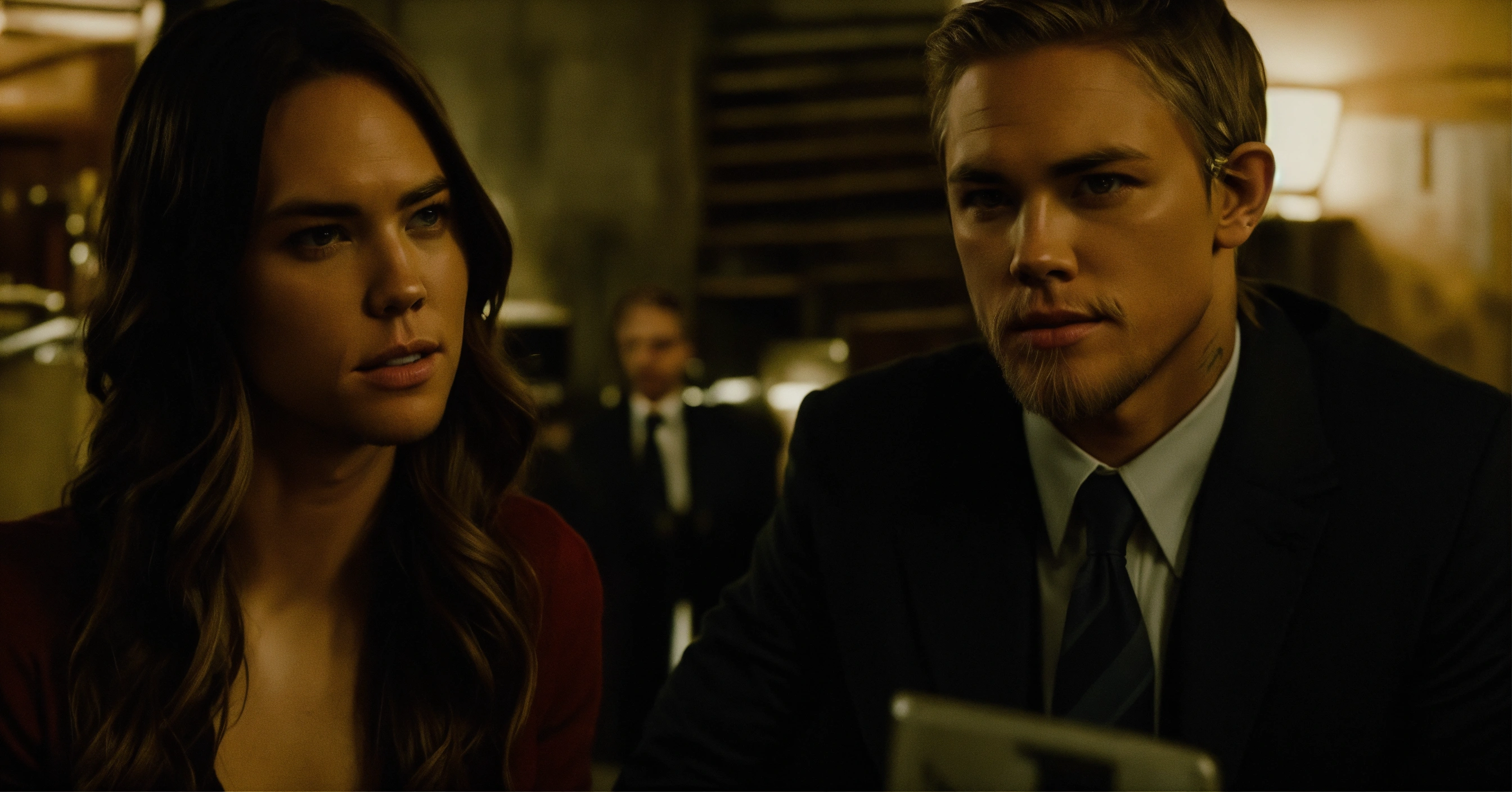 Beautiful odette annable couple together with charlie hunnam fbi agent, crime style. serial killer hunt, cinematic, night chicago, dangerous situation, suspense, cinematic