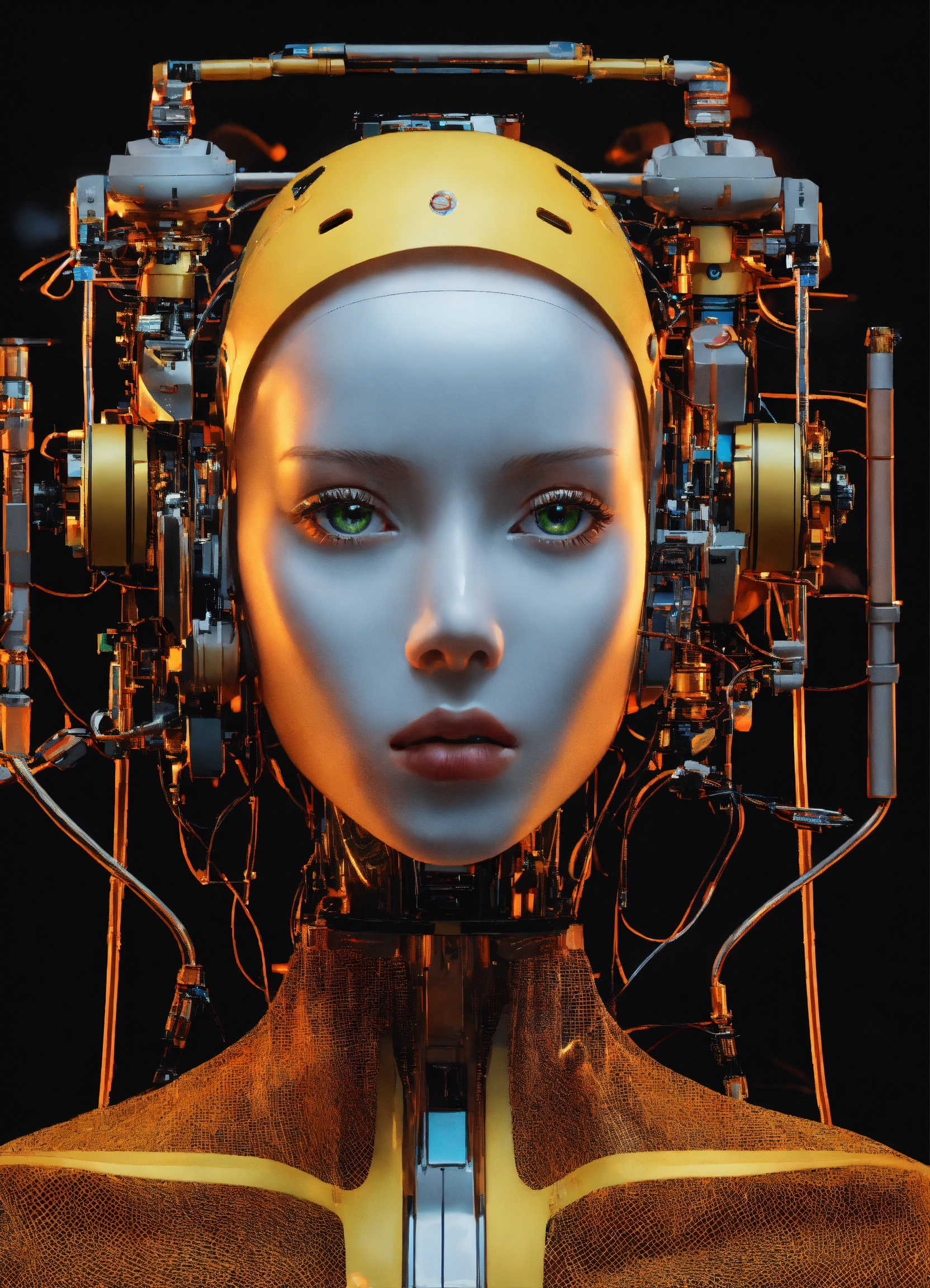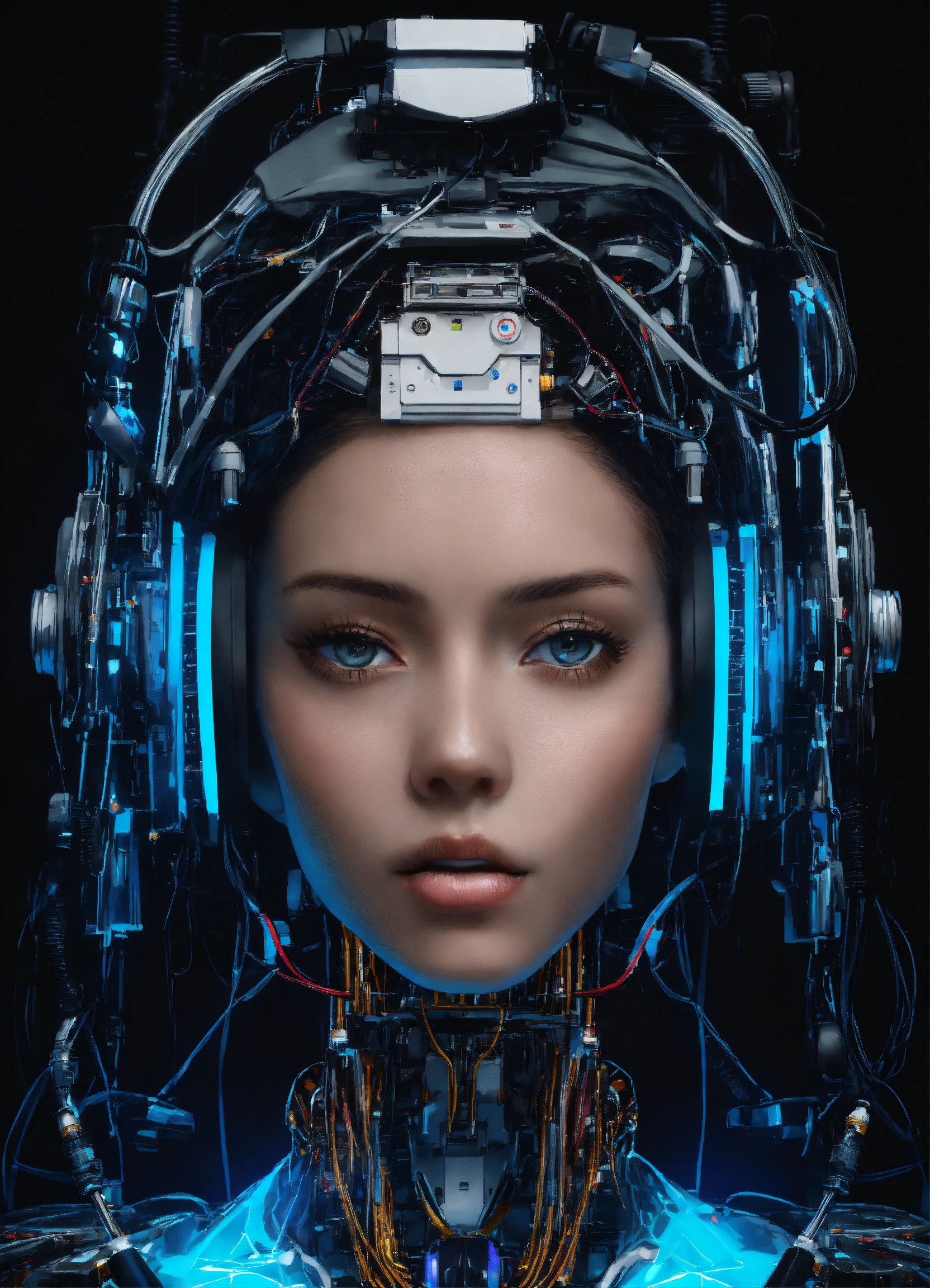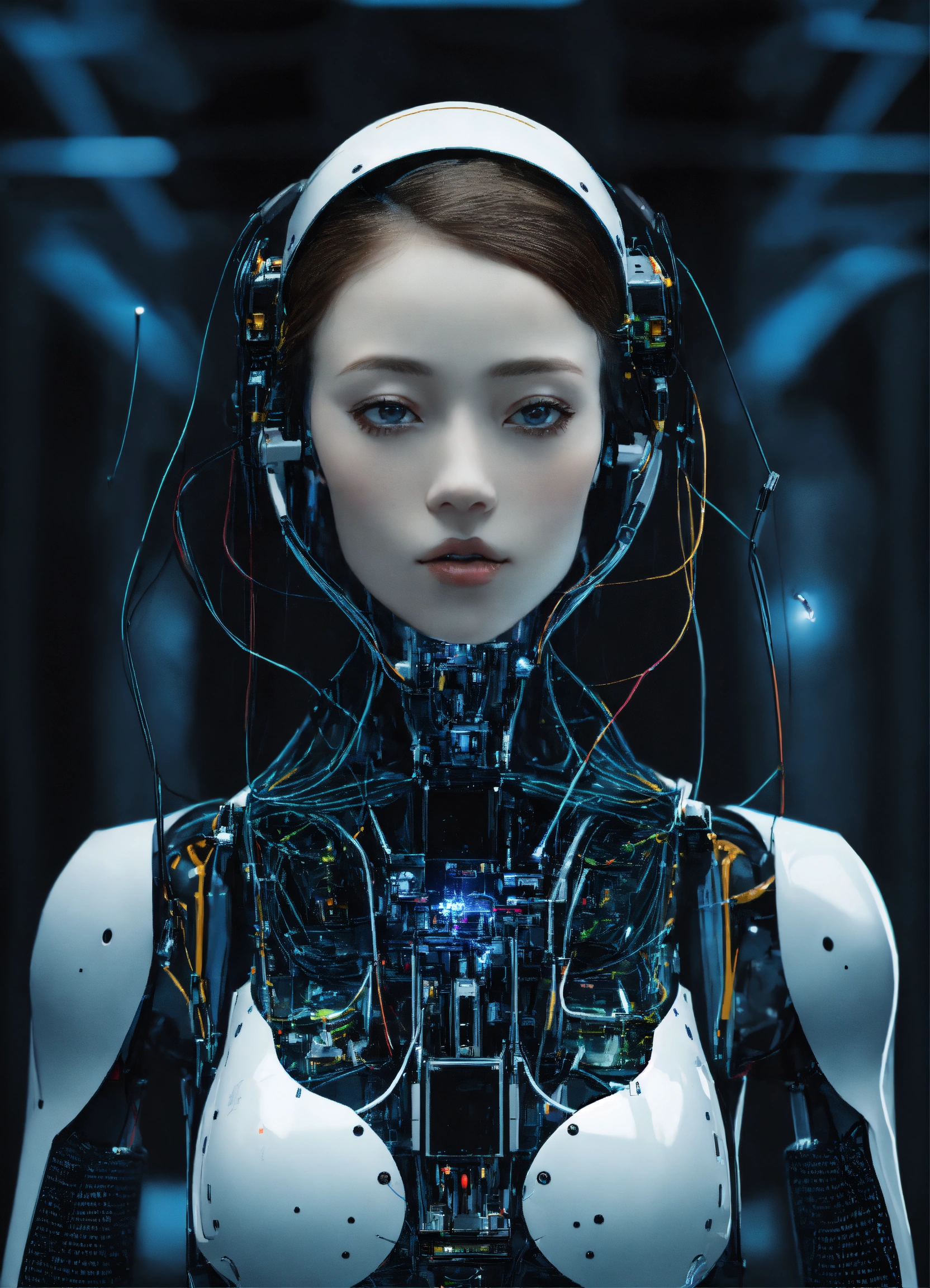 A modest scientist ai robot women veil expression more with a black background