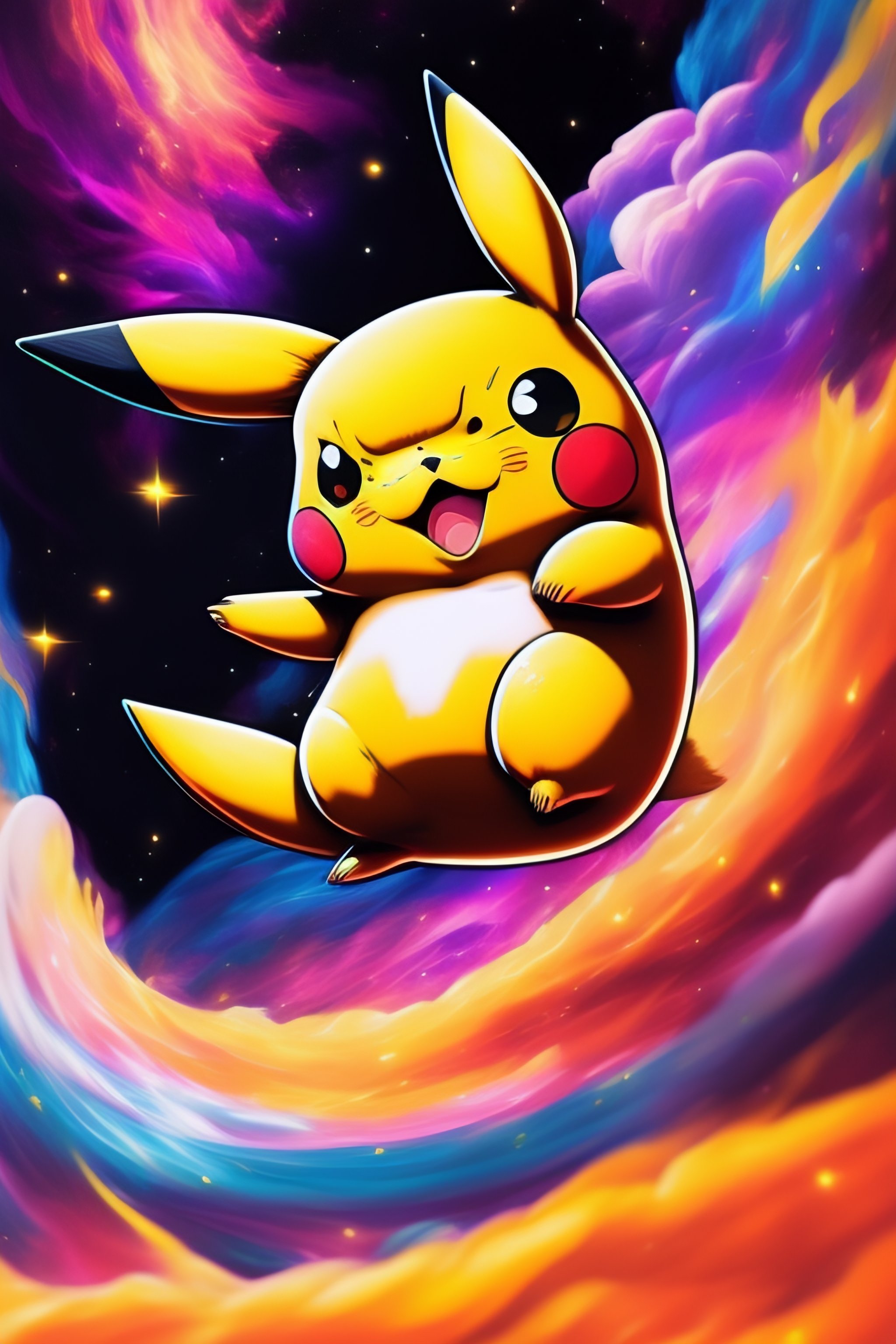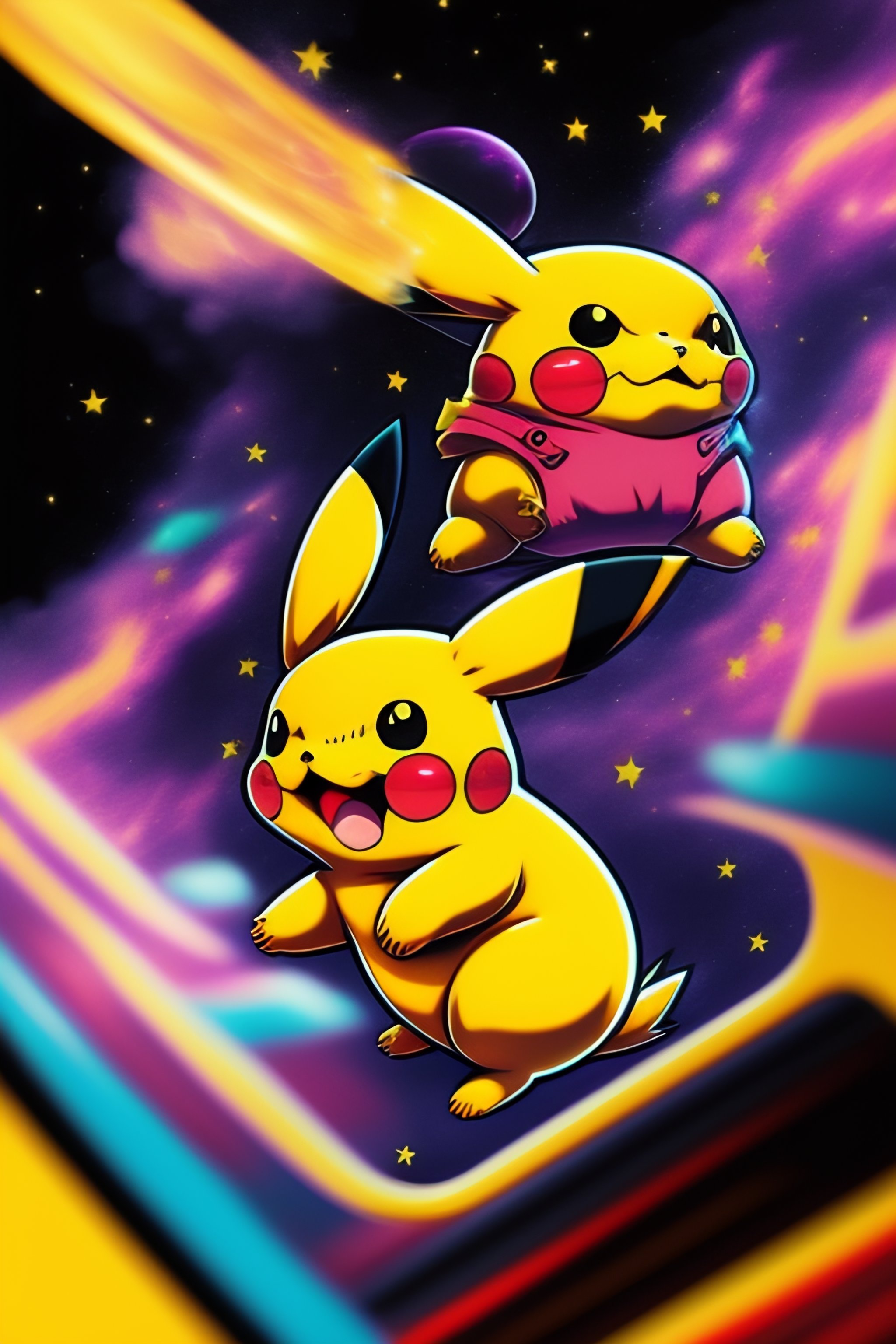 Pikachu doing thunderbolt in the style of 90's vintage anime, surrealism, akira style. detailed line art. fine details. inside an exploding nebula