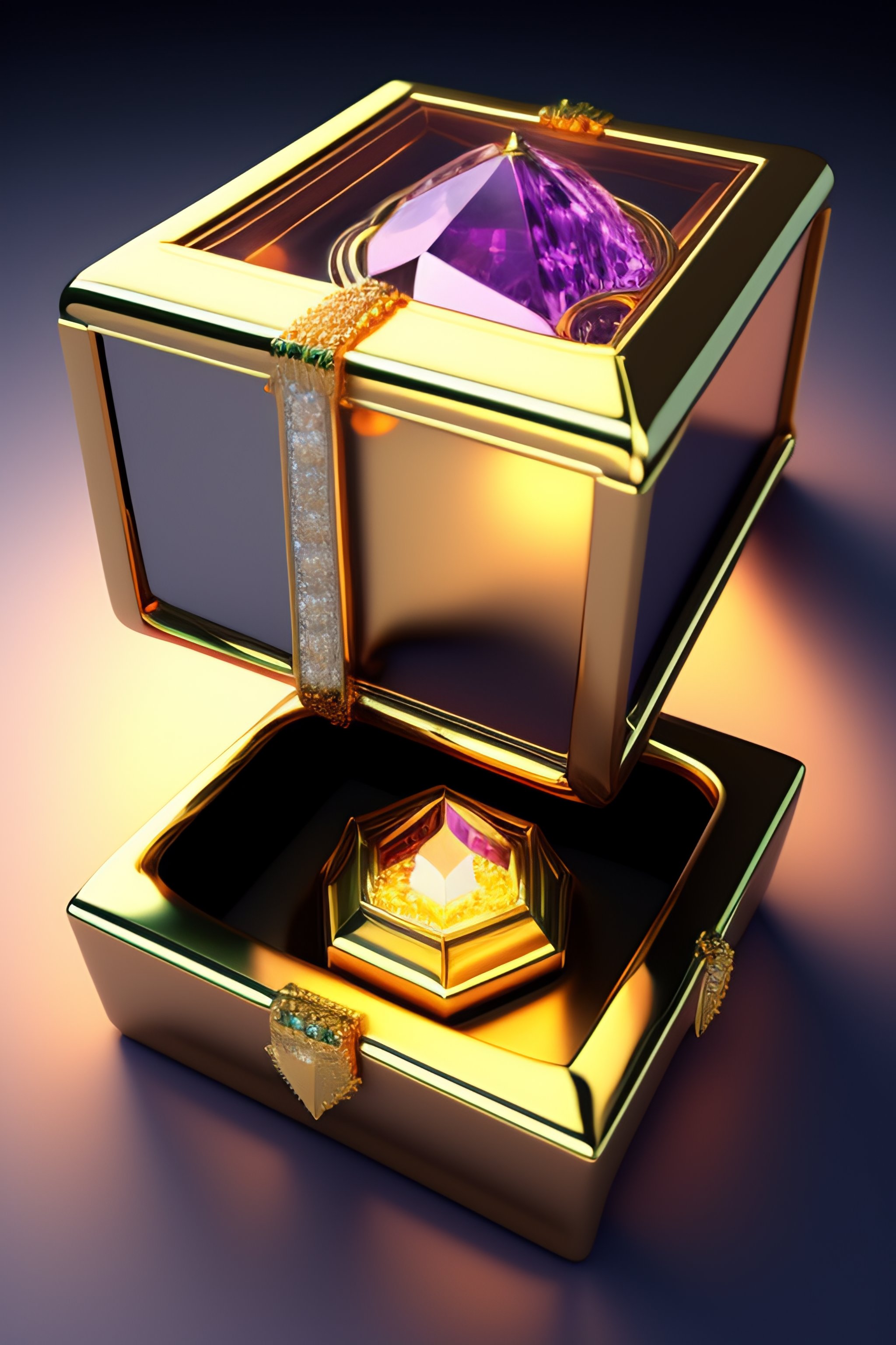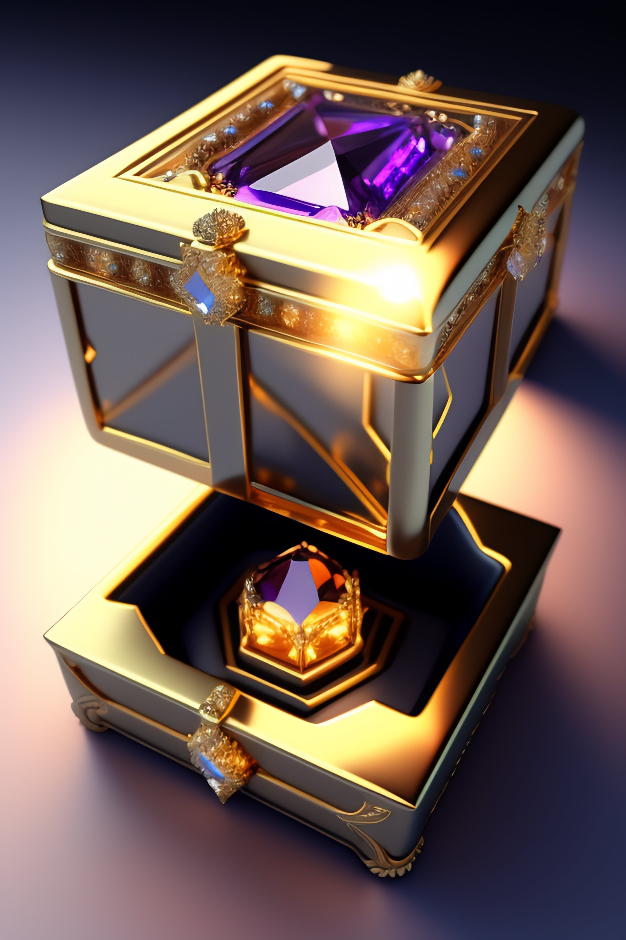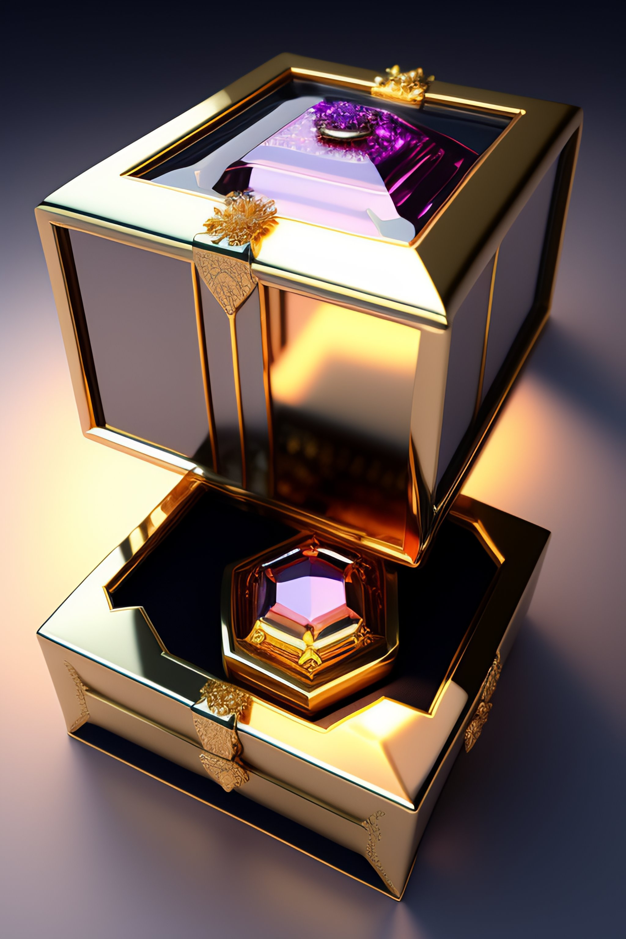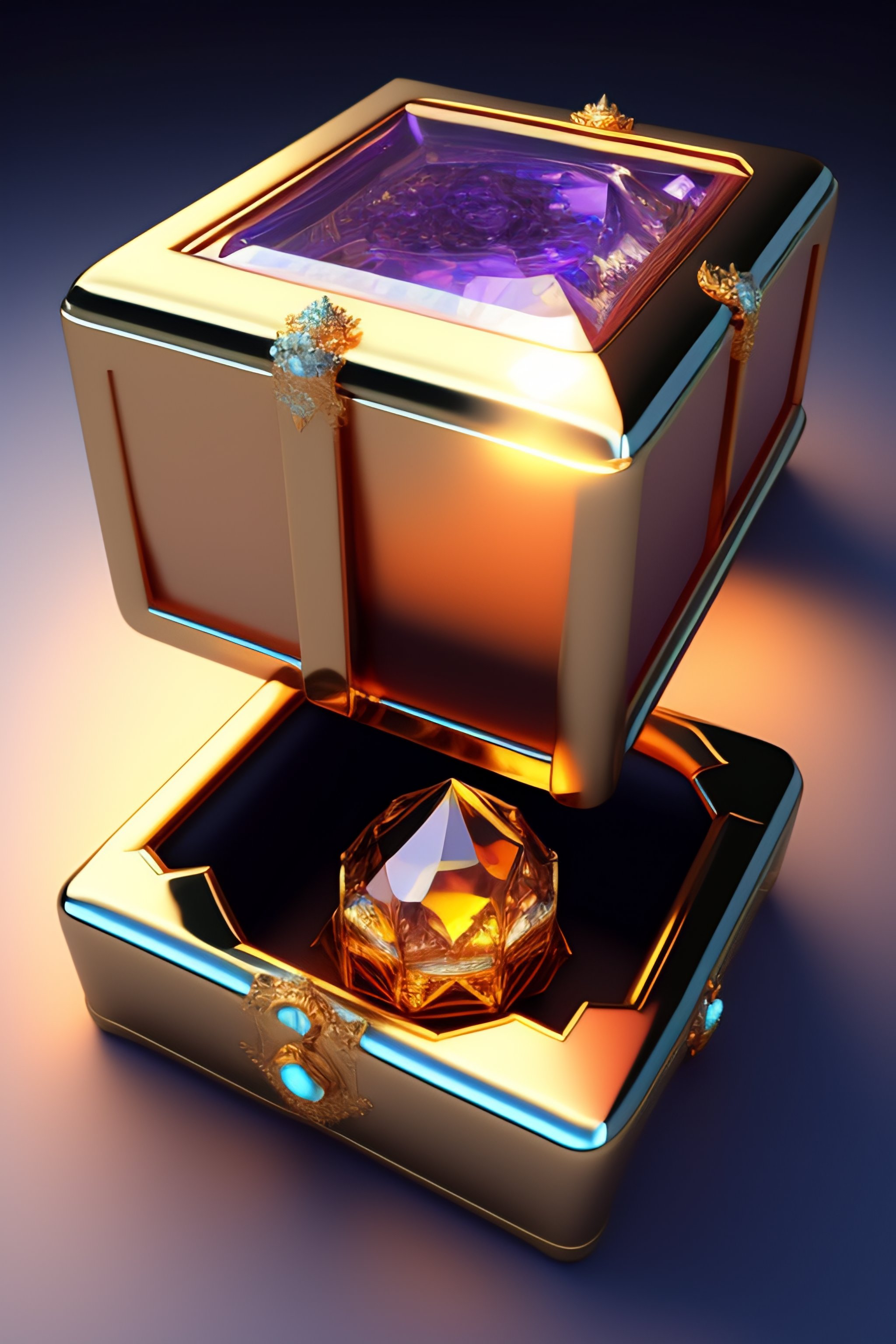 Open gift box with a glowing crystal inside, top-down view, highly detailed digital art, concept art, photorealistic trending on artstation