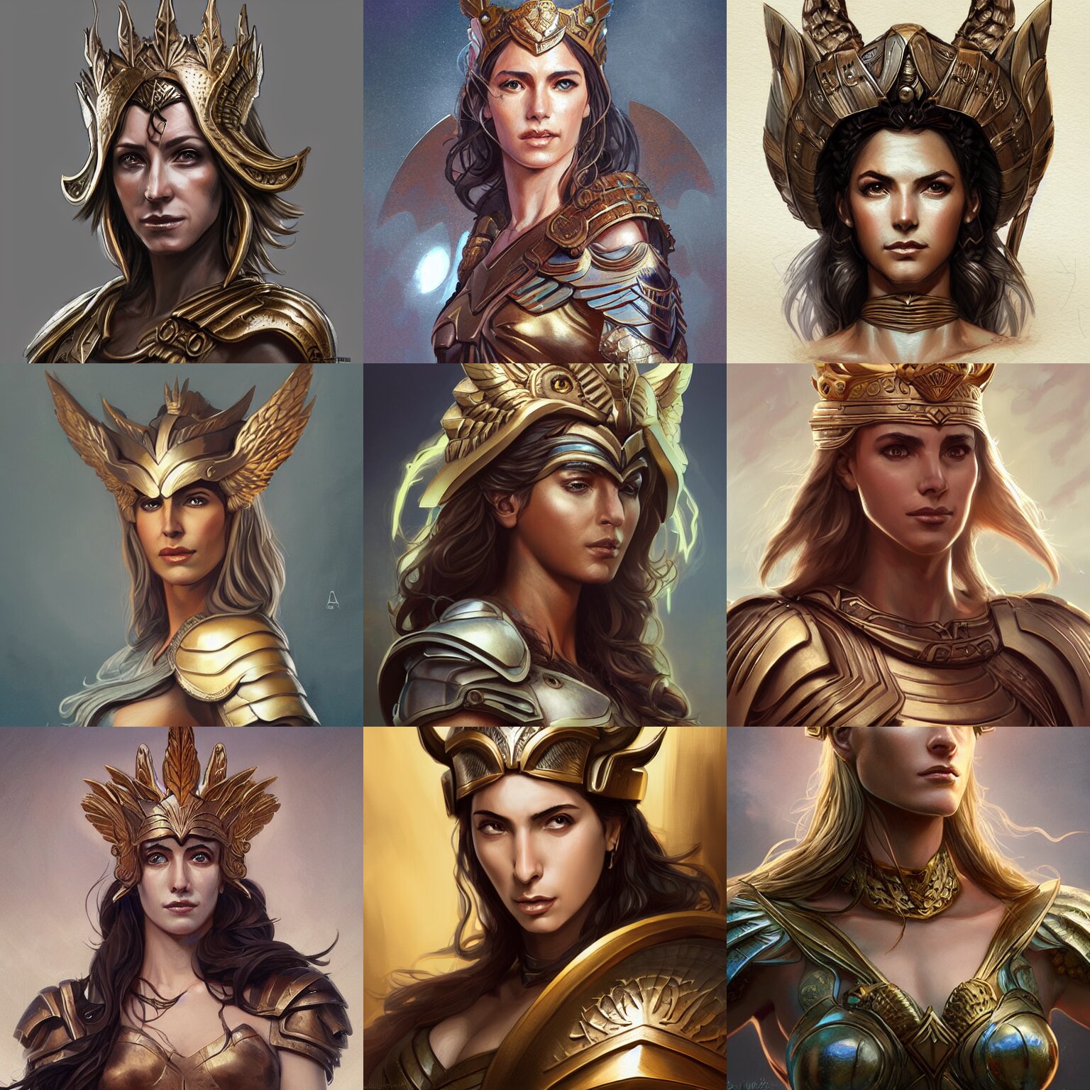 Athena, greek goddess, claudia black, art by artgerm and greg rutkowski and magali villeneuve, bronze greek armor, owl crown, d & d, fantasy, portrait, highly detailed, headshot, digital painting, trending on artstation, concept art, sharp focus, illustration