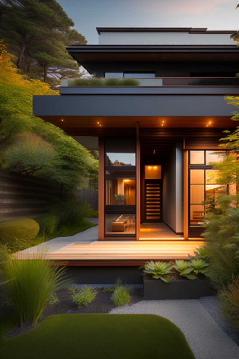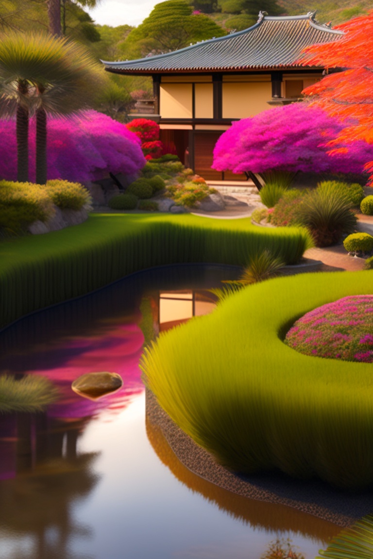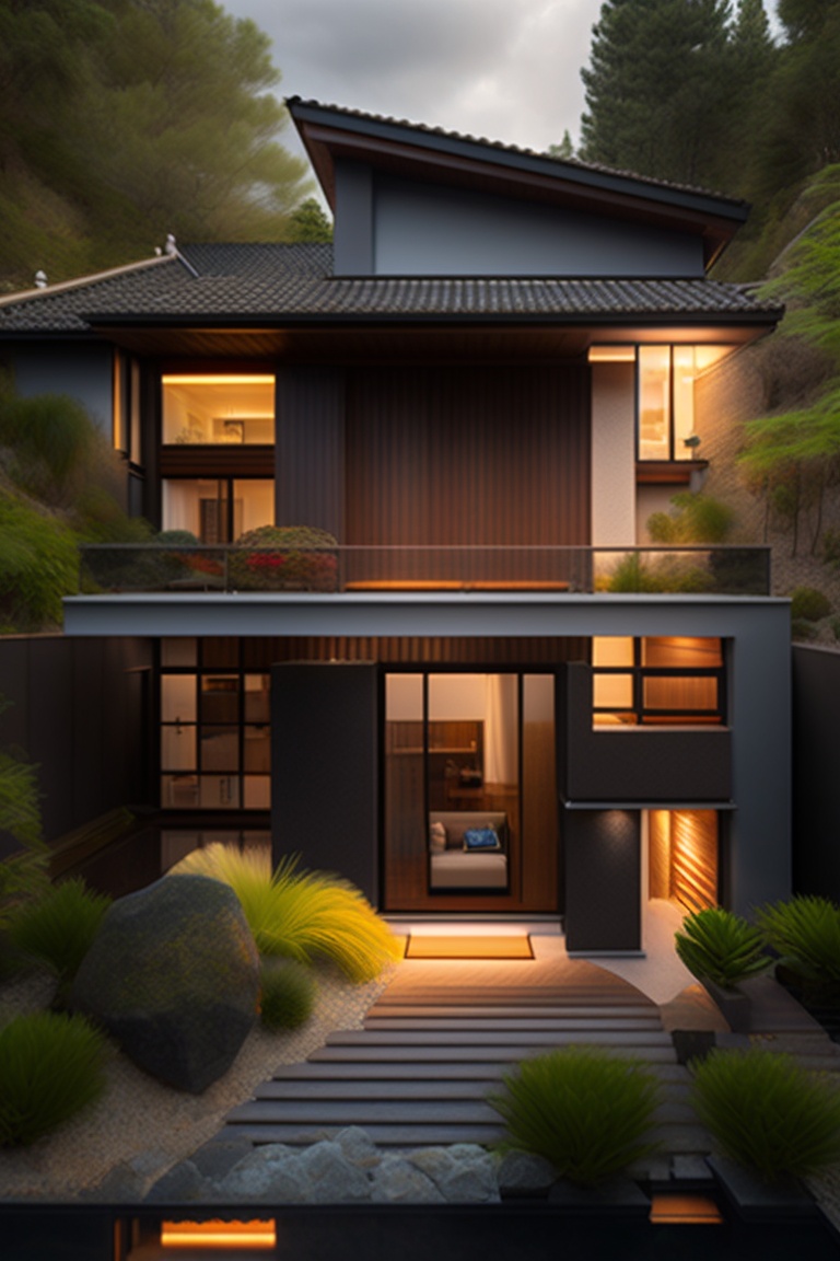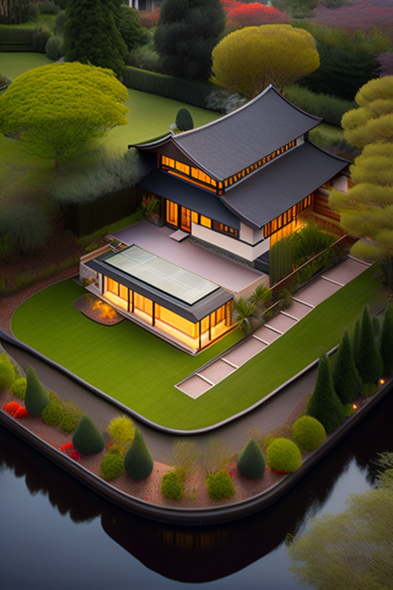 A house 300 squared meters in a garden 1000 squared meters, japanese style, having a bbq area and kid field in garden, a koi fish lake arround the house