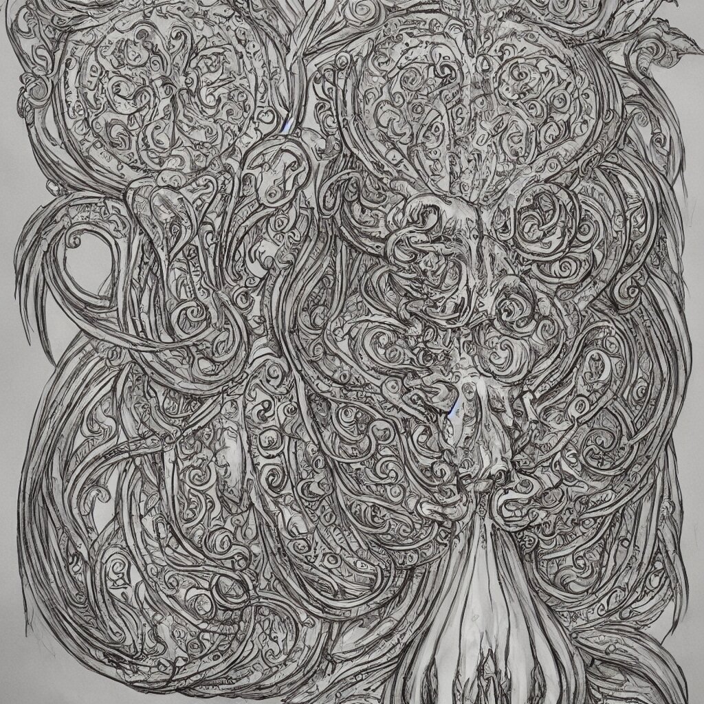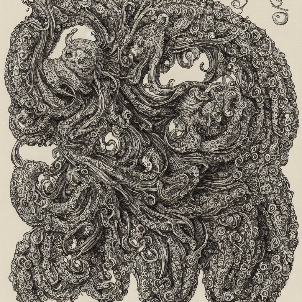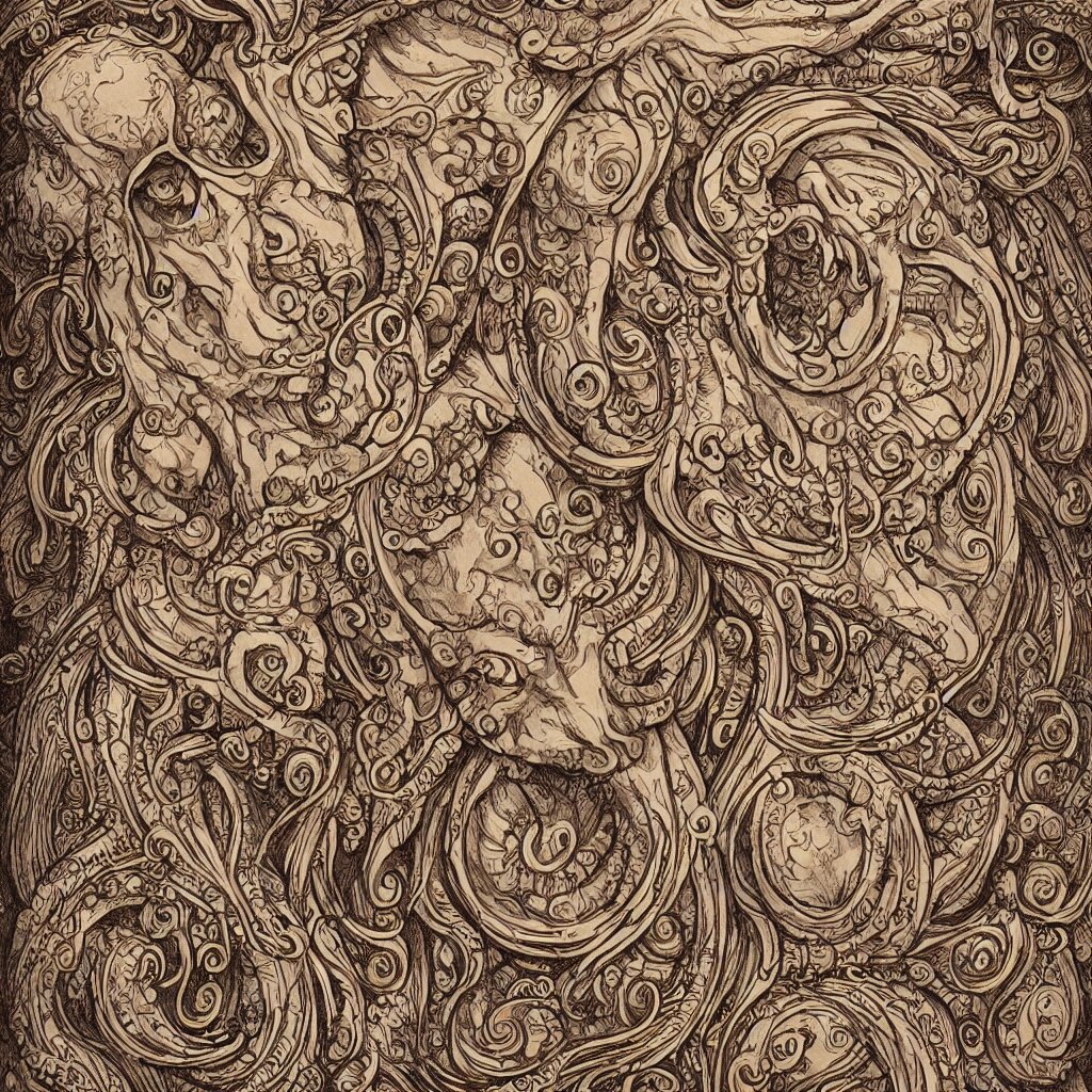 Beautiful ceremonial bilaterally symmetrical octopus mask, classical ornamental design, fibonacci flow, acroteria, encarpus, shield emblem, large medium and small elements, by russ abbott, albrecht durer, artgerm, rutkowski