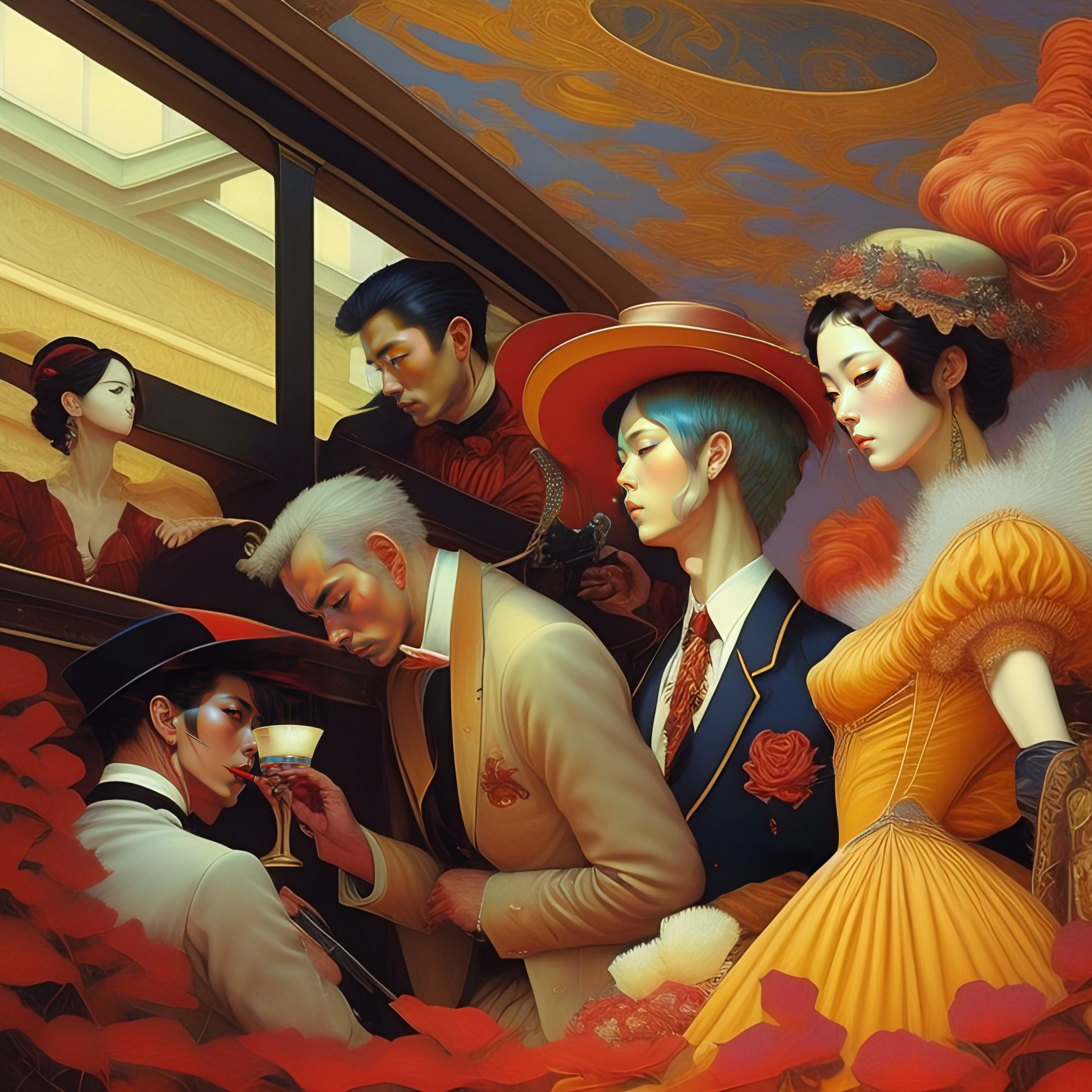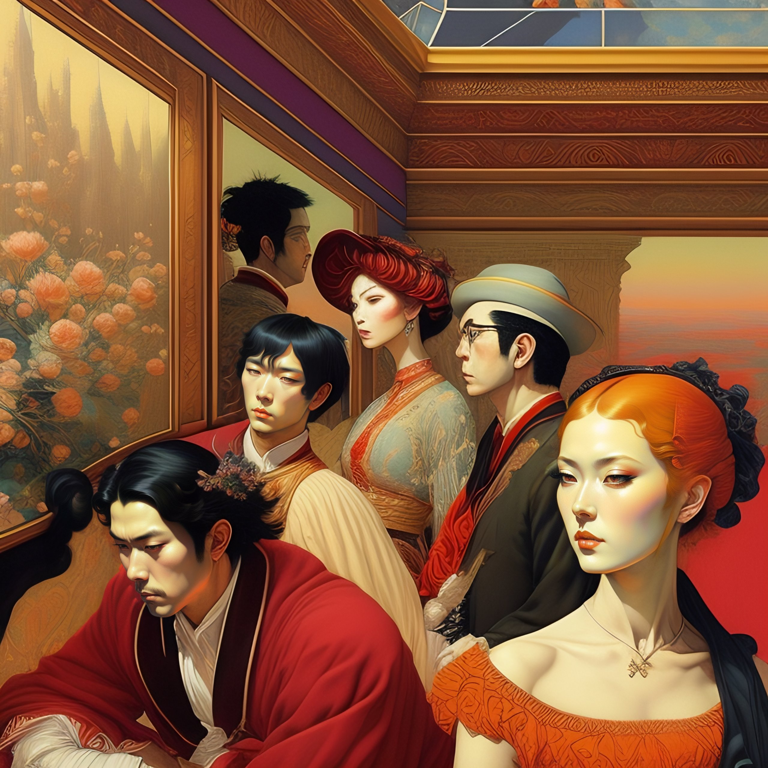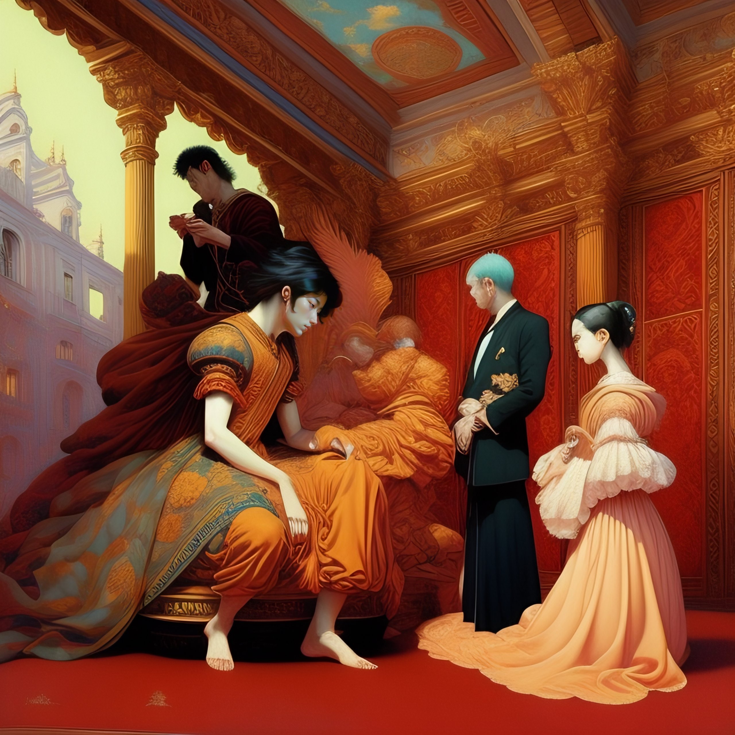 Realistic detailed image of a renaissance scene in the style of francis bacon, surreal, norman rockwell and james jean, greg hildebrandt, and mark brooks, triadic color scheme, by greg rutkowski, in the style of francis bacon and syd mead and edward hopper and norman rockwell and beksinski, open ceiling, highly detailed, painted by francis bacon, painted by james gilleard, surrealism, airbrush, ilya kuvshinov, wlop, stanley artgerm, very coherent, art by takato yamamoto and james jean