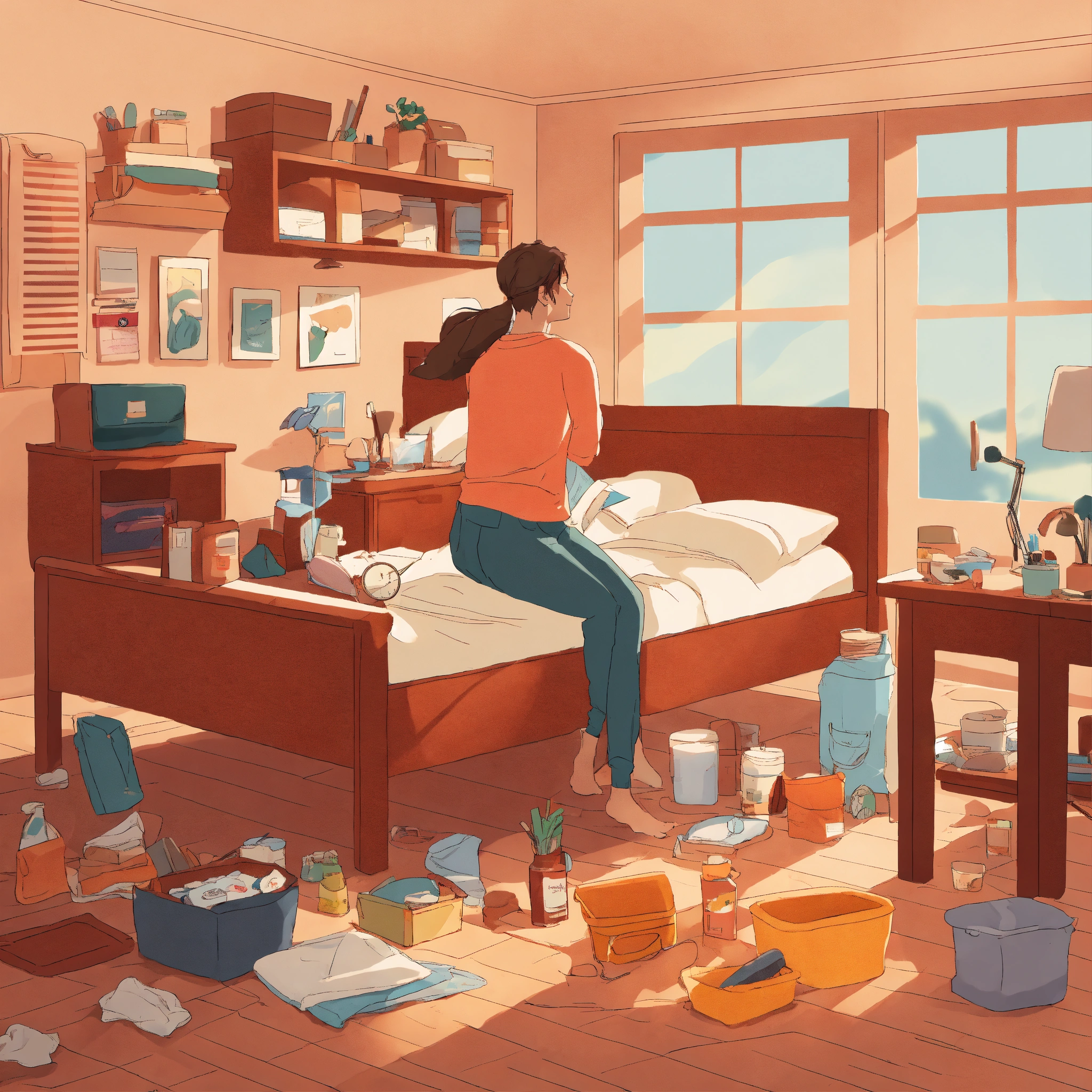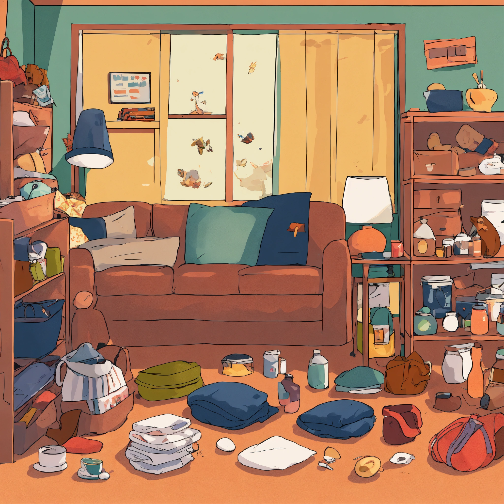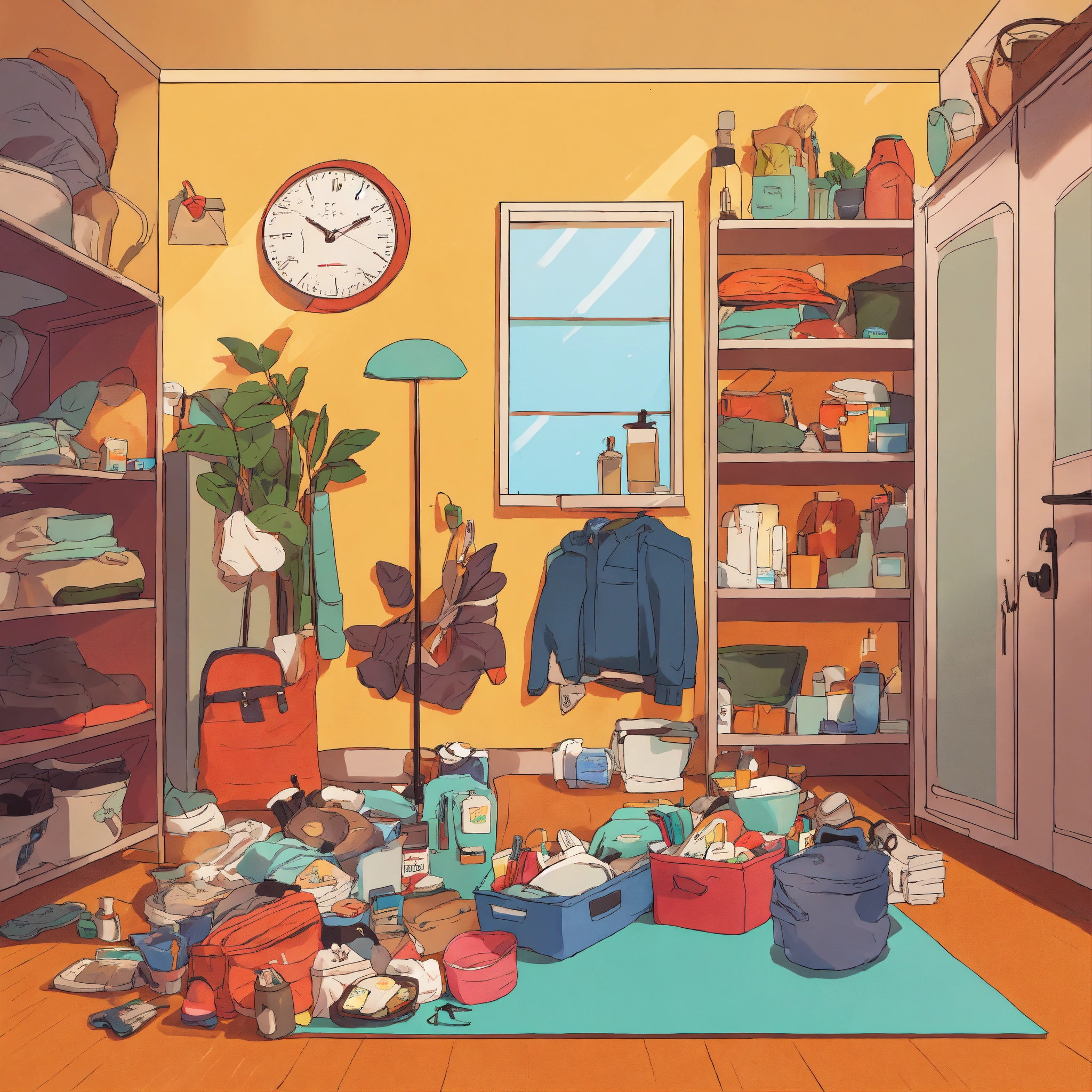 Morning routine mastery show a chaotic morning scene with disorganized items, transition to an organized morning routine with items neatly arranged, illustrate a person leaving the house with a smile, 8k resolution