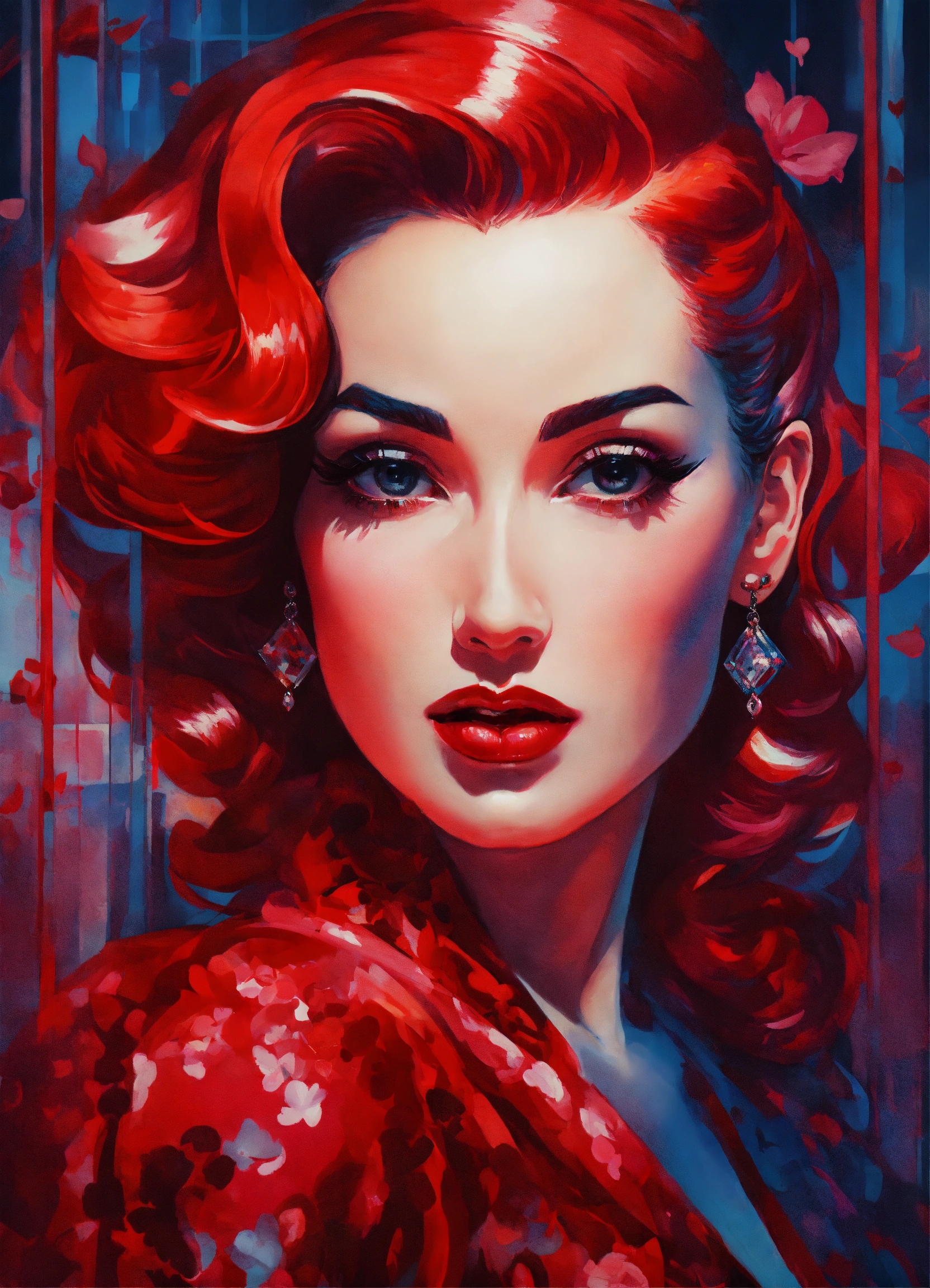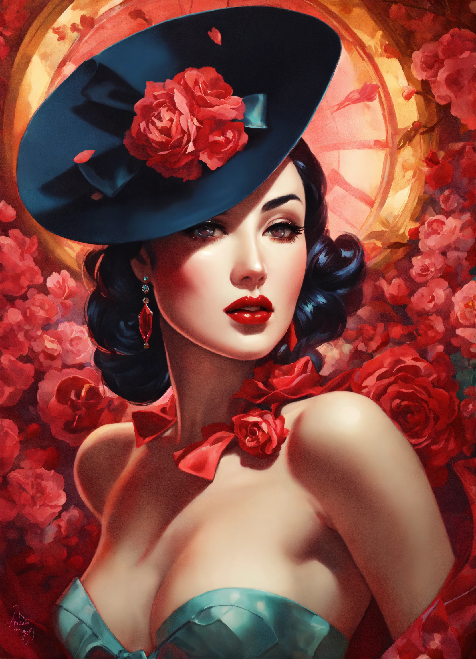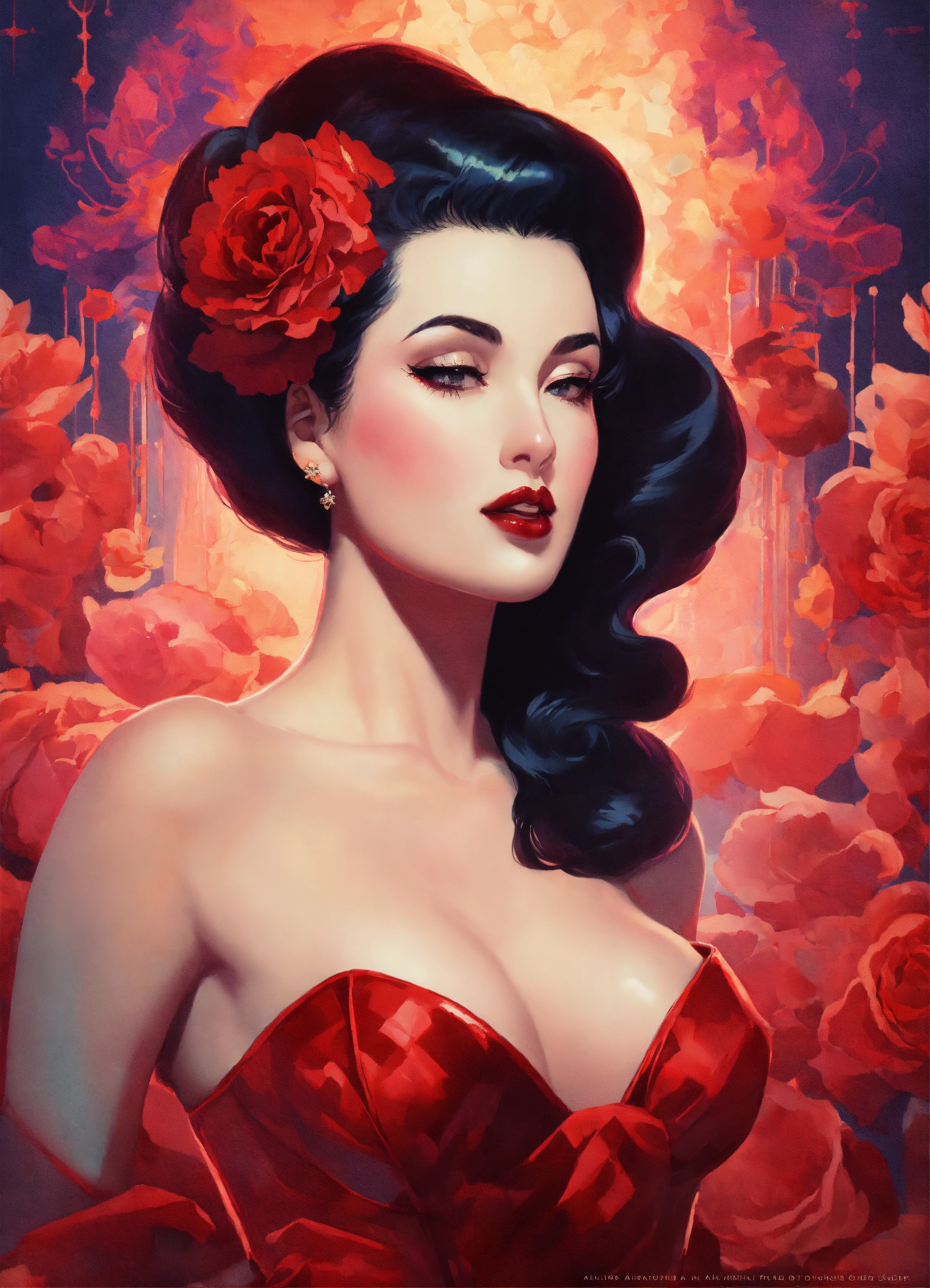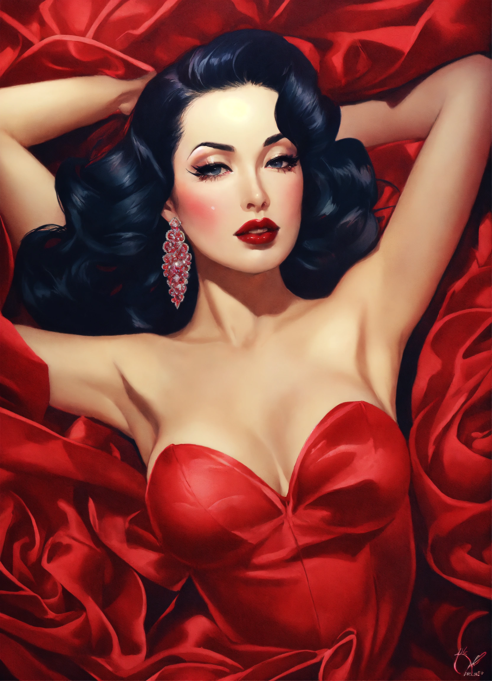 Pin up art inspired by dita von teese in the surrealism style of ross & tran & akihiko voshida - stable diffusion/confi 01/ruby