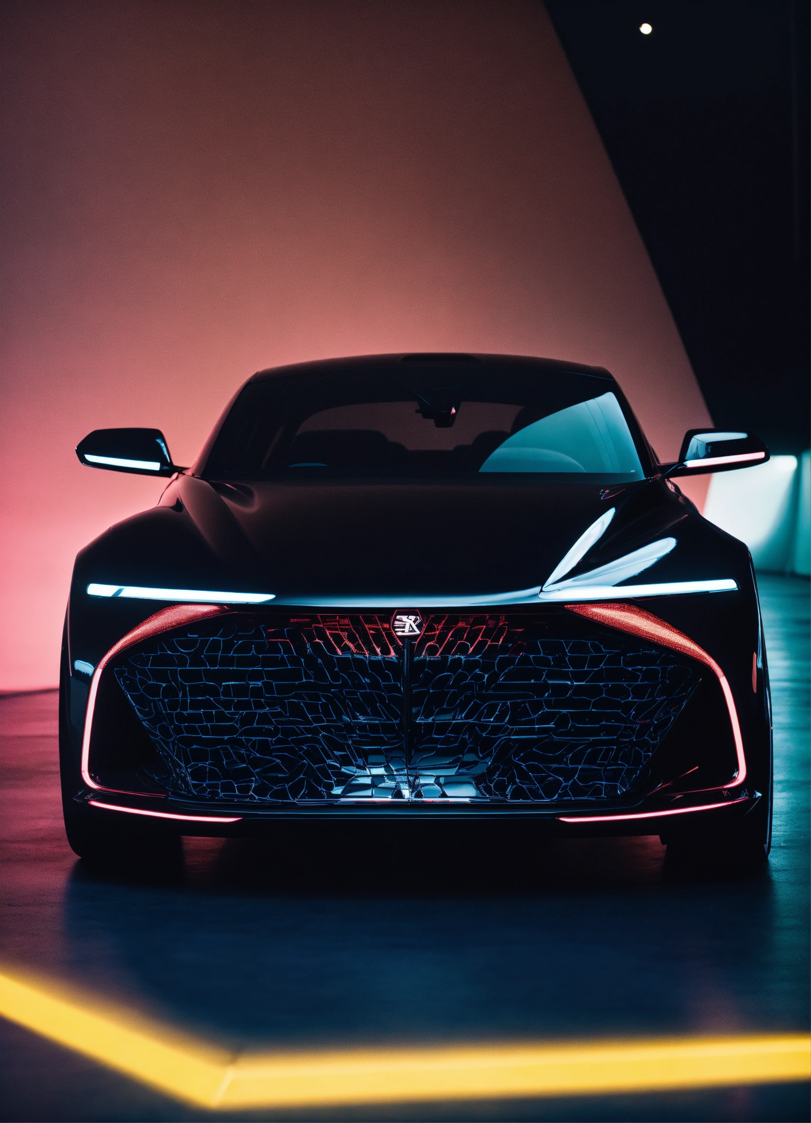 Photo of concept car from 2023, 8k resoultion, hyper realstic, black, day, 35mm film, editorial, high fashion.