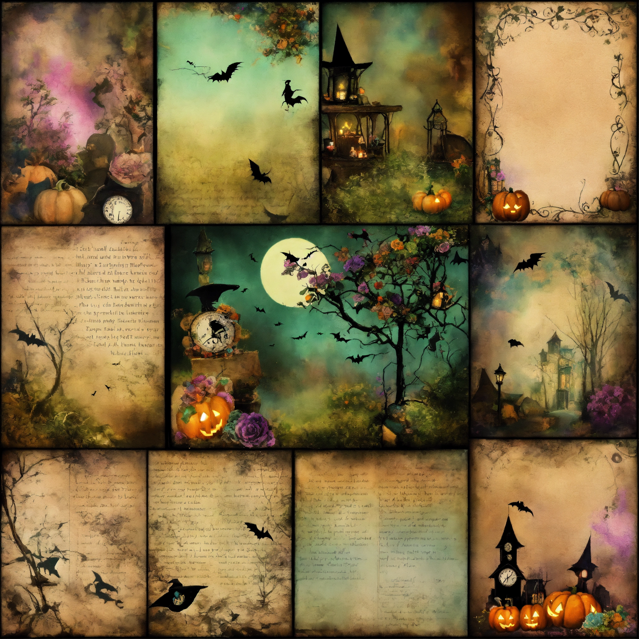 Shabby chic dreamy mist pastel junk journals mystic scarecrow junk journal pages dark witch magical witch junkjournal kit halloween digi kit goth digital paper collage sheet printable swirling magical fairytale abstract art style