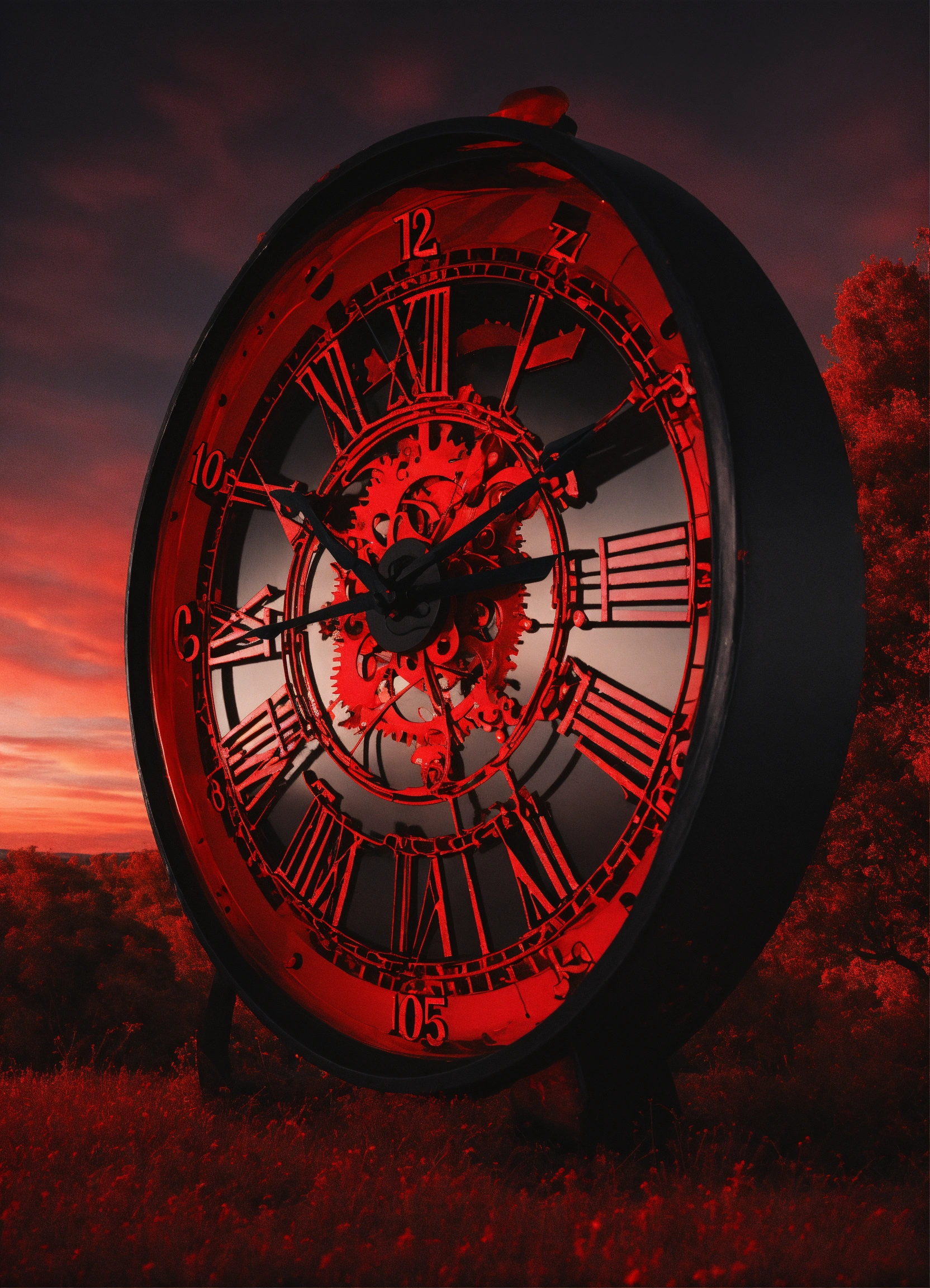 A black and red clock