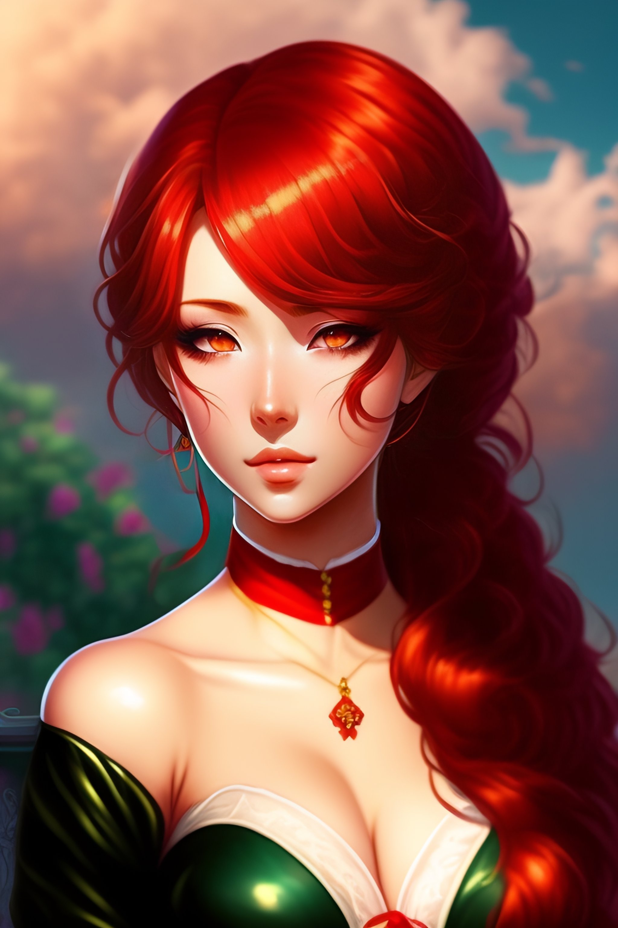 Anime drawing of sexy victorian girl with red hair