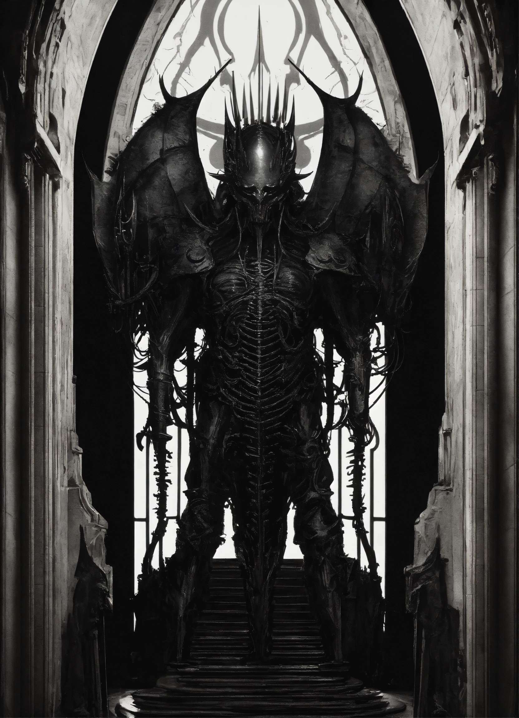 silhouete from a black and white demon