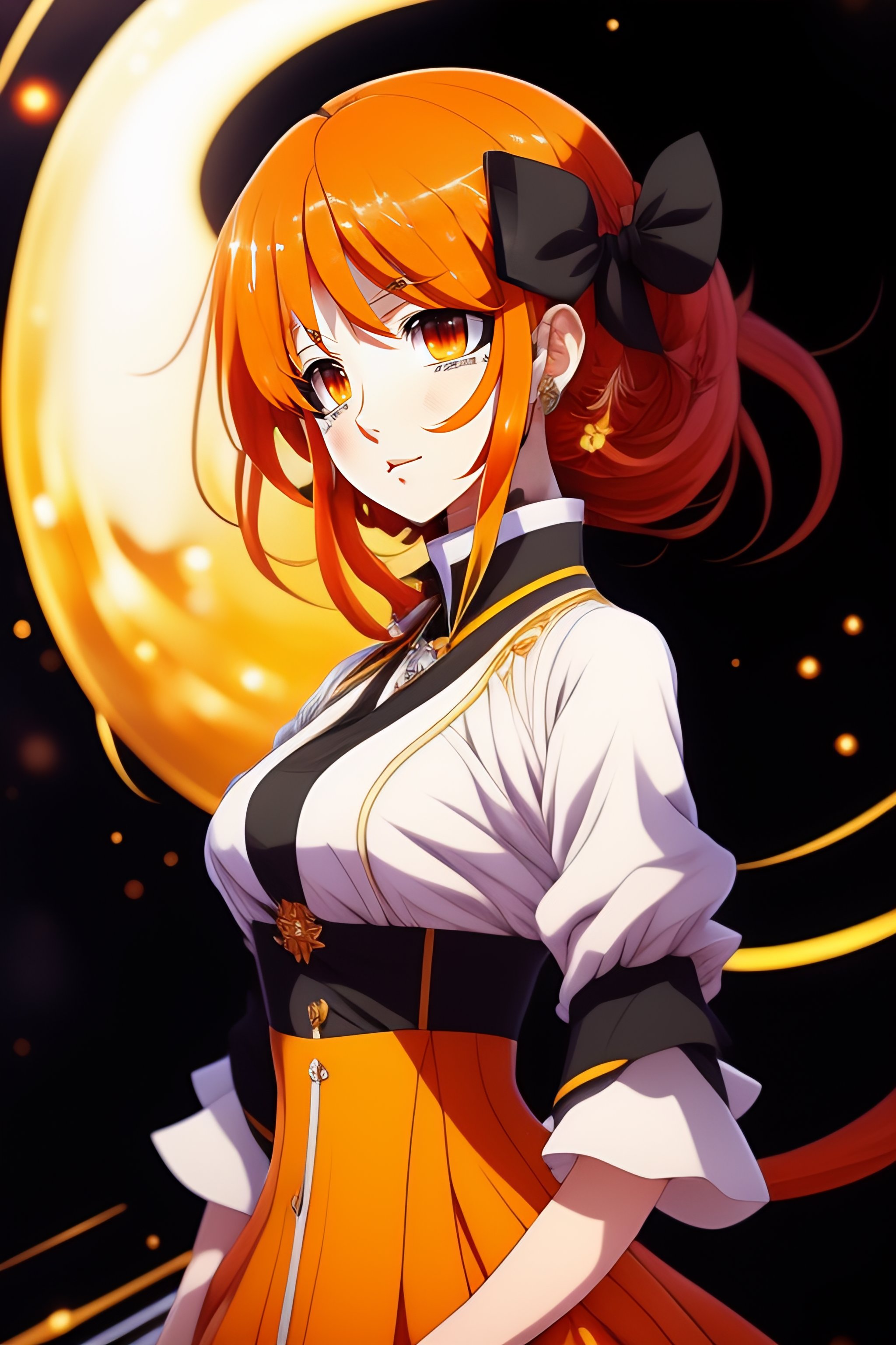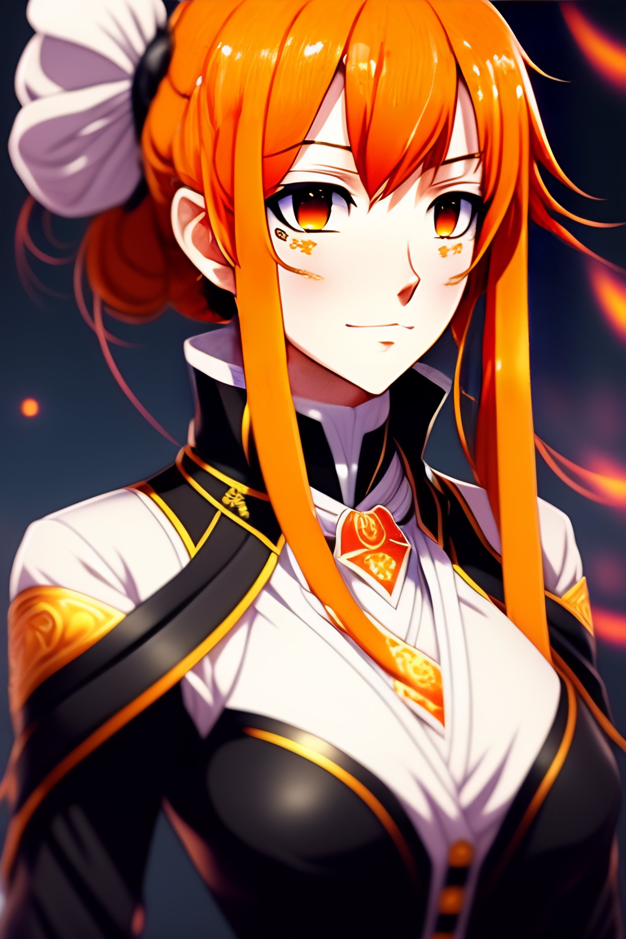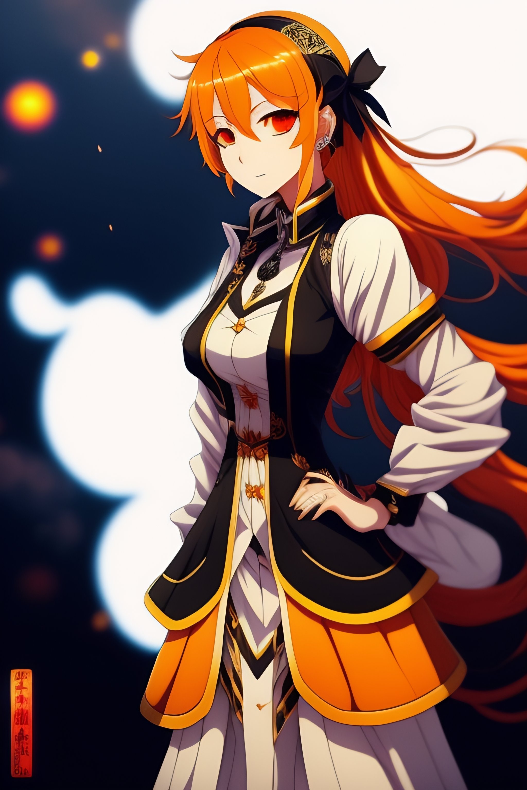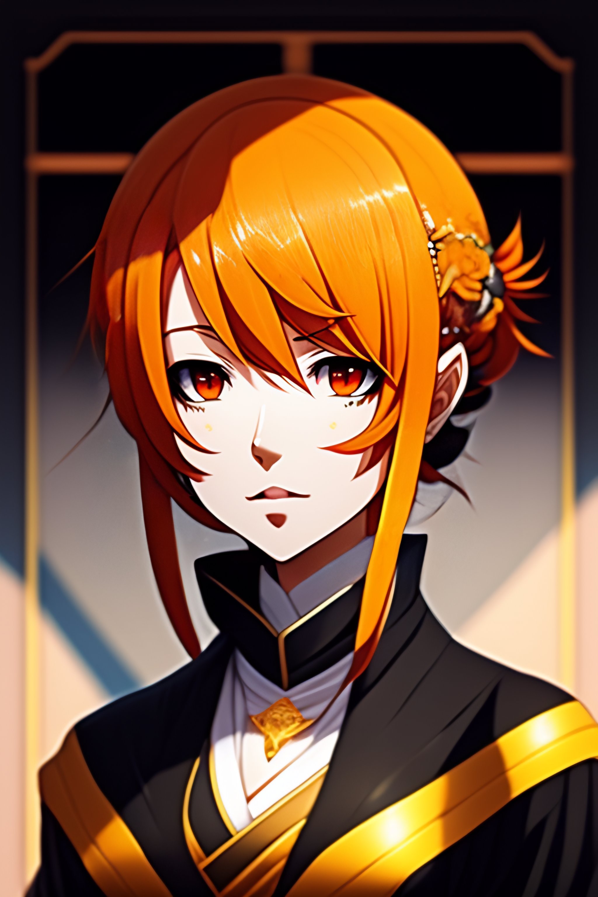 An anime character with orange hair and a black and white dress, a character portrait by miyagawa shunsui, featured on pixiv, hurufiyya, official art, anime, toonami