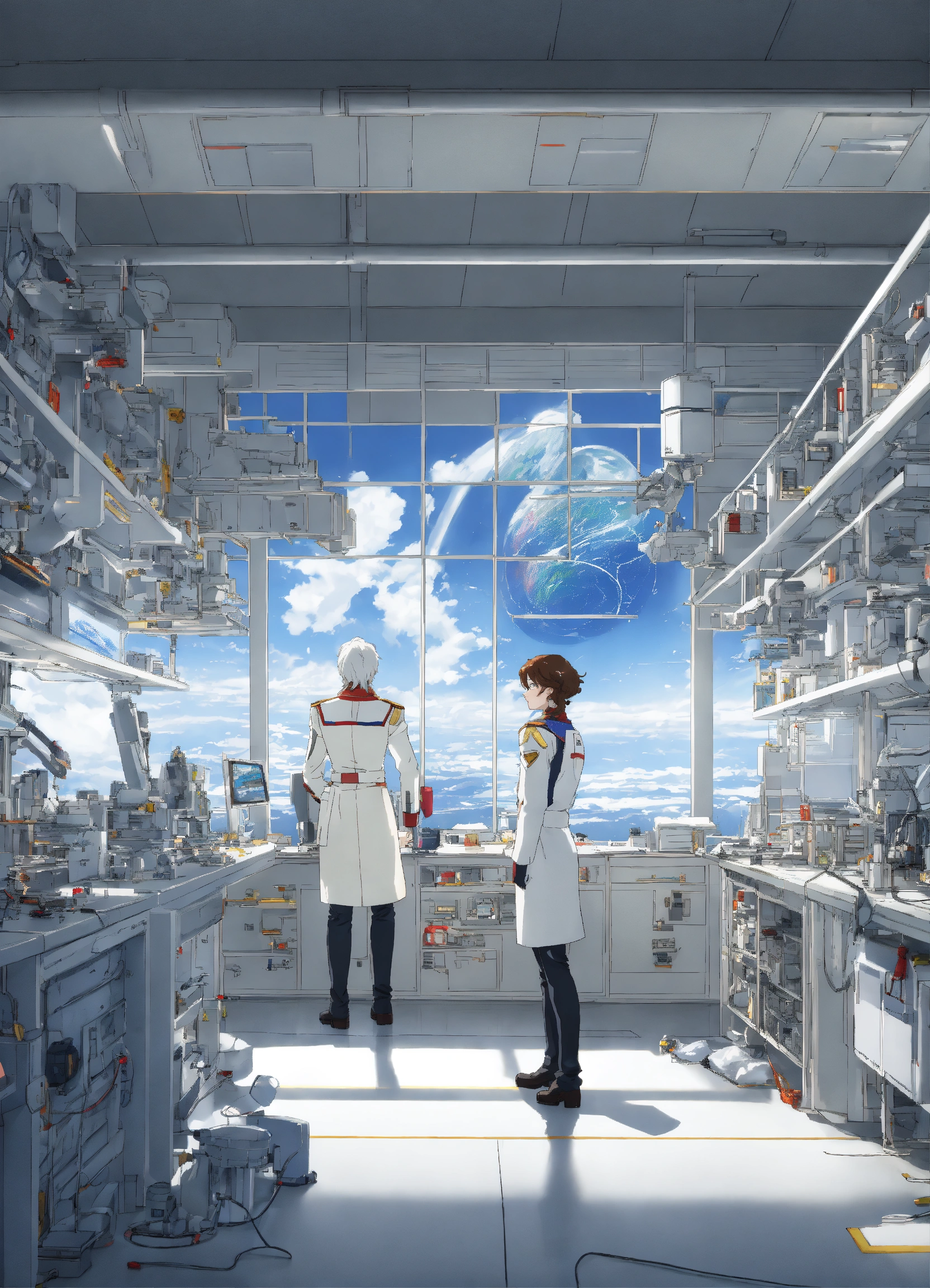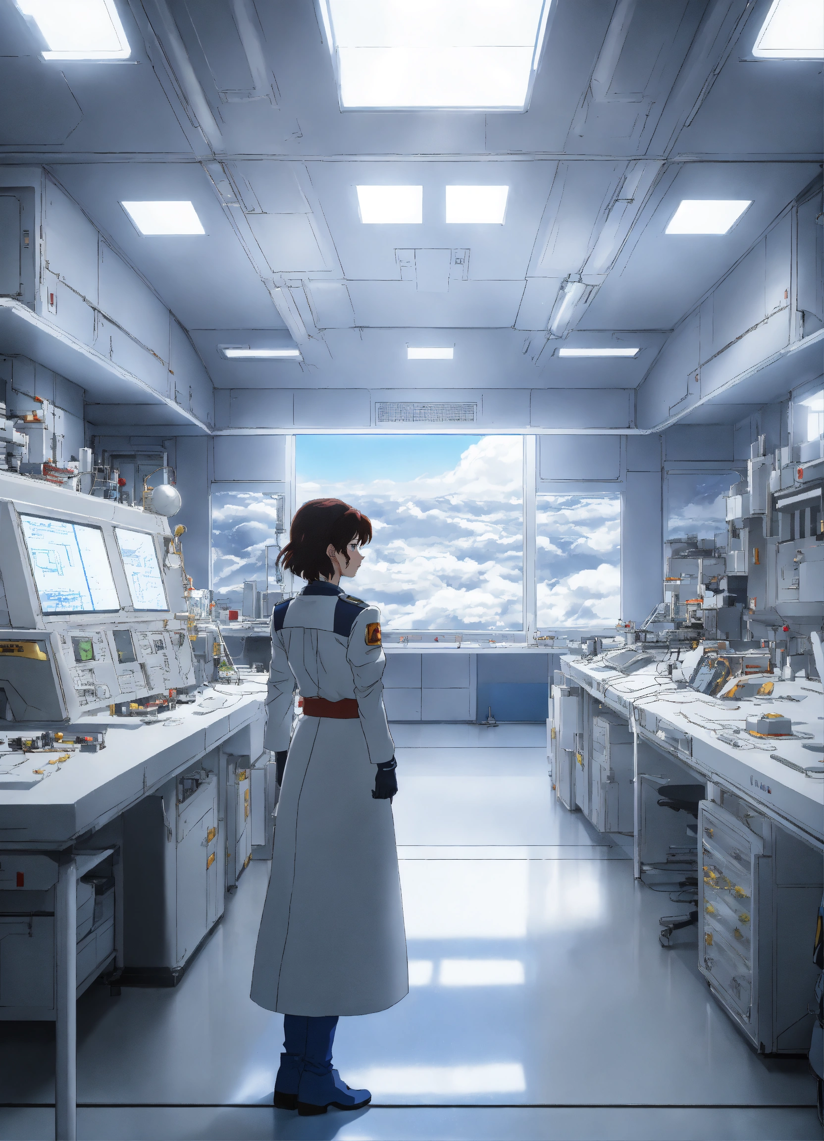 Amuro rey from gundam, inside the white base lab with lots of scientists, detailed scene, stunning details, anime, detailed environment, ray tracing, 8k