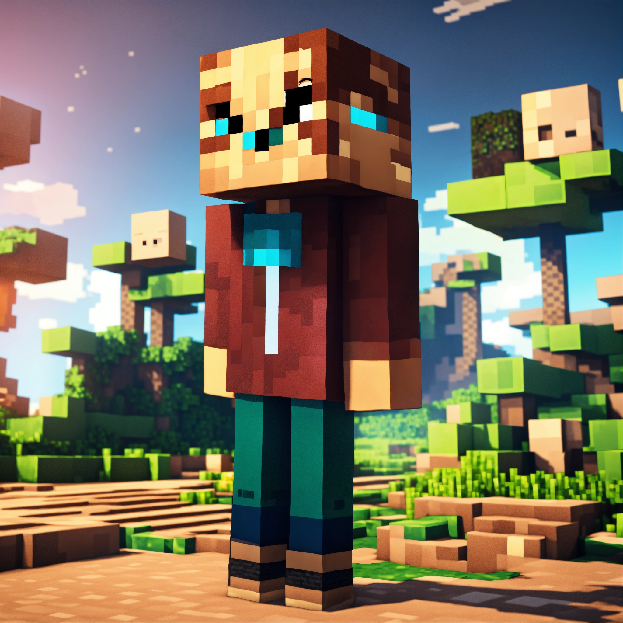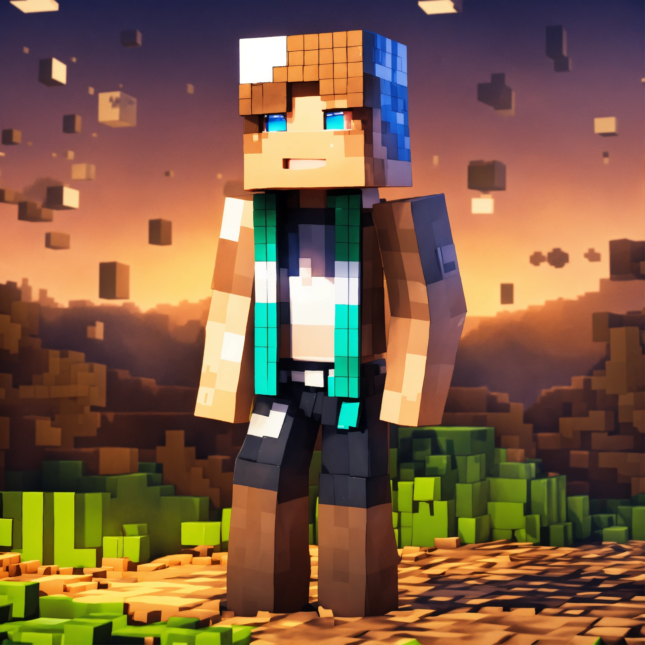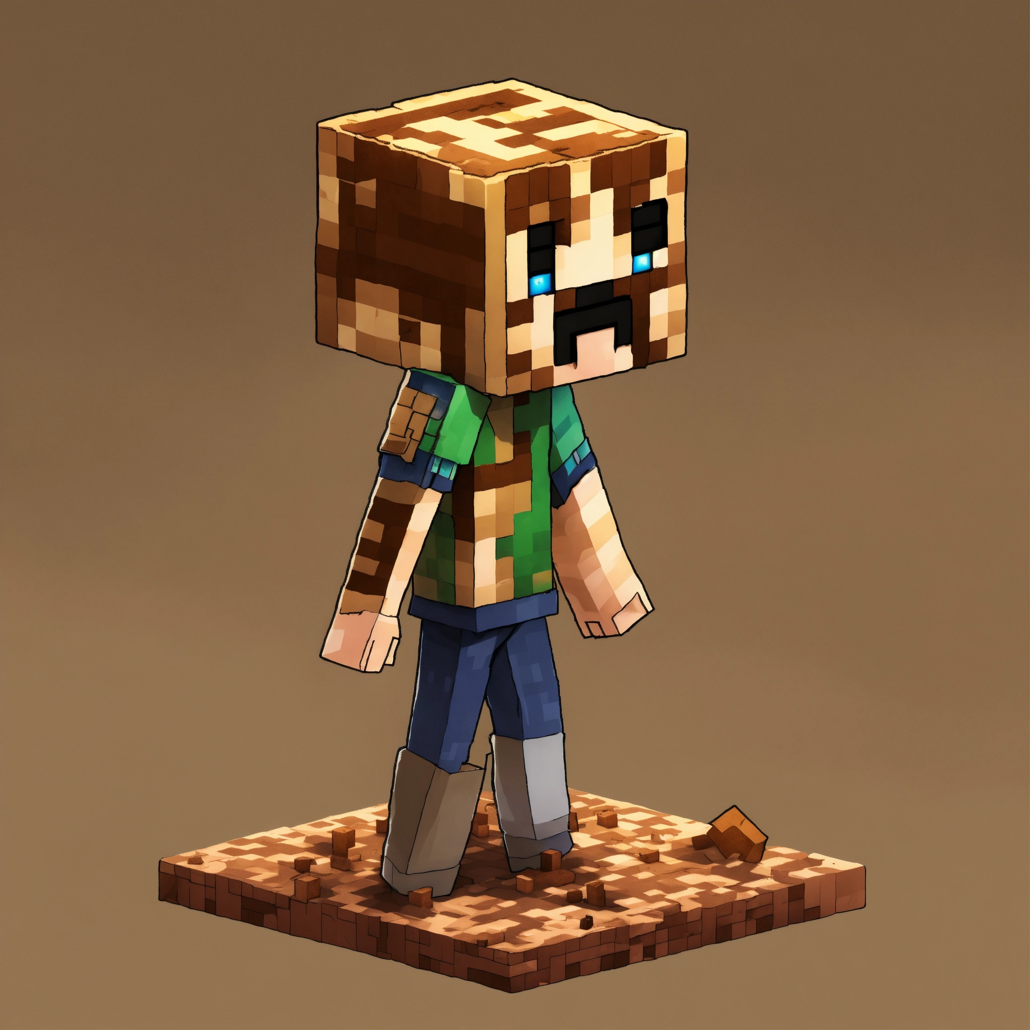 Anime character with a minecraft dirt-block instead of a head and a normal body
