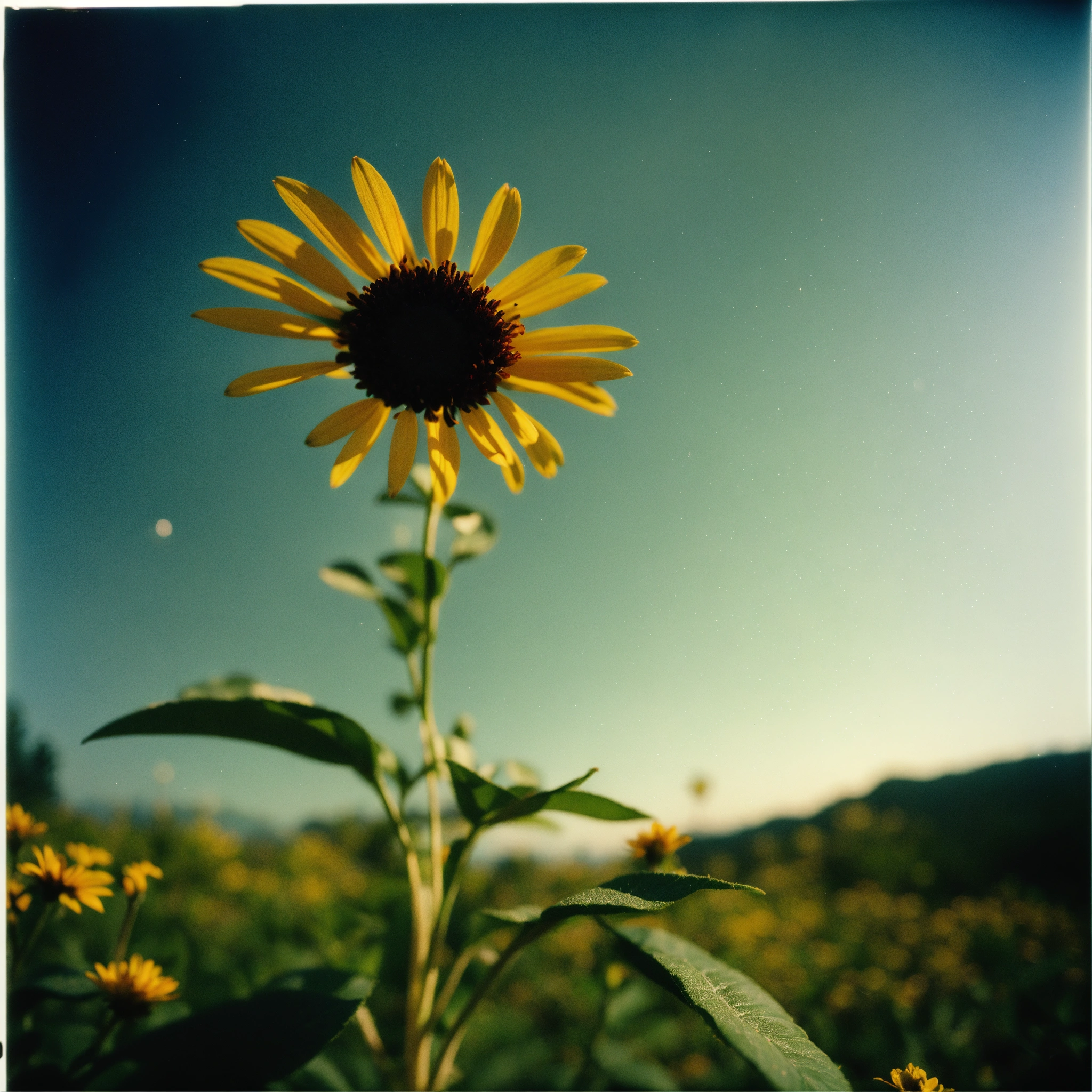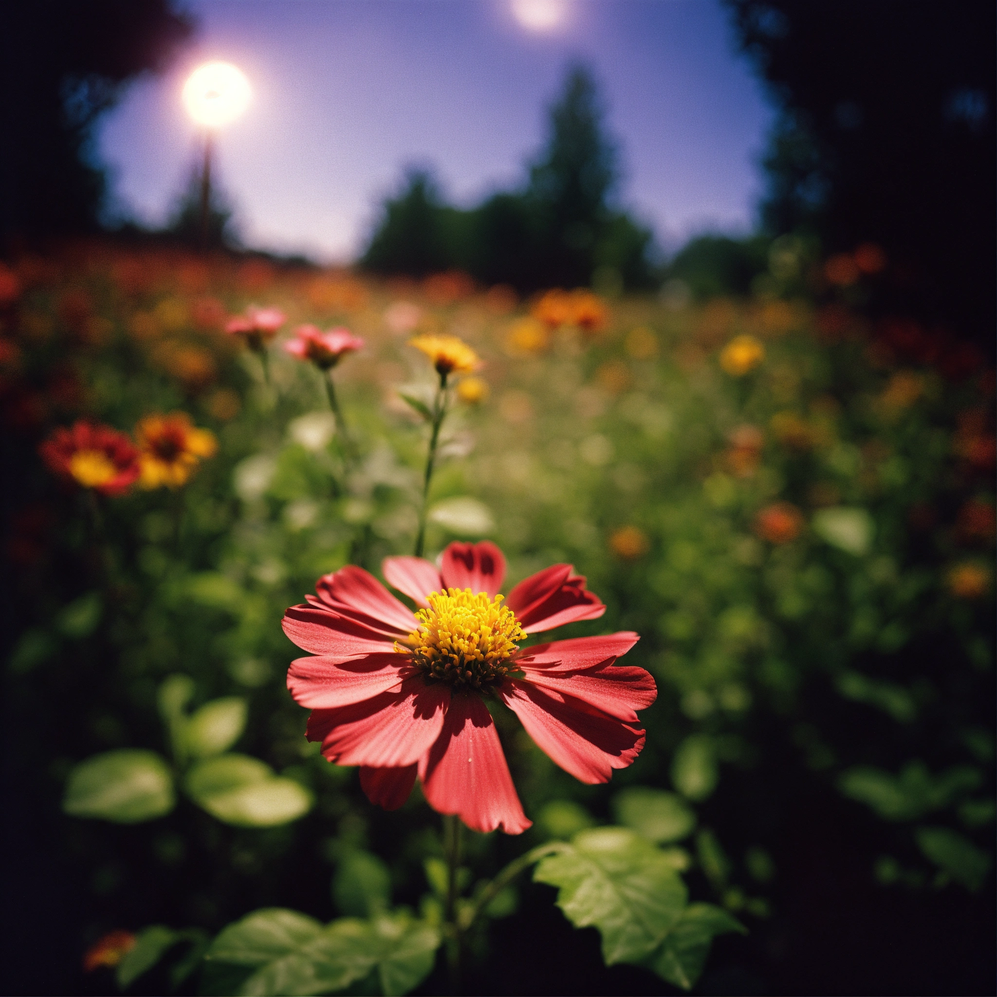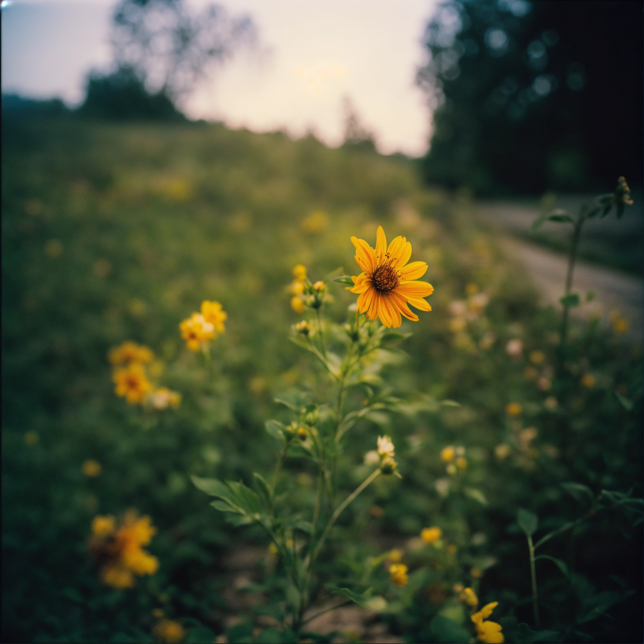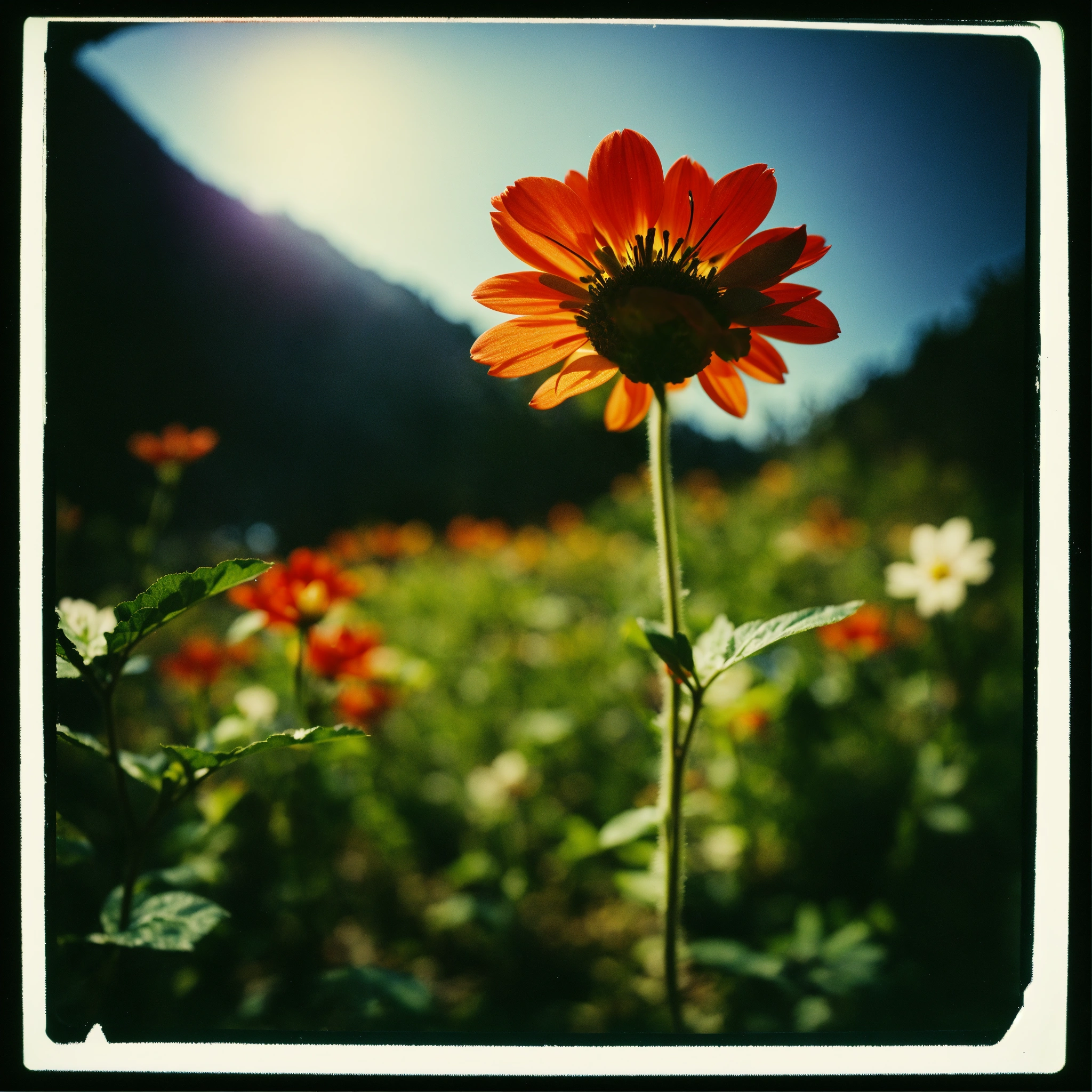 [a flower], [on the valley], [straightt angle], holga photography, analog, camera, lo-fi, detailed composition, [lighting]--ar 169 --v 5.2 the process of growing